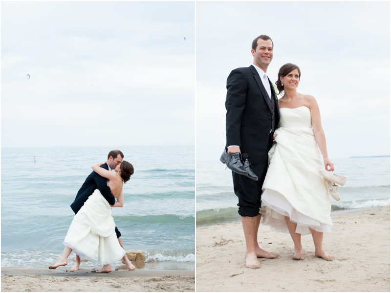 Erika & Dave are part of a large and amazing friend group that I keep getting lucky enough to photograph. The connection is often St. Jude’s in Wauwatosa, but sometimes it is soccer or medical school or small Catholic high schools in Wisconsin, or perhaps just being awesome. Erika is full of laughter and Dave’s wry humor gets her every time and they are indeed awesome. I knew that from the first time I met them and cemented the impression when I met them in their adopted hometown of Seattle for a drink a few weeks after the wedding. I learned a few other things about them on their wedding day: Erika can get Dave to do most anything – including dip his toes in freezing cold Lake Michigan. On their wedding day she was already in up to her knees before he gave in and took off his dress shoes and socks, rolled up the tux pant legs and joined her, but join her he did. In fact, that is kind of their story. One leads and the other joins, taking turns doing the leading, the other joyfully joining. Dave’s best man’s toast detailed his past in the military and his love story with Erika, writing home to her and visiting her when on leave – even before they were technically dating. Metaphorically speaking, one could say that Dave jumped in up to his knees before Erika joined him and realized that this guy is the one, but join him she did.