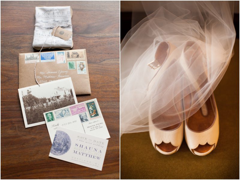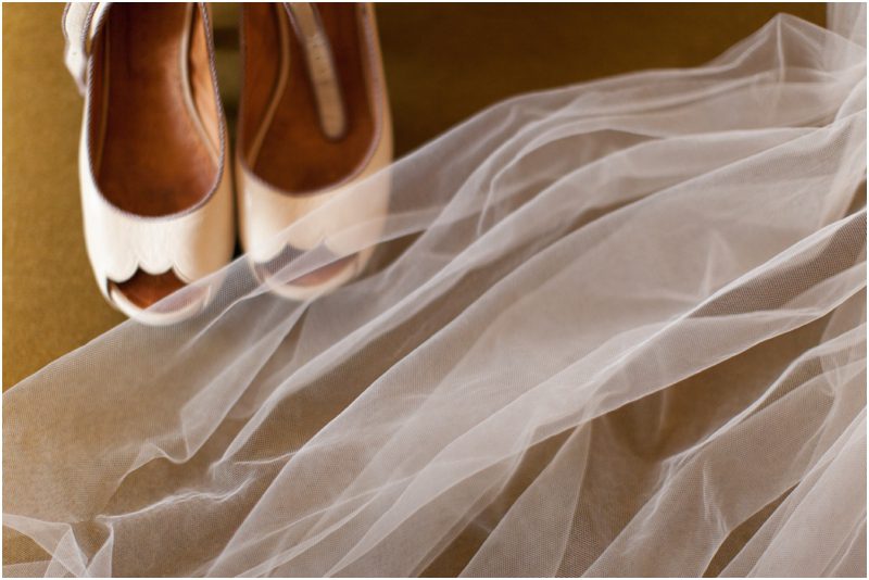 Bride’s accessories: shoes ~ Chie Mihara from BHLDN; veil ~ handmade by the bride; brooch ~ BHLDN; necklace ~ heirloom of the groom’s family; earrings~ vintage