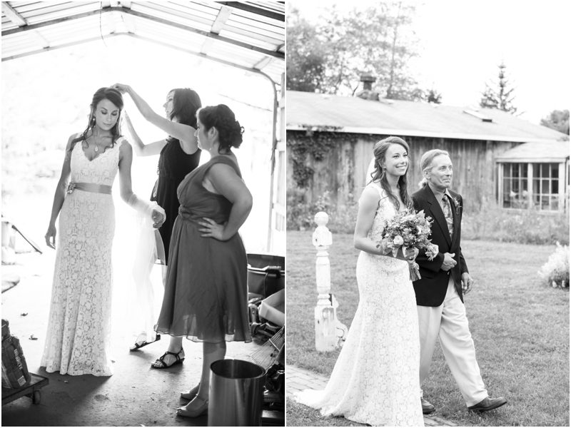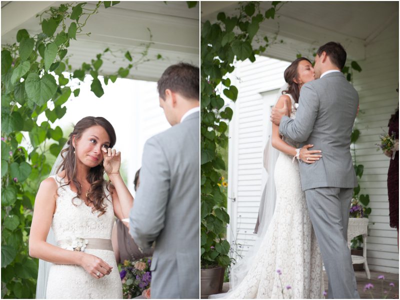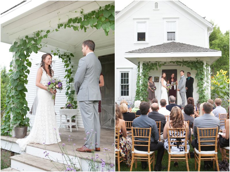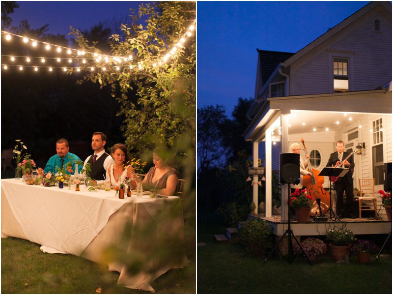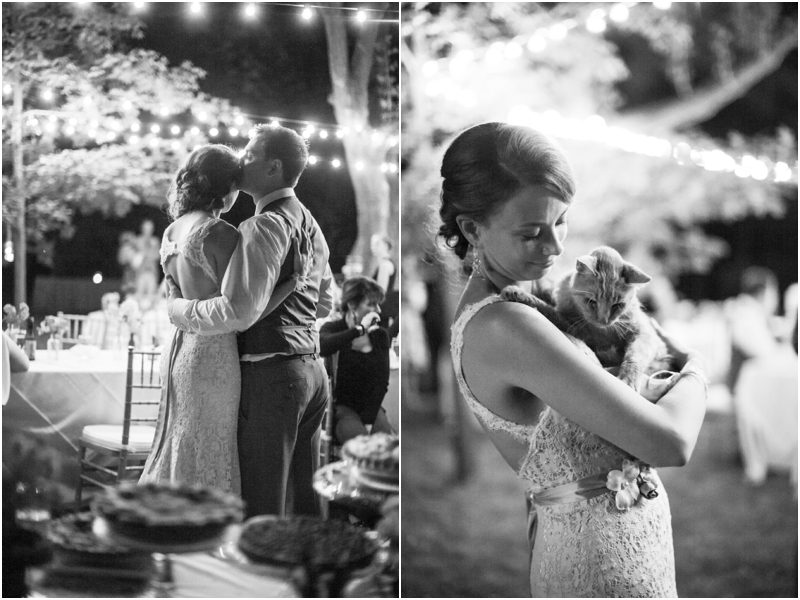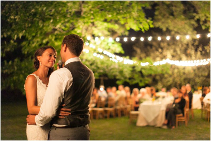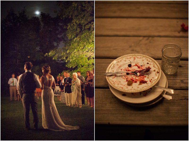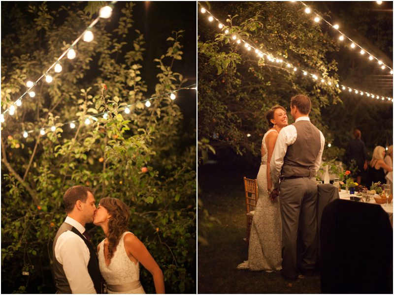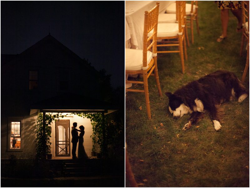 Shauna & Matt were married at her father’s farm, on the back porch in the presence of 3 or 4 dozen of their favorite people, plus Daisy and Jimmy, the farm dog and cat. Everything they did to prepare for the day was done with care and thought and in a spirit of intimacy I am still in awe of witnessing. They chose the wedding day based on the full moon schedule and were delighted to host their wedding on not just a full moon, but a Blue Moon – a somewhat rarer type of full moon that only happens every 2 or 3 years. They wanted their day not just to feel authentic and handmade but for it to be so, so Shauna hand stamped their invites on vintage handkerchiefs and they mailed them beautifully to a very small group of people whom they couldn’t imagine not having around them when they said I Do. Between the squeaky back porch screen door and the vegetable garden Shauna and Matt shared vows they wrote themselves, exchanged rings they forged themselves – literally – and guests were invited to meander the property and enjoy a toast. Hand cut flowers from the gardens dotted long tables set under apples trees strung with twinkle lights and food cooked by a local chef and catering company was cooked in the farm kitchen. First dances were accompanied by Matt singing to Shauna and then by a two piece jazz band, perched close to the house for all to see and hear. The moon rose high and full and yes, blue, and Shauna and Matt melted into each other over and over again. Married, bonded – perhaps it would be right to say forged – into one.