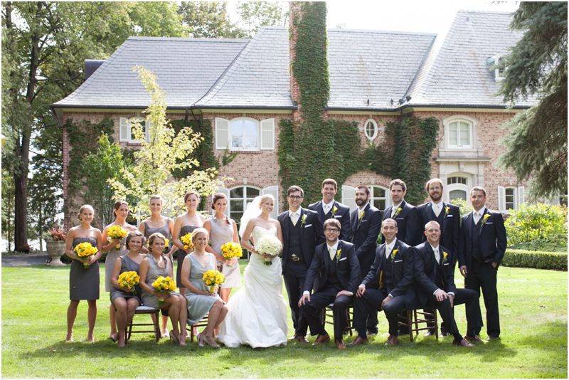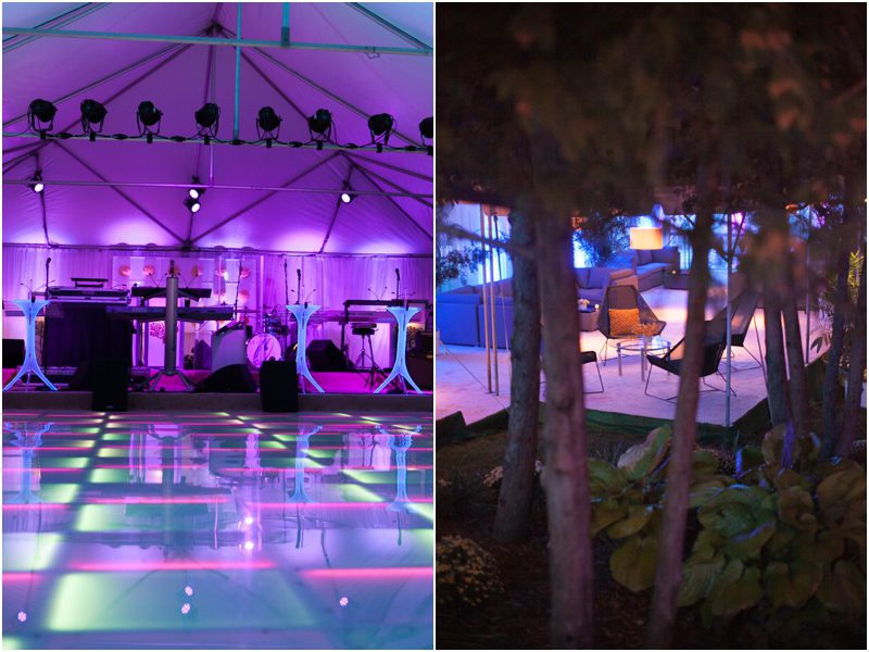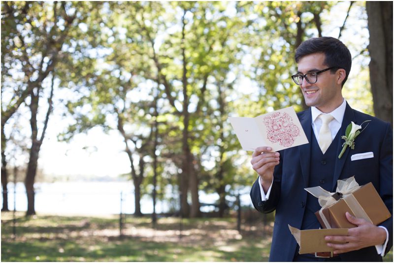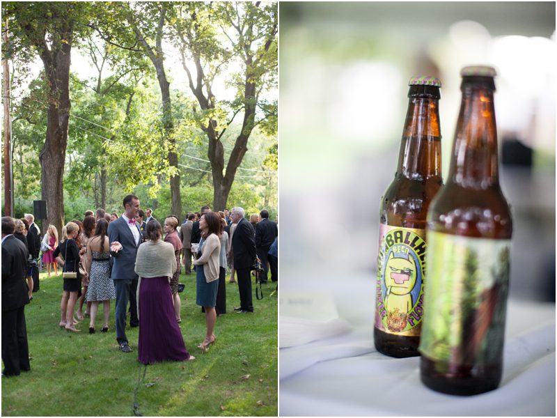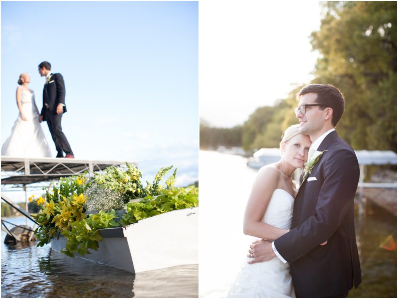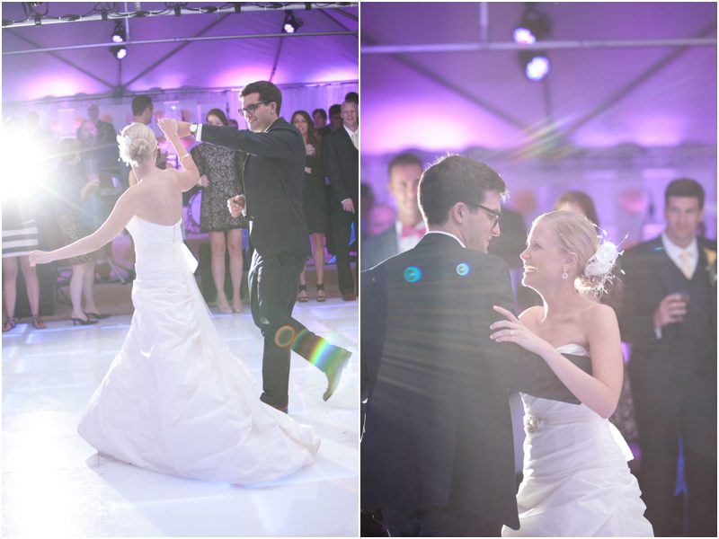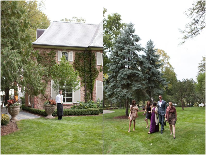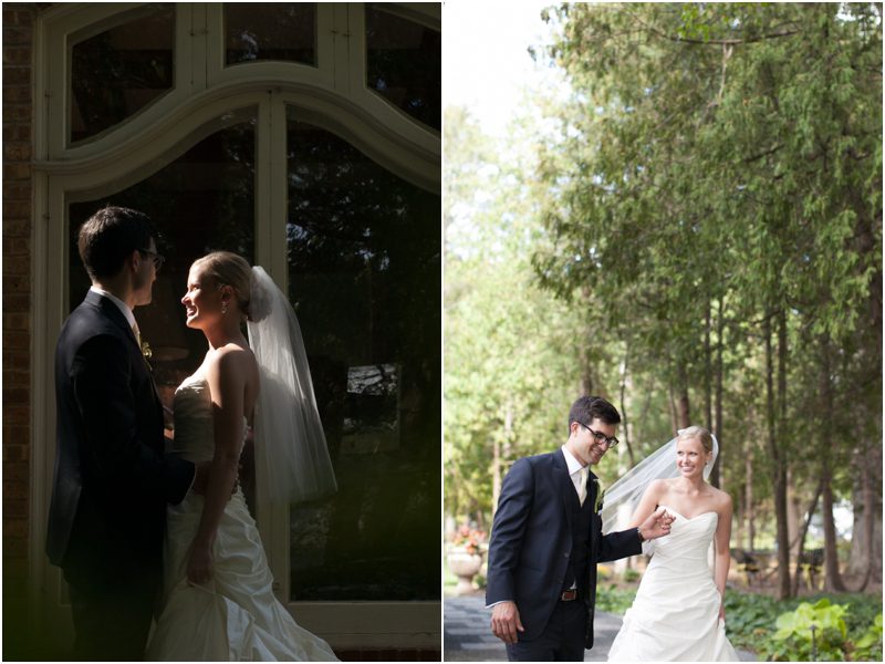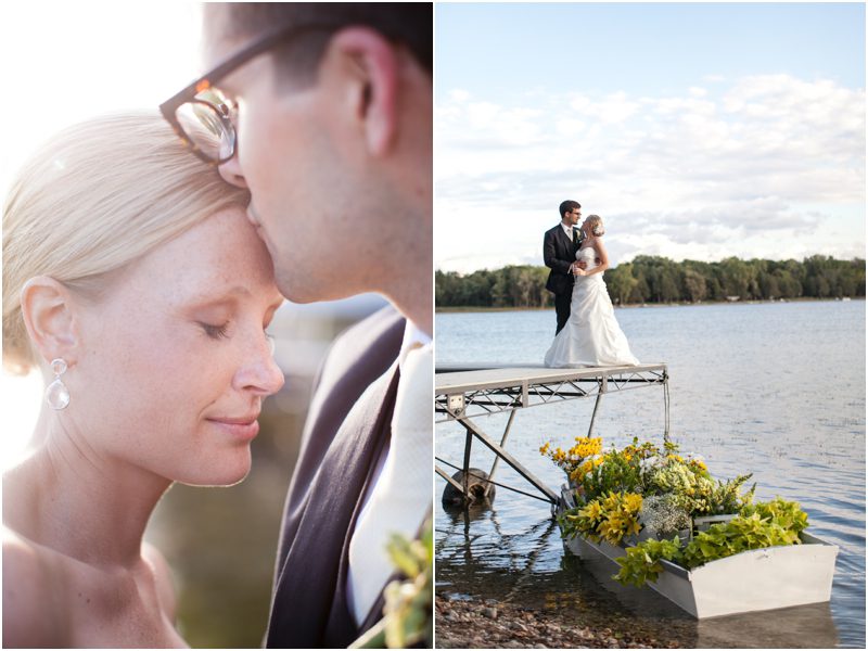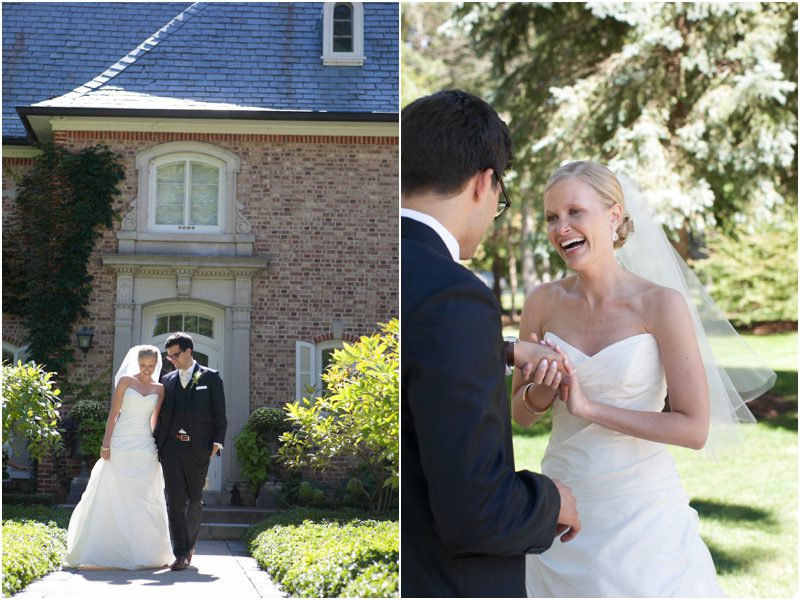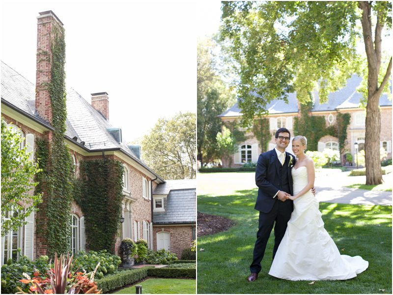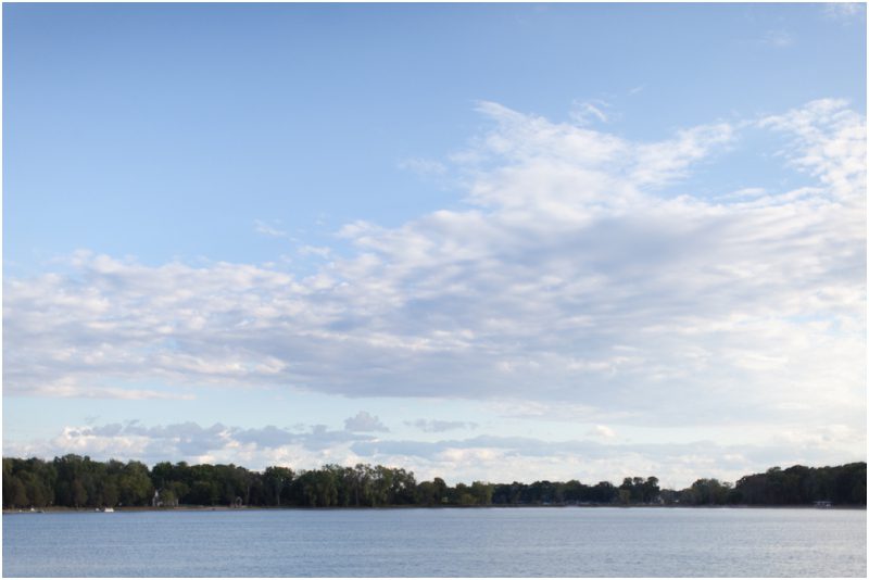 Megan and Dan’s wedding day, spent mostly lakeside at Meg’s parents home in Oconomowoc, was a joy for all involved – from the wedding party to the band, the photographers to the bride and groom. Everyone, and I mean Everyone, had a ball. I want to write about how sweet and happy Meg & Dan were, about how they joked with friends and shared sentimental moments with their parents, about how they were at turns grateful, impressed, smitten and totally happy. But first I have to mention the amazing team of people who made their wedding day look and feel and move the way it did. I’ve been a part of some big, elegant, lovely weddings, but nothing as detailed, hard to pull off and perfectly done as this one. I was lucky enough to have my friend Molly from M Three along for detail shots and David and his team at Dynamic Events managed a schedule that started on Tuesday and involved crews of people setting up tents, lighting, stages, furniture, fabrics and florals for days. It all sounds so fussy and difficult but on Saturday the 8th of September it was simply magical – it felt easy and breezy and clean and modern, loungy and comfortable and elegant and a little bit like the woods and lawns around the slate roofed residence were always filled with people and music and laughter. It felt like home. Meg wore accents of gold – a thick bangle that was her great grandmother’s and her Jimmy Choos come to mind – and Dan a custom navy suit, and they stuck by one another all day and all night. They shared a first look on the front steps of the house and the ceremony at St. John’s Northwestern was flawless. Cocktails flowed on the front lawn and big tents, one each for dining, lounging and dancing, rose tall on the back lawn overlooking the lake. It rained at some point during dinner, but the piano player and the superb soloist just harmonized a little louder and the guests danced their hearts out on the color changing dance floor. Wrapped in gifted pashminas to stave off the light chill in the night air, guests noshed on homemade cookies and cupcakes made respectively by Meg’s aunt and her mom’s book club. The feeling was joyous and a little raucous – everyone a bit giddy with so much love and fun and beauty all around.