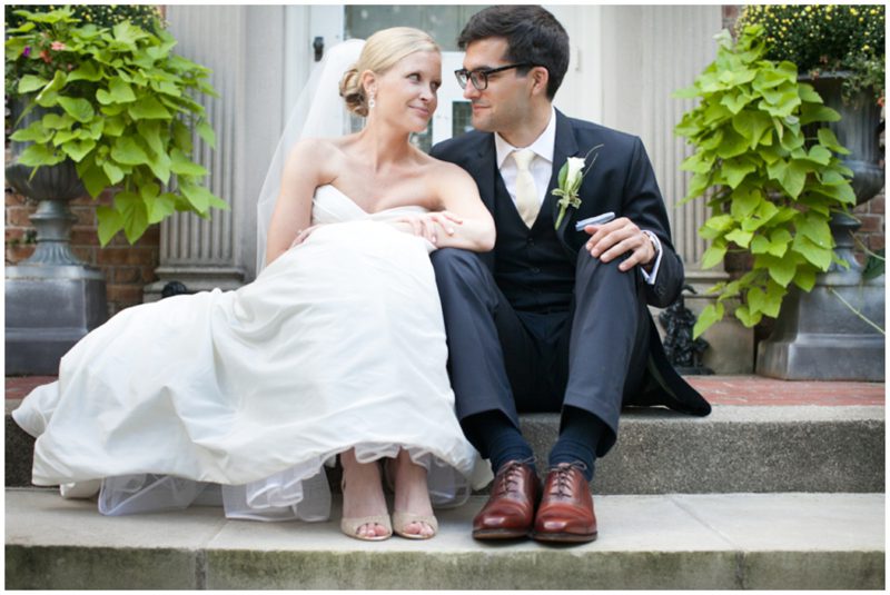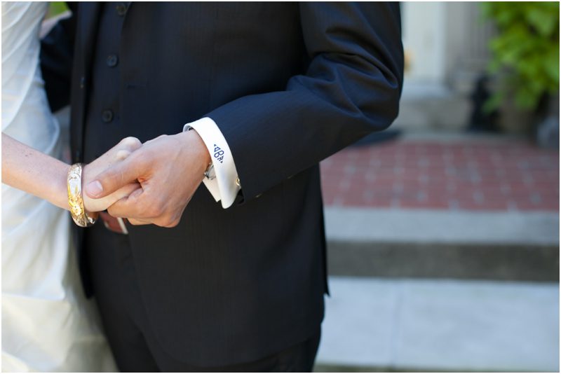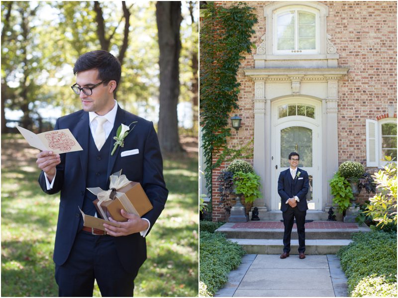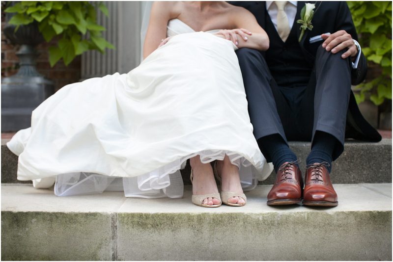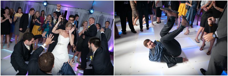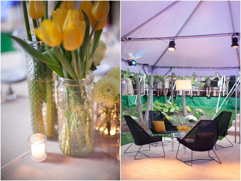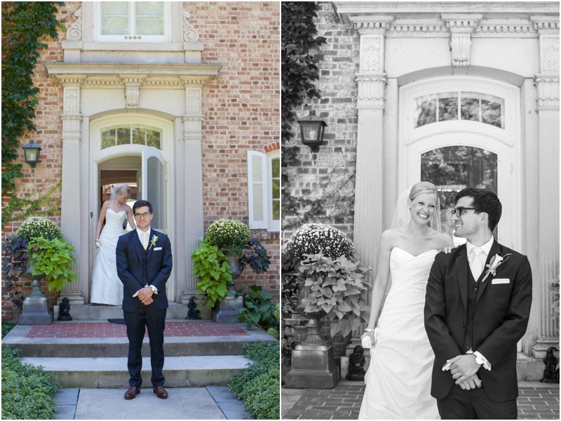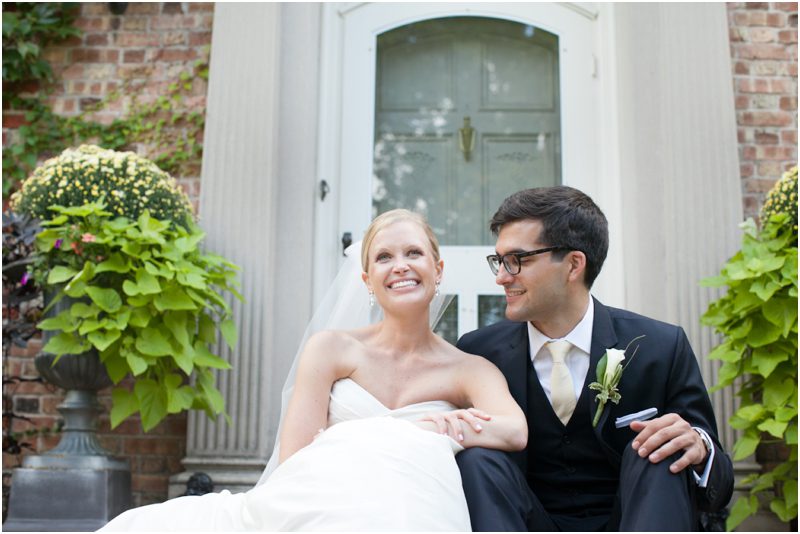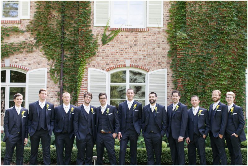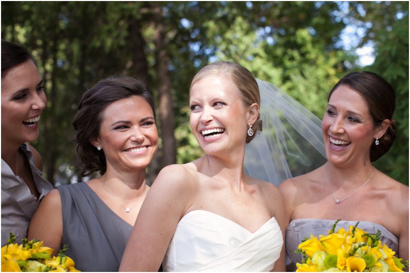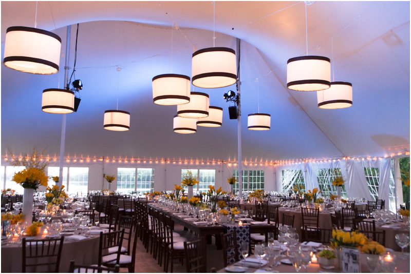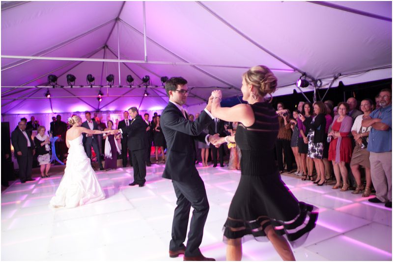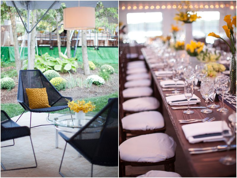 Megan and Dan’s wedding day, spent mostly lakeside at Meg’s parents home in Oconomowoc, was a joy for all involved – from the wedding party to the band, the photographers to the bride and groom. Everyone, and I mean Everyone, had a ball. I want to write about how sweet and happy Meg & Dan were, about how they joked with friends and shared sentimental moments with their parents, about how they were at turns grateful, impressed, smitten and totally happy. But first I have to mention the amazing team of people who made their wedding day look and feel and move the way it did. I’ve been a part of some big, elegant, lovely weddings, but nothing as detailed, hard to pull off and perfectly done as this one. I was lucky enough to have my friend Molly from M Three along for detail shots and David and his team at Dynamic Events managed a schedule that started on Tuesday and involved crews of people setting up tents, lighting, stages, furniture, fabrics and florals for days. It all sounds so fussy and difficult but on Saturday the 8th of September it was simply magical – it felt easy and breezy and clean and modern, loungy and comfortable and elegant and a little bit like the woods and lawns around the slate roofed residence were always filled with people and music and laughter. It felt like home. Meg wore accents of gold – a thick bangle that was her great grandmother’s and her Jimmy Choos come to mind – and Dan a custom navy suit, and they stuck by one another all day and all night. They shared a first look on the front steps of the house and the ceremony at St. John’s Northwestern was flawless. Cocktails flowed on the front lawn and big tents, one each for dining, lounging and dancing, rose tall on the back lawn overlooking the lake. It rained at some point during dinner, but the piano player and the superb soloist just harmonized a little louder and the guests danced their hearts out on the color changing dance floor. Wrapped in gifted pashminas to stave off the light chill in the night air, guests noshed on homemade cookies and cupcakes made respectively by Meg’s aunt and her mom’s book club. The feeling was joyous and a little raucous – everyone a bit giddy with so much love and fun and beauty all around.