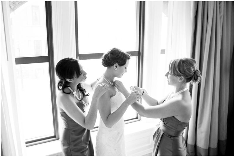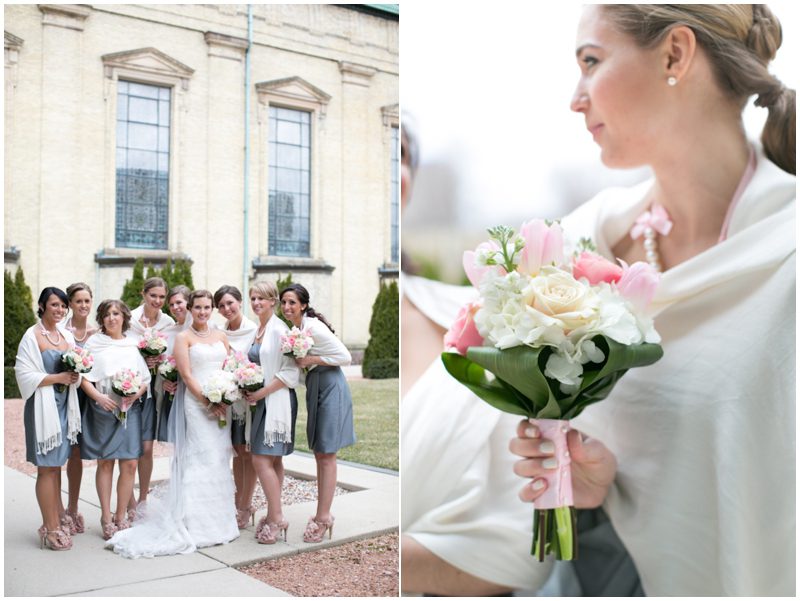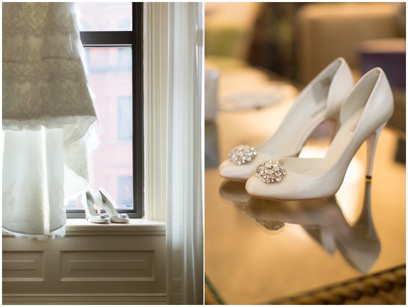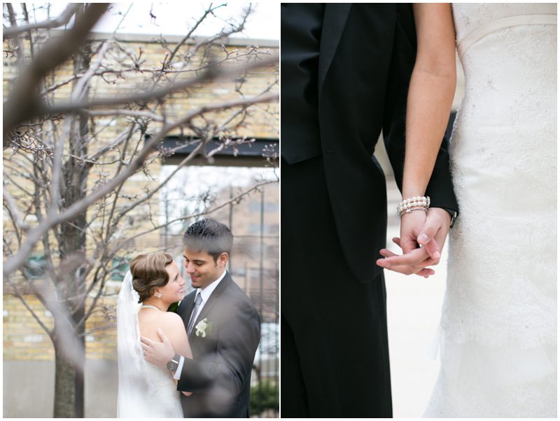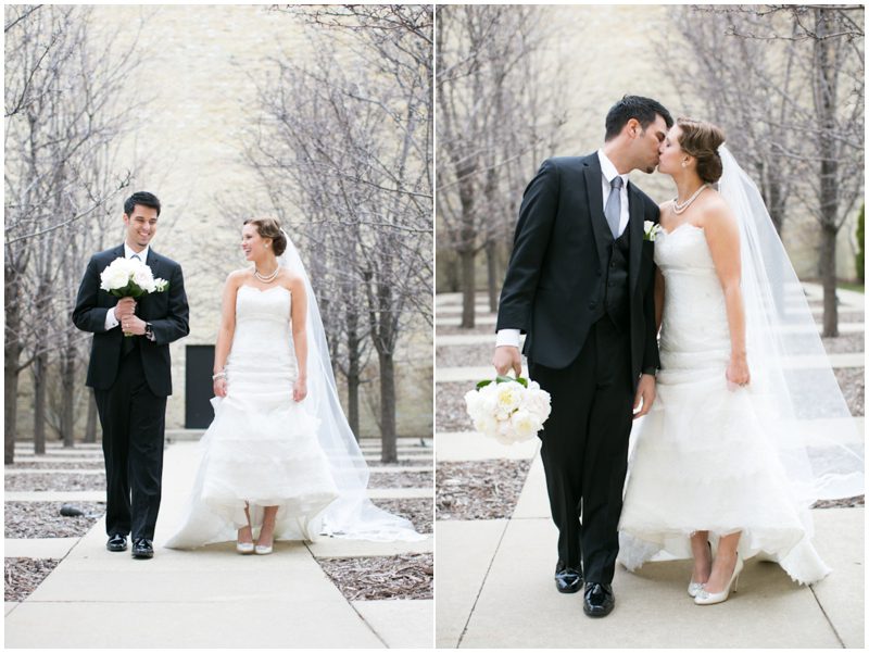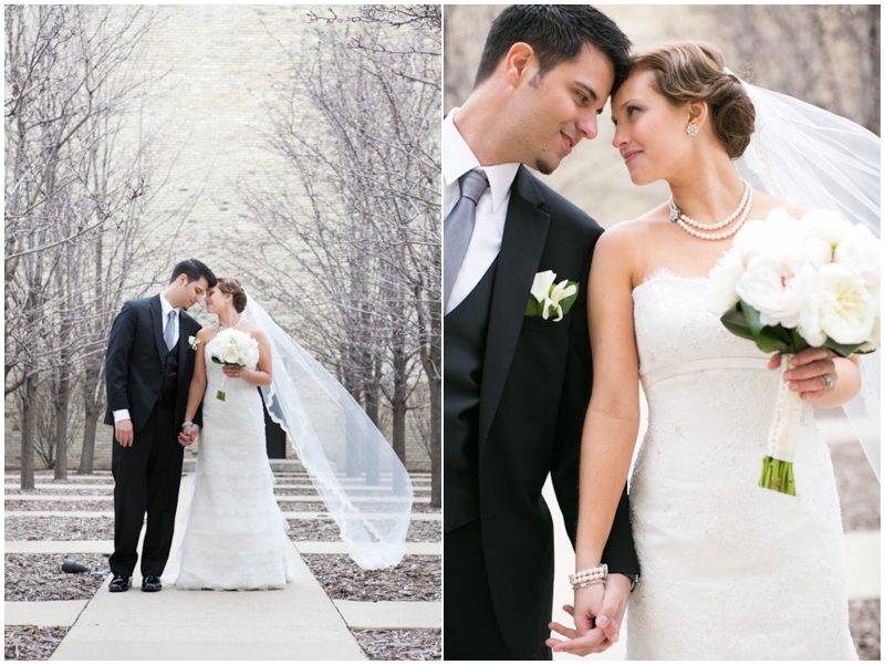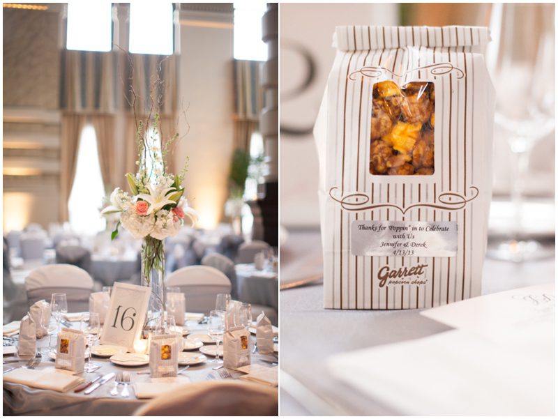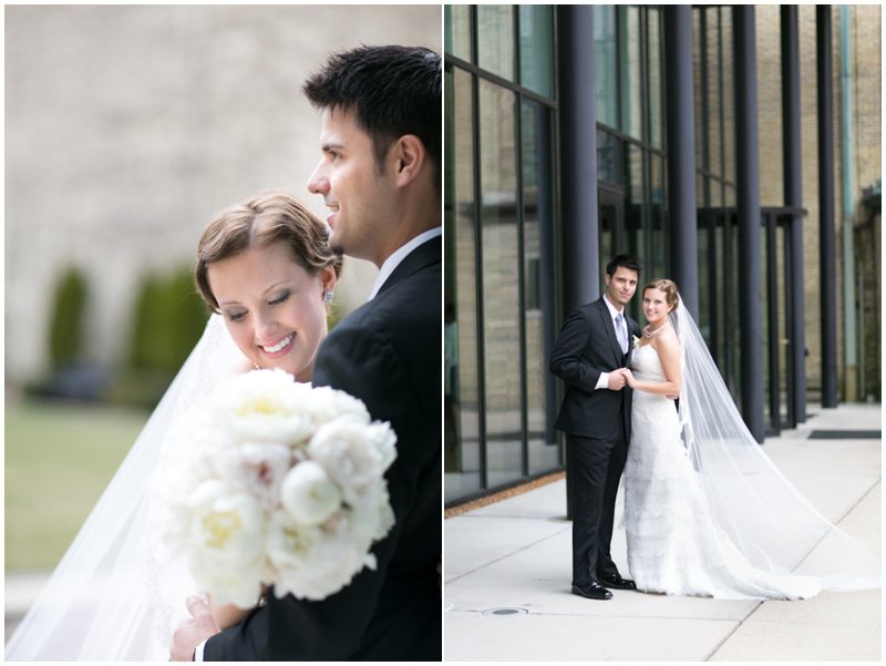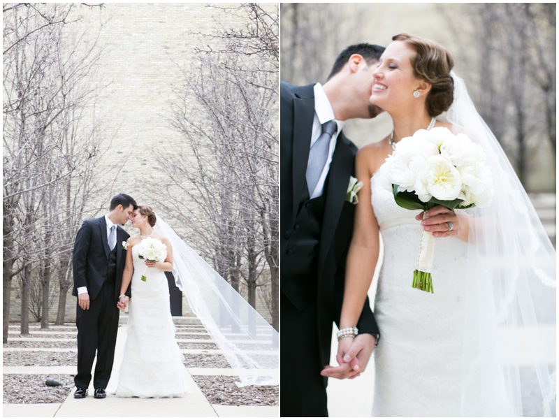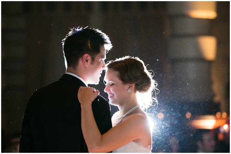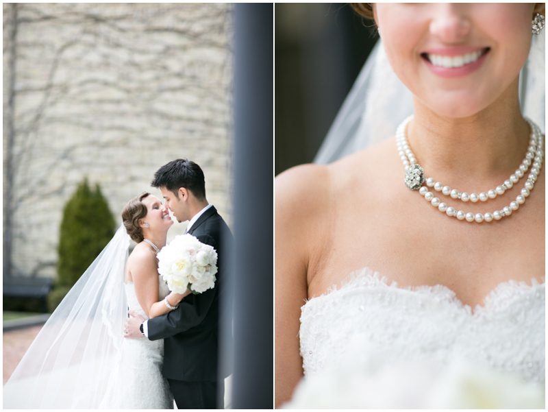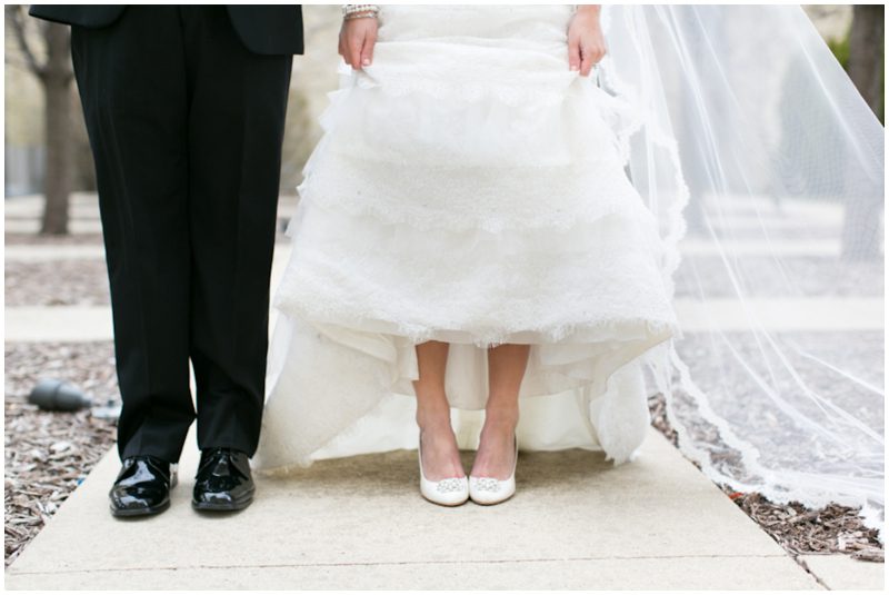 Jennifer & Derek’s wedding day was a mix of elegance and party, haute couture and ’80s sunglasses, snow and sunshine. That’s right, snow and sunshine took turns on their April wedding day and they loved every minute of it. They met through mutual friends but they cheer for different college basketball teams; they love great meals at great restaurants or (as the Best man’s toast informed me) Derek would be just happy with candy for dinner. Simply put, Jennifer and Derek are my kind of people – smart, funny, beautiful and totally happy in any situation be it high culture or low as long as their best friend and now spouse is there with them.