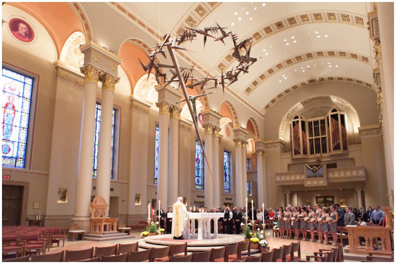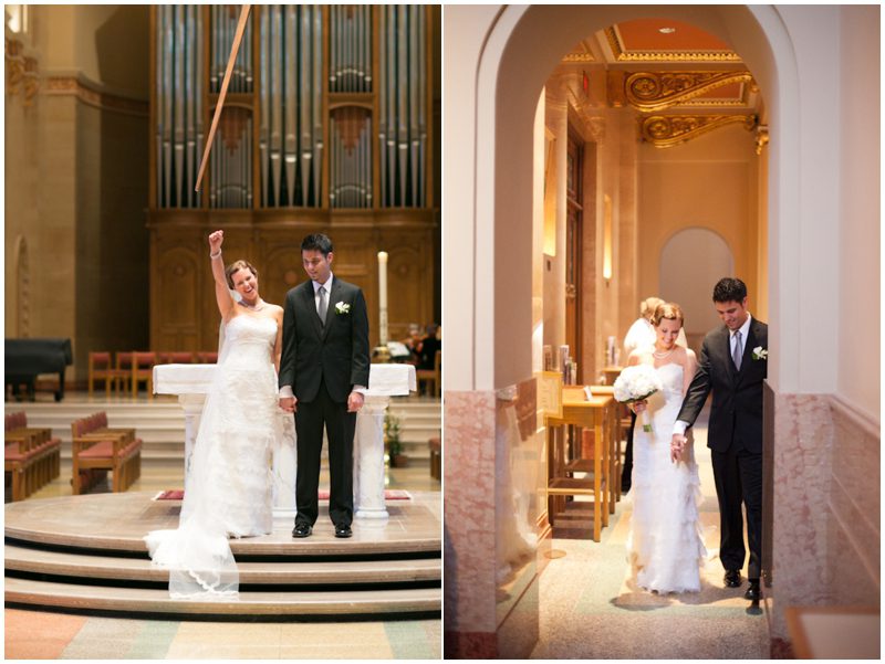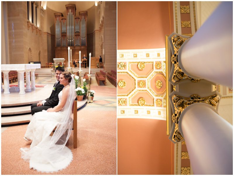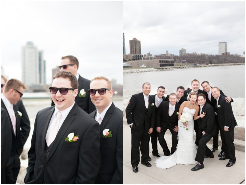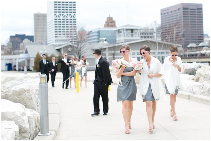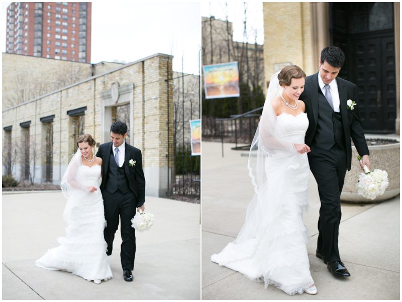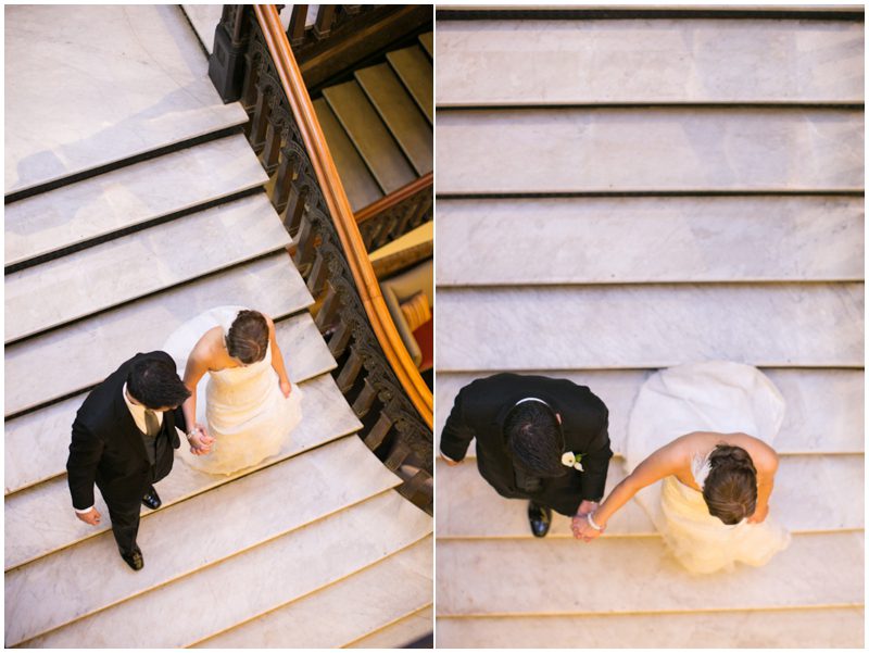 Jennifer & Derek hosted their wedding at some of my favorite venues in the city, ending the night at The Grain Exchange, a gorgeous ballroom capped by a soaring bell tower and gilded in murals and gold leaf. Jennifer’s vintage-inspired dress and hairpiece set her perfectly in the era of the Grain Exchange and Derek handsomely escorted her throughout the day – from the magnificently restored Cathedral of St John to the lakefront and back again downtown. Sunset happened behind a cloud but we made our own magic in the soaring atrium of the newly restored Hilton Garden Inn across the street from the reception. There a huge cast iron staircase capped with marble spirals up through the center of the hotel and allowed me to capture a few quiet, private moments between Jennifer & Derek. And then back again they went to the glitz and glamour of their beautiful reception where their guests munched on Garrett’s popcorn and danced the night away.