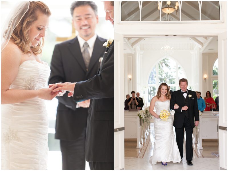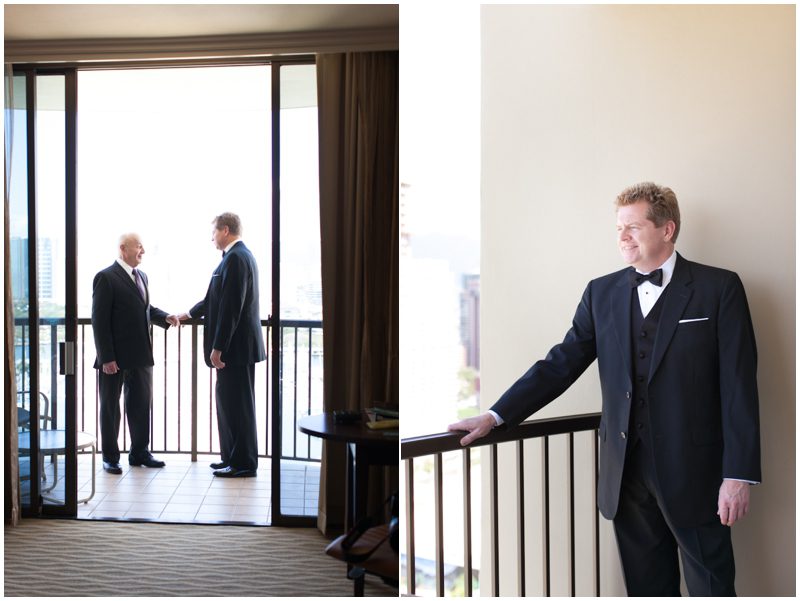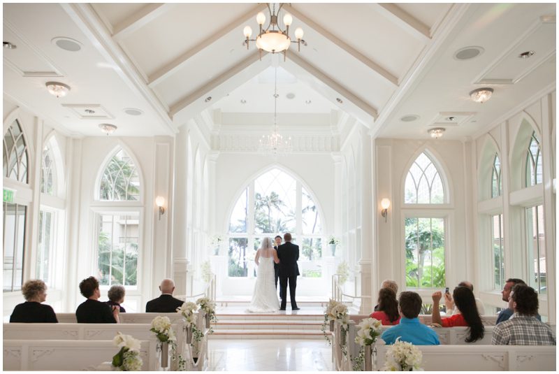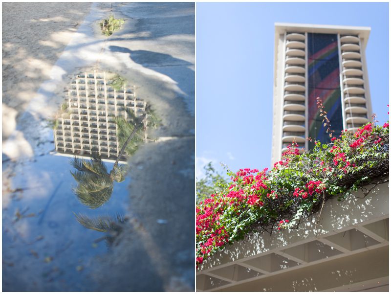 Kristine & Scott’s wedding day was exactly what they imagined it would be – warm but breezy, intimate and candid, romantic and just very them. Scott prepared for the ceremony quietly in Kris’ father’s hotel room where the sky-high balcony overlooked the Honolulu Marina and the vast Pacific Ocean. A few floors below in a room that opened wide to views of Diamond Head and Waikiki Beach, Kris’ mom shared happy tears with her and they both breathed deeply knowing today was the day. Scott & Kris met at the altar of the perfectly bright white Ocean Crystal Chapel where palm trees swayed outside the clear arched windows and a very few family members witnessed them say I Do. A million miles from home in their heads and hearts they were all smiles, all happiness, all perfect bliss. Husband and Wife, His and Hers, at home where ever they were together.