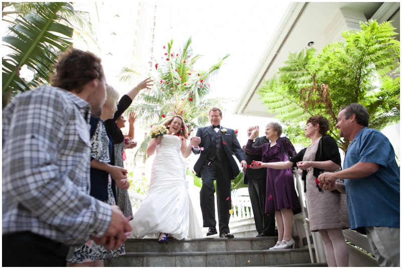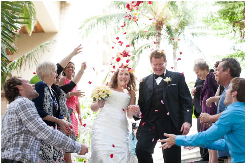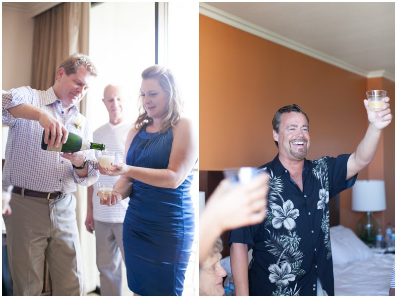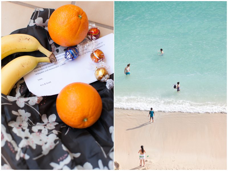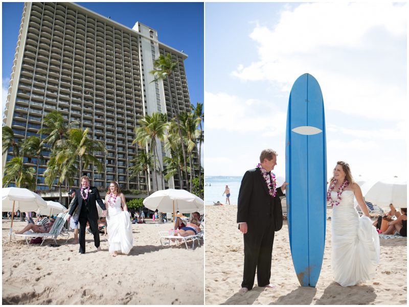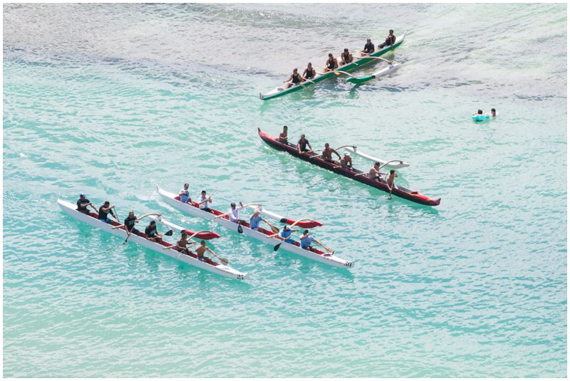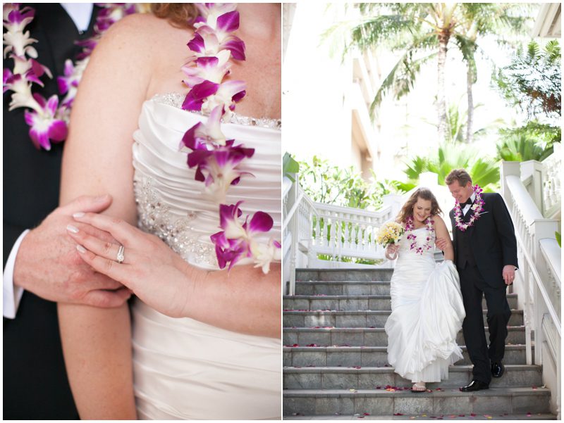 The day unfolded the way it only could in Hawaii, with champagne toasts on a 15th floor balcony above while Hawaiian canoes raced below. The delicious smell of plumeria in their traditional leis followed them wherever they went – from the beach to a roof top luau. They watched fire dancers and danced to traditional Hawaiian music, they celebrated and laughed and held each other close.