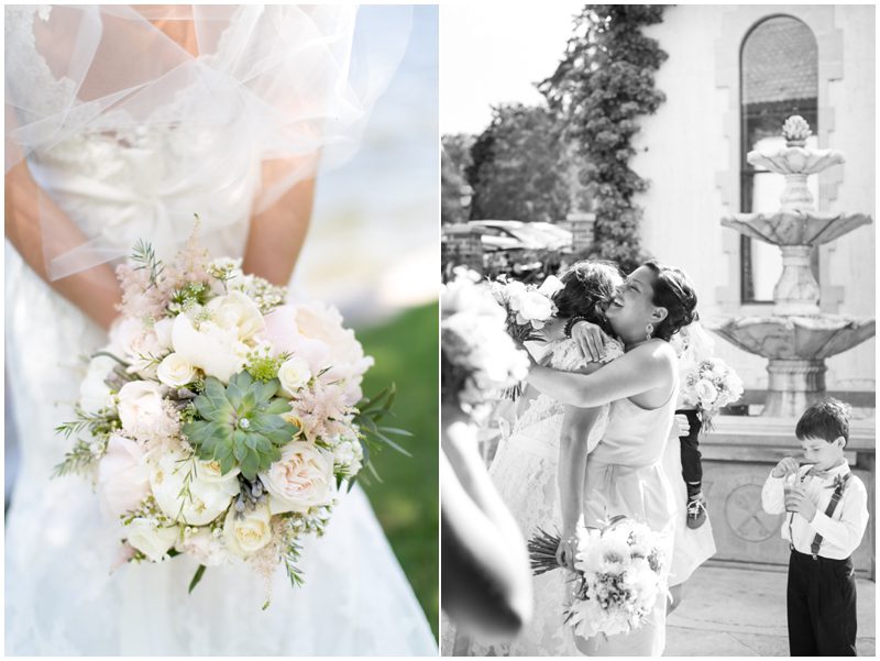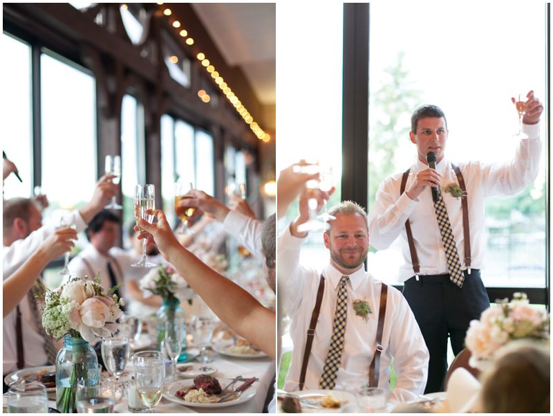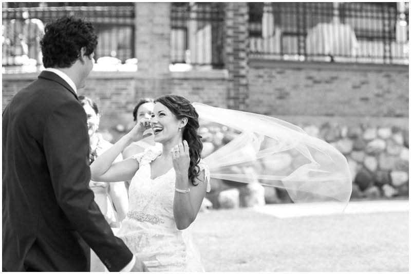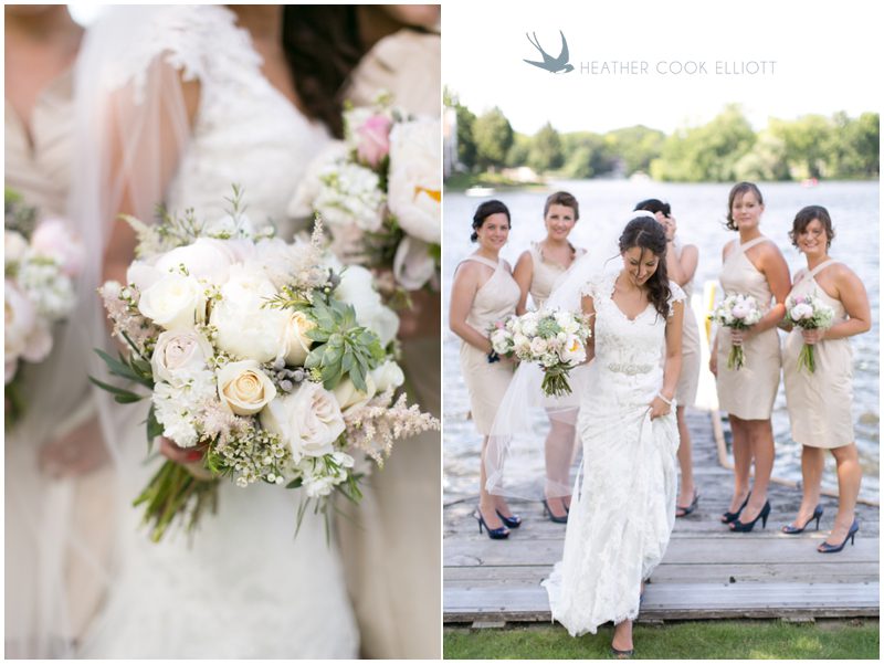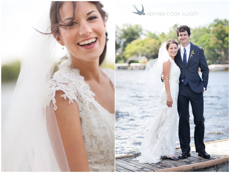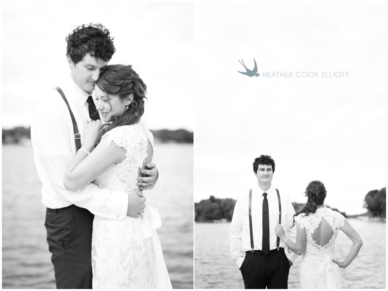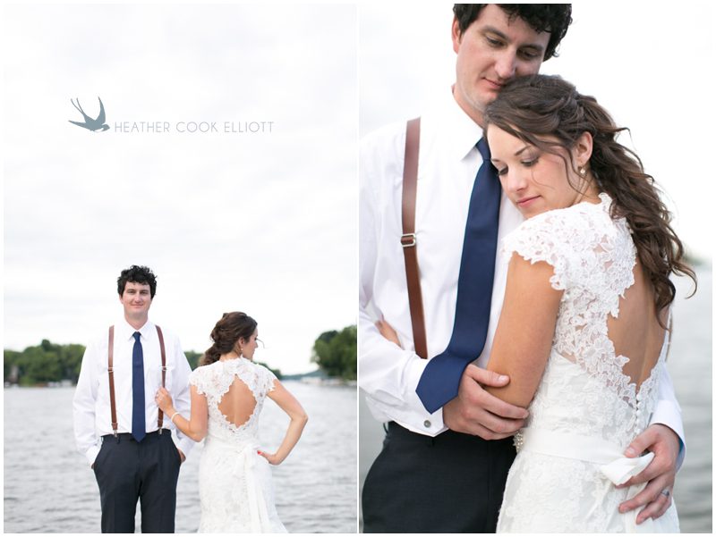 Maria & Dave have a magnetism about them that draws everybody in – into conversation, into laughter, into their lives, into something special. Their wedding day was a testament to that magnetism – and to how full their lives are now and how impossibly full they will grow to be. On a sunny day that was the stark opposite of their engagement session day (as was intended) they met on a dock, in the wind and said I love you. I can’t wait to marry you. That wind played with Maria’s veil and their favorite people laughed and cheered them on (as did many boaters motoring by during the lake side ceremony) and they just sort of melted into a perfect day to say I Do. I adore their easy style that is at once down home and rustic, but a bit refined and frilly. Maria DIY’d many things and basically thought of everything to keep guests happy. I’ve never seen so many children at a wedding – 30 or more – who played with their kid entertainment treat bags and begged for pictures with Maria & Dave. I caught a glimpse of two cousins playing at wedding (the “groom” opted to wear a Spider Man mask) after dinner and more smiles than I could count in every direction I looked. When it was time to dance Maria and Dave shared a sensual, sweet, totally romantic moment where I think everyone in attendance saw what real love looks like when it decides to dance. I have a feeling Maria & Dave dance together a lot, just the two of them, alone in a room full of people.