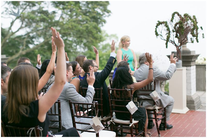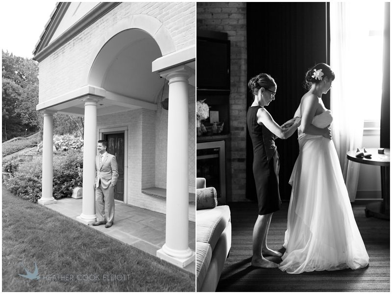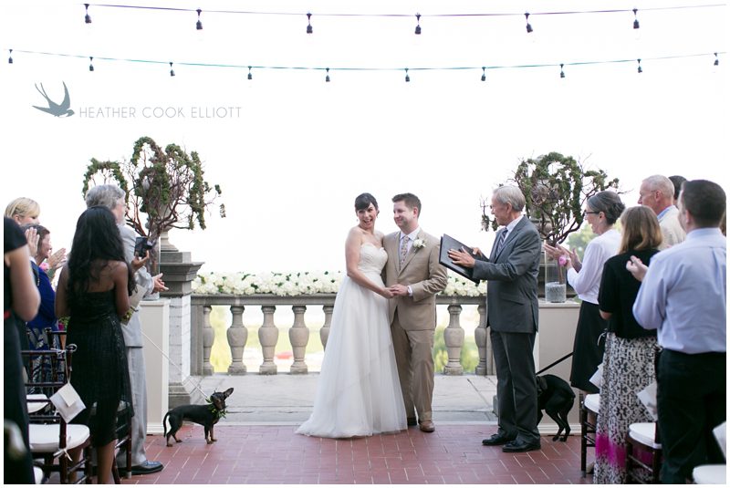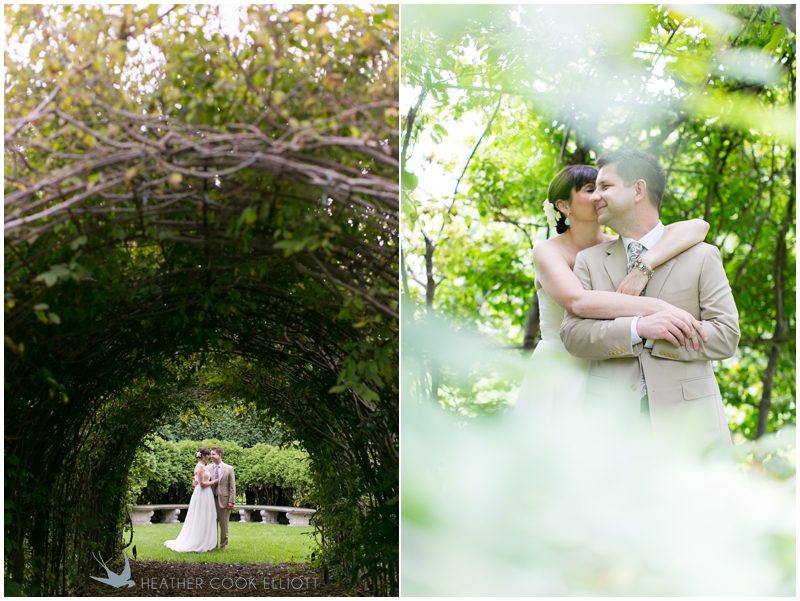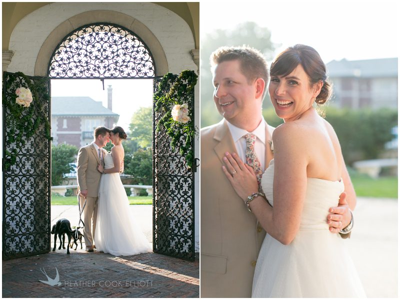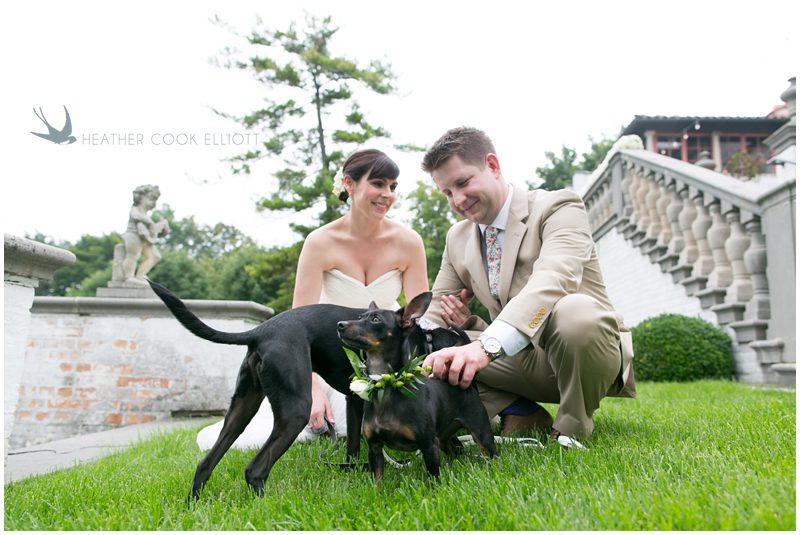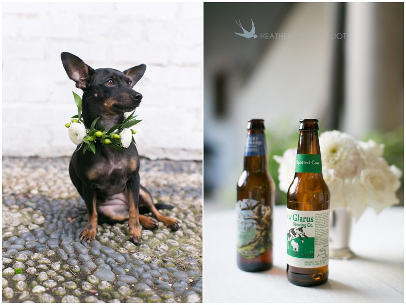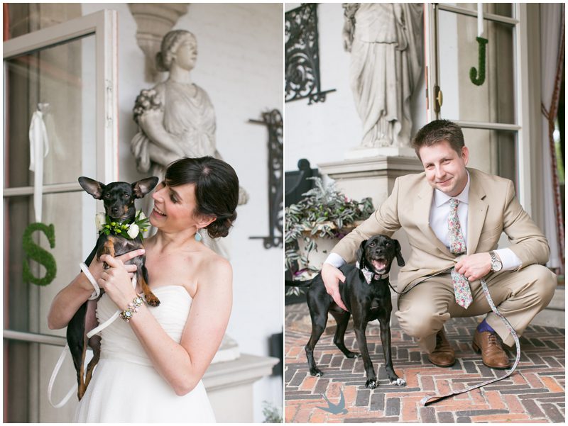 Sam & J’s wedding lives in my memory the way a good meal in a perfect setting with the right people stays on the mental palette for years to come. It was intimate, romantic, playful, delicious – the kind of day that never feels hurried; the kind of day that slowly simmers every experience to perfection. These days Sam & J live and work together in Virginia where he’s from but they decided to marry back in her home state at the incomparable Villa Terrace, a little garden oasis in Milwaukee that reminded them rather a lot of a beloved travel destination of theirs – Sea Island, Georgia. Travel is something they’ve done quite a bit and in talking to them one gets little hints of lovely trips and awesome adventures in their past: the engagement ring was found in a little shop near Italy’s Lago Como and she had just returned from a Tanzanian safari when we did their engagement session earlier this year. And really, seen through their eyes, Wisconsin even becomes a bit of a destination, one who’s traditions and local fare they mixed with southern-inspired charm to create a simply gorgeous day. I adored the woven grass fans and moss covered gates paired with New Glarus beer (only available in Wisconsin!) and assorted Wisco artisan cheeses and playful bites like mini-grilled cheese & tomato shooters. Off and on the sun shone brightly, a perfect match for the gardenia in Sam’s hair and J’s summer suit, all of which combined with gorgeous lake views to trick the senses – maybe we are staring out at the Georgia coast after all…but then the mist rolled in and the edison lights overhead began to glow and it all felt very lakeside, very cozy, very Wisconsin again. And I have to say a little something about the most adorable and well-behaved bridal party a photographer could ask for. Fur siblings Lily “The Pill” and Max walked down the aisle and practically posed for pics all day, two constant companions for both Sam & J. I loved how they helped Sam & J feel truly at home on their wedding day, and how they made the Villa their own. From treat to treat and guest to guest Lily & Max made the day for everyone. And here are the photos to prove it ~