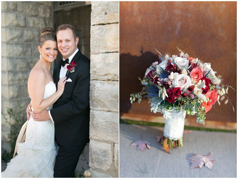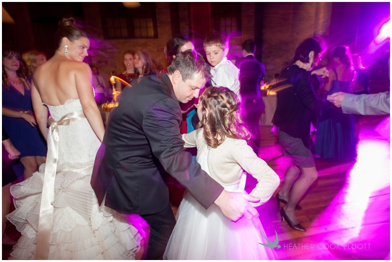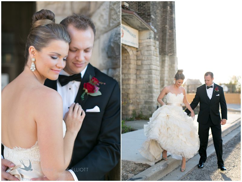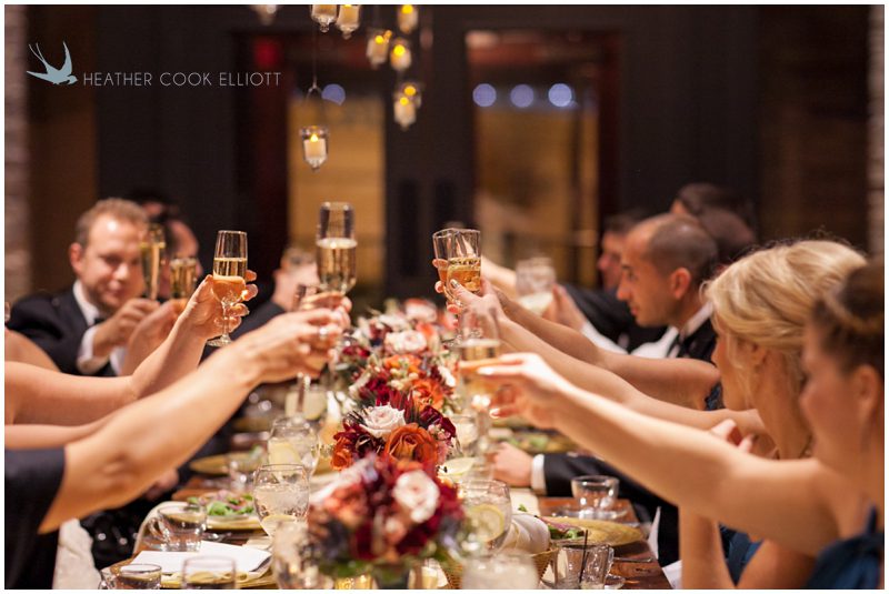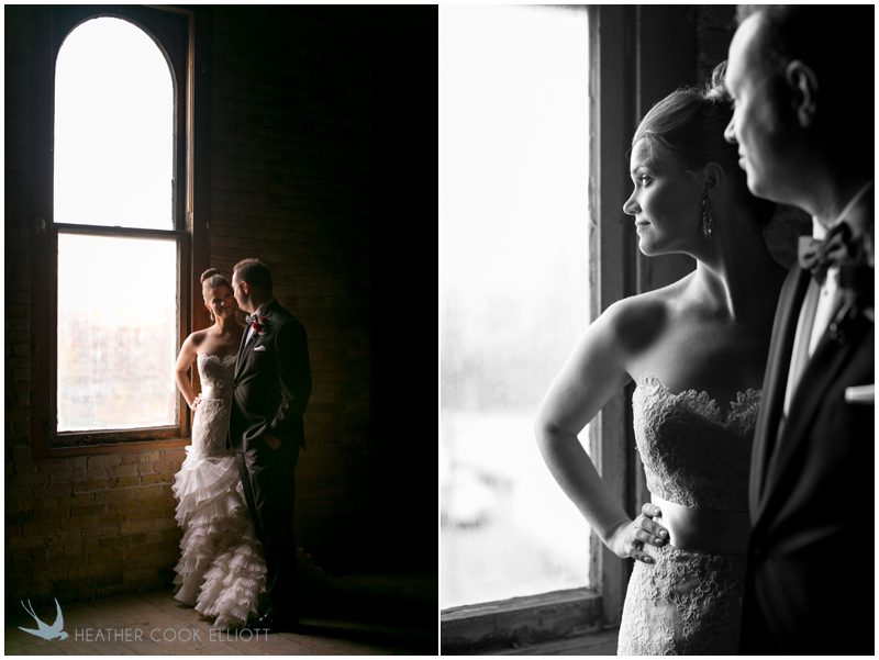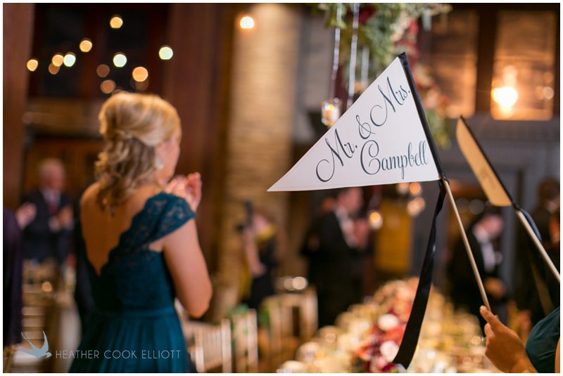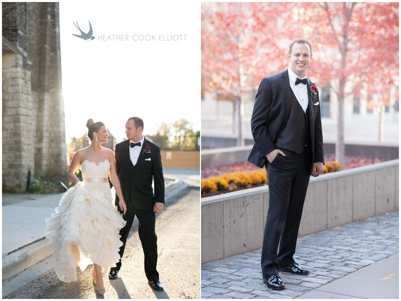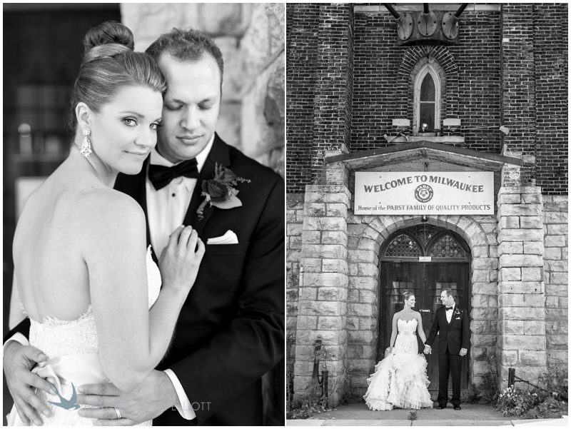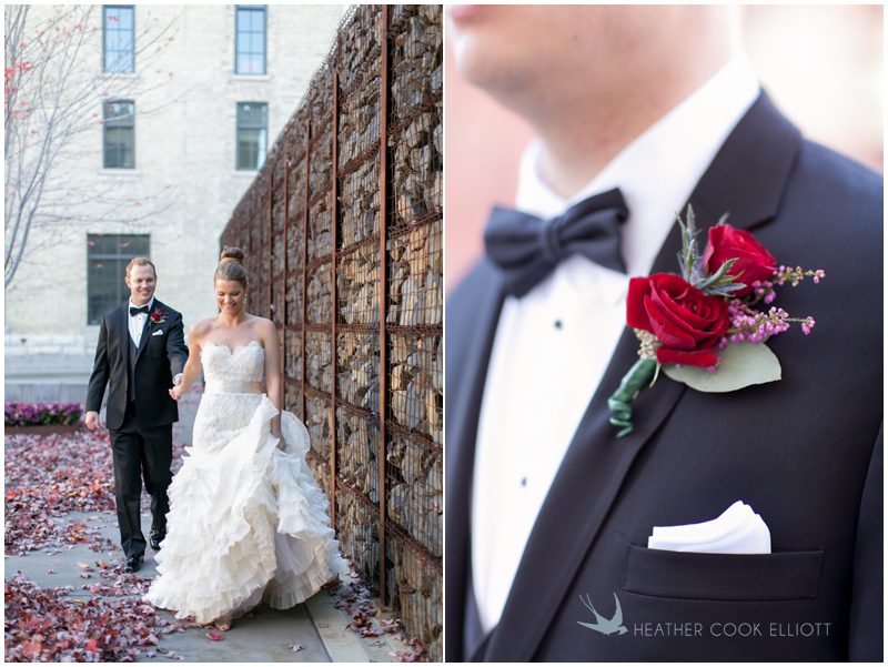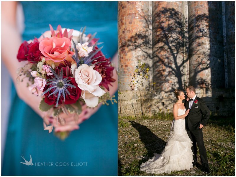 Stephanie & Jay are my kindof people. They love coffee dates and lakeside walks, European beer gardens and travel, family traditions and did I mention beer? They live in Minnesota but traveled to her home state of Wisconsin for an October wedding that reflected a fair amount of those loves and its an understatement to write that Carolina was thrilled to get to photograph it. People in the midwest take their heritage seriously and this wedding proves it – both were born and raised in the midwest, but Stephanie ‘s family is solidly German while Jay’s is all Scottish and they designed a wedding to celebrate both sides – blending cultural traditions with midwestern classics to create a wedding weekend that managed to be both glamorous and cozy, upscale and down-home, all about the drinks, the flowers and the love. The original inspiration for most of their design ideas was to host the weekend in a beer garden – think floating lights and florals dripping from the ceiling and you have the right idea. To that end, the weekend started with a groom’s dinner at Best Place, a rathskeller type space that used to be the boardroom for executives at the Pabst Brewery in Milwaukee. Stephanie wore a dried flower crown for the evening in keeping with an old German tradition and their beer was served in glass boots from Mader’s, a local 100+ year old German restaurant. The next day they revisited Pabst Brewery for stunning portraits on the campus before hosting guests at the Historic Pritzlaff where an area that used to be loading docks was transformed with dripping candles and florals to be their European style beer garden. On this day the flower girls wore the flower crowns and Stephanie a bold Lazaro dress with gorgeous ruffles and a glam topknot. At the reception they offered guests a Milwaukee favorite – brandy old fashioneds – and the Scottish side changed into kilts (and the mother of the groom donned a tartan sash!) Stephanie even changed out of her sparkly Jimmy Choos and slipped into a tartan clad pair of shoes that I adored. Overall, the color palette was a surprise – teal and rust colors with pops of purple and lots of green – but I love how those deep fall colors suggested the change to kilts that was to come. With gold details, lots of candle light and garlands galore on wooden tables the effect was perfect and beautiful and very Stephanie & Jay.