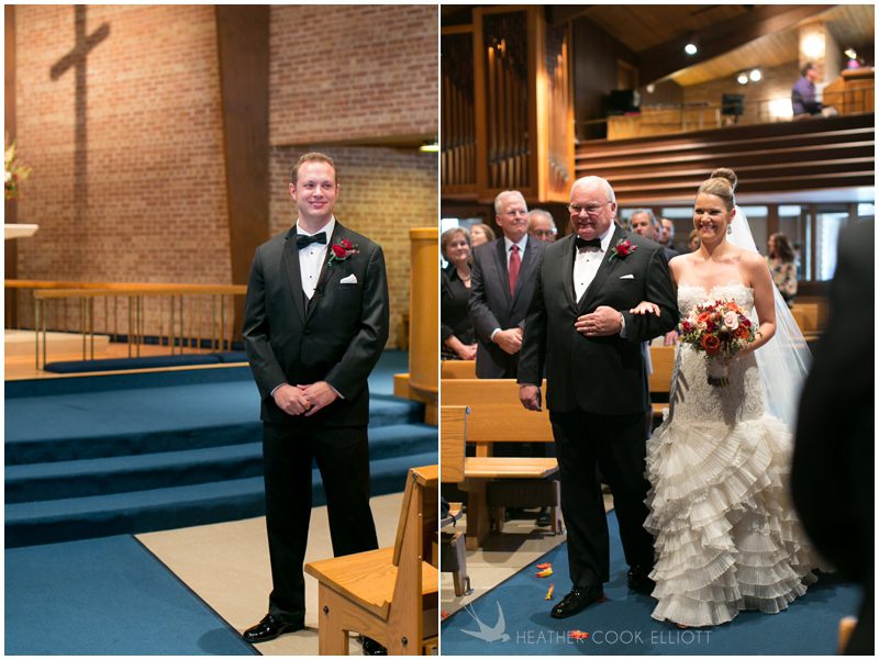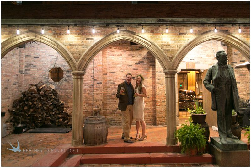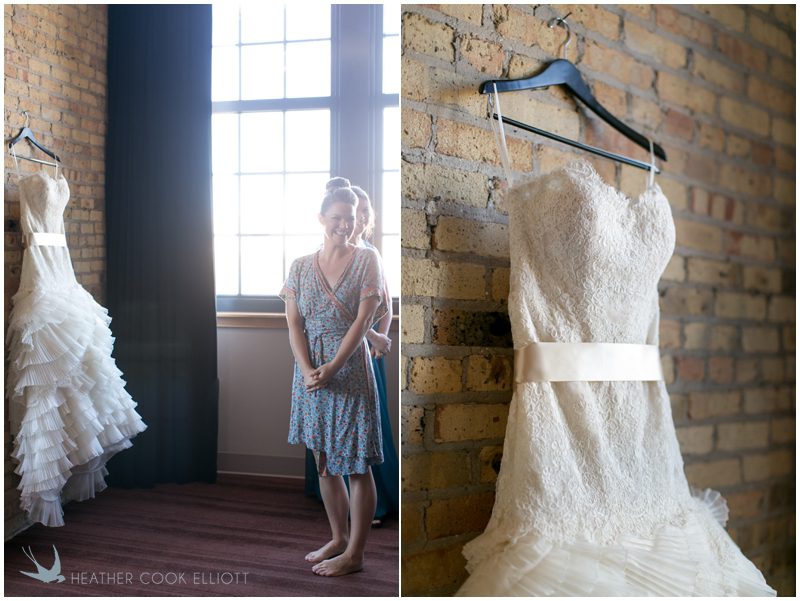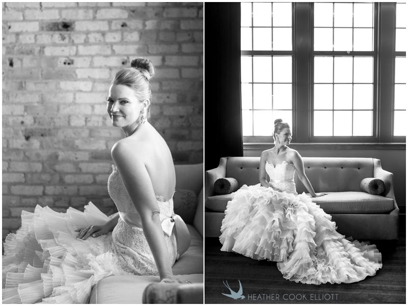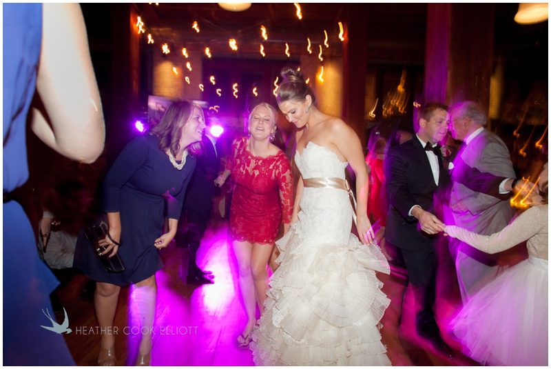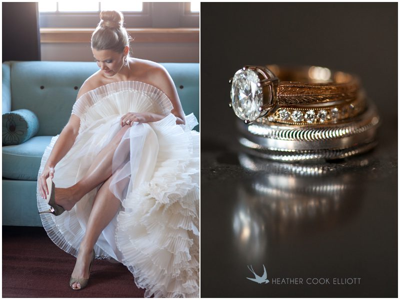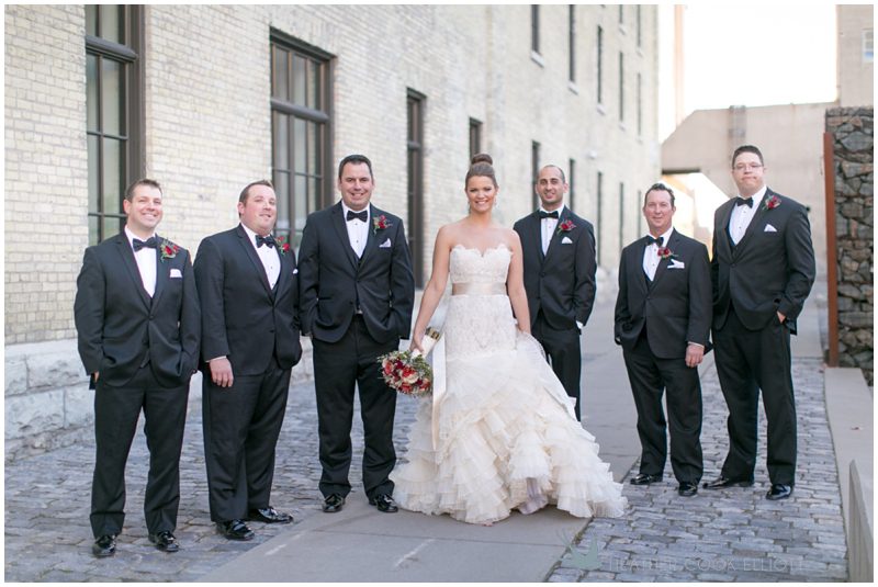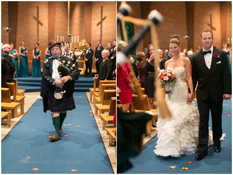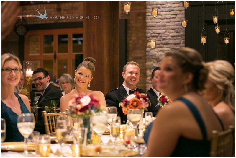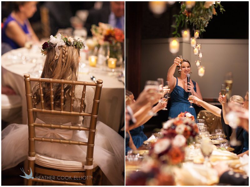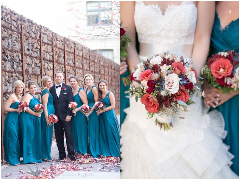 Stephanie & Jay are my kindof people. They love coffee dates and lakeside walks, European beer gardens and travel, family traditions and did I mention beer? They live in Minnesota but traveled to her home state of Wisconsin for an October wedding that reflected a fair amount of those loves and its an understatement to write that Carolina was thrilled to get to photograph it. People in the midwest take their heritage seriously and this wedding proves it – both were born and raised in the midwest, but Stephanie ‘s family is solidly German while Jay’s is all Scottish and they designed a wedding to celebrate both sides – blending cultural traditions with midwestern classics to create a wedding weekend that managed to be both glamorous and cozy, upscale and down-home, all about the drinks, the flowers and the love. The original inspiration for most of their design ideas was to host the weekend in a beer garden – think floating lights and florals dripping from the ceiling and you have the right idea. To that end, the weekend started with a groom’s dinner at Best Place, a rathskeller type space that used to be the boardroom for executives at the Pabst Brewery in Milwaukee. Stephanie wore a dried flower crown for the evening in keeping with an old German tradition and their beer was served in glass boots from Mader’s, a local 100+ year old German restaurant. The next day they revisited Pabst Brewery for stunning portraits on the campus before hosting guests at the Historic Pritzlaff where an area that used to be loading docks was transformed with dripping candles and florals to be their European style beer garden. On this day the flower girls wore the flower crowns and Stephanie a bold Lazaro dress with gorgeous ruffles and a glam topknot. At the reception they offered guests a Milwaukee favorite – brandy old fashioneds – and the Scottish side changed into kilts (and the mother of the groom donned a tartan sash!) Stephanie even changed out of her sparkly Jimmy Choos and slipped into a tartan clad pair of shoes that I adored. Overall, the color palette was a surprise – teal and rust colors with pops of purple and lots of green – but I love how those deep fall colors suggested the change to kilts that was to come. With gold details, lots of candle light and garlands galore on wooden tables the effect was perfect and beautiful and very Stephanie & Jay.