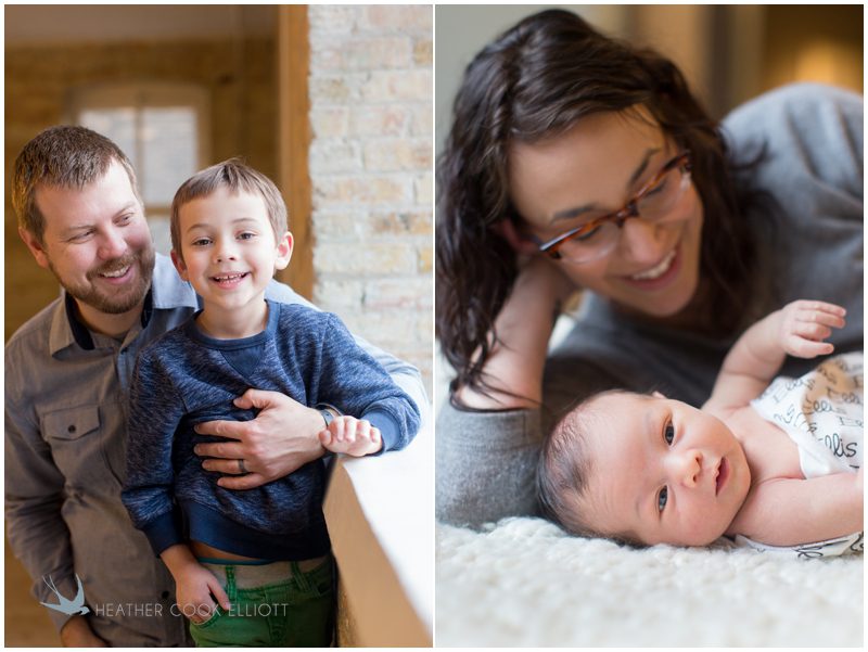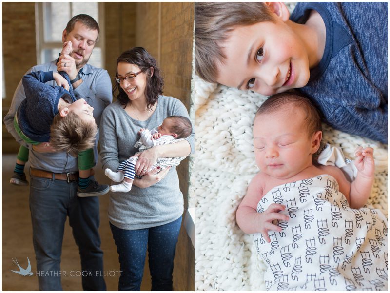Baby Ellis just joined an amazing little family we’ve been blessed to photograph over the last 6 or 7 years. It all started with Tara and Adam’s wedding on a sunny day in Muskego. Back then Tara was just starting her graphic design business called Cracked Designs (you should really check it out) and I still remember her lovely self-designed bird-filled invites and wedding day paper. Everything about them (both the paper and the couple) was easy and airy, a little quirky and fun, but thoroughly sweet and elegant. Then Beckett came along and I was invited into their home to photograph him snuggled happily against a backdrop of beautiful big dogs and bookshelves filled with antique trinkets and inspiring design ideas. Now this year more big changes: a new house in a new neighborhood, and best of all, a new baby to fill out the family. The new house is still under construction so we welcomed Ellis to the studio where Sara photographed his family all warm and happy to have him in their world. I’m happy to call these 4 part of my world too – welcome baby Ellis; you are part of a crazy cool clan.
