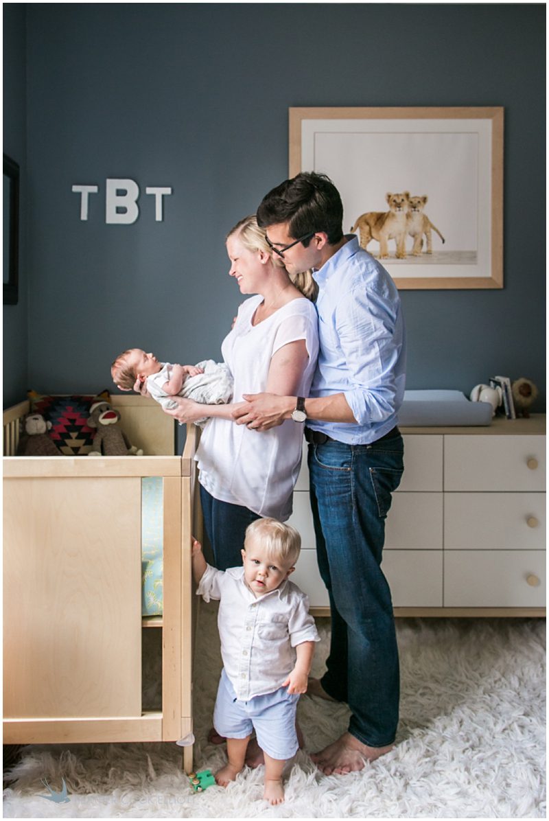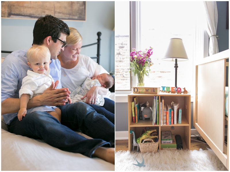 Baby Theo just joined a sweet, engaging family that I’ve been photographing for years now, a fact I am honored and oh-so-pleased to share. From city engagement session to lakeside nuptials and then on to familydom with the birth of big brother Nolan and now with tiny Theo, Mama Meg and daddy Dan are among my favorite people to photograph. They have a luxe, but understated style that exudes calm and that’s how their shoots always are – even this one with Nolan completely confused by all the attention the little bundle in Meg or Dan’s arms was getting. At home in their light filled condo, Nolan was left to wander where he wanted, checking in occasionally on Theo who slept and cuddled showing off his adorable cheeks. These boys share a room and I am certain they’ll share a happy childhood, many happy memories and all-in-all, a happy life making mom and dad’s world more complete than they could have ever imagined.