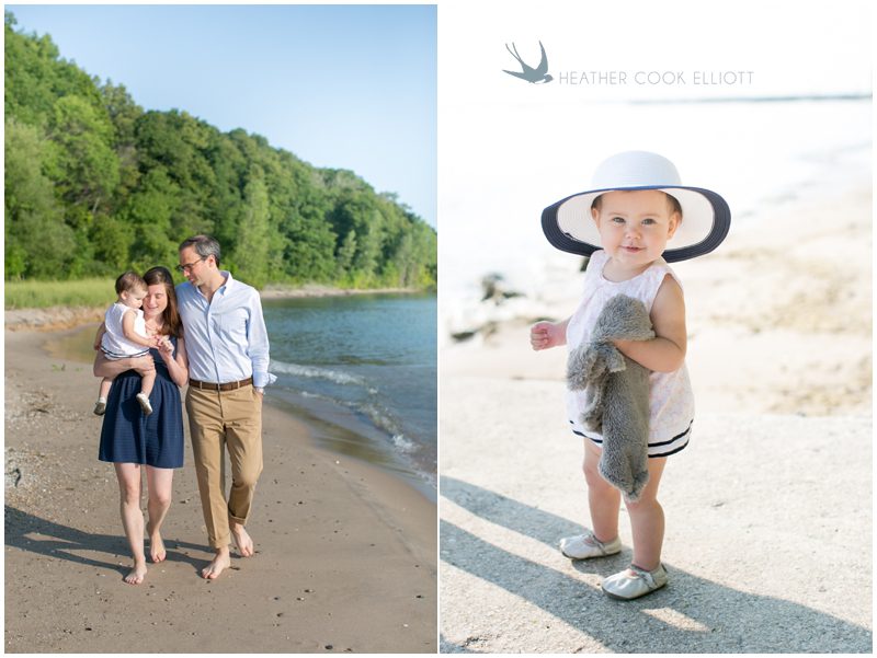 Little Miss Charlotte, often called simply C by her parents, is inquisitive and busy getting ever more steady on her feet. At a year old she has beautiful eyes that catch the sun and reflect Lake Michigan’s blue water back at my camera, the softest hair one can imagine, and a smile that reaches way up from her lips to those aforementioned eyes. She visited me one sunny morning just before the air turned wholeheartedly to fall breezes and we explored the beach, the boardwalk and everything found in between. She mostly wanted to cuddle her lovie or explore on her own but we managed to convince her to share mama’s lap or daddy’s arms for a minute or two out of 60. I love the way she wears her hat, her smile, her confidence and I think these images showcase all of that plus a lot of family love, too.