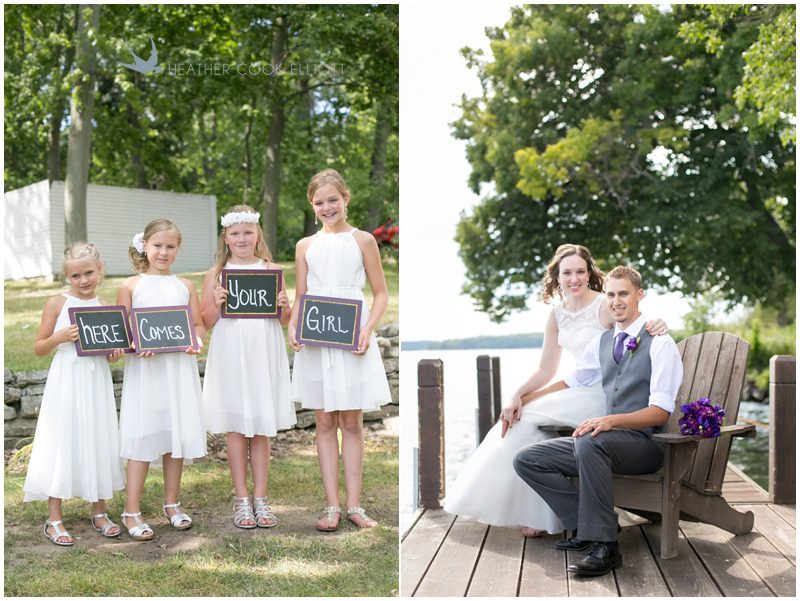 Janae & Zach believe in fate and I suppose the power of belief, itself. Here are just a few of the things they believe: finding your soulmate can change your life, cupcakes are the best dessert, God is the best guide, anything worth doing is done better lakeside, family is first and it’s not necessary to wait until the weekend to get married. I learned all of this about them through the lens of Emily, who captured their shoreline I Dos at Heidel House on the 5th of August, a Wednesday. They started dating on the 5th of a month and they both have birthdays on the 5th so they decided to host a low-key, super relaxing wedding on that recurring date. They wanted it to be summer and lovely and easy and breezy and it happens that the 5th of August worked best for them and just fine for everyone else they love and so it was. They dressed indoors while the summer sun warmed up the grounds of the resort and then met in the cool, shaded privacy of tall trees, saying a prayer together before tying the knot in front of their nearest and dearest. Tons of handmade details from chalkboard signs to cupcake toppers to fun mad libs for parents and kids alike filled their reception and it was obvious these two believe in their life together, their love ever after, in forever.