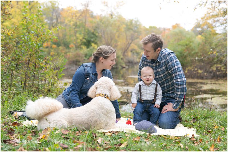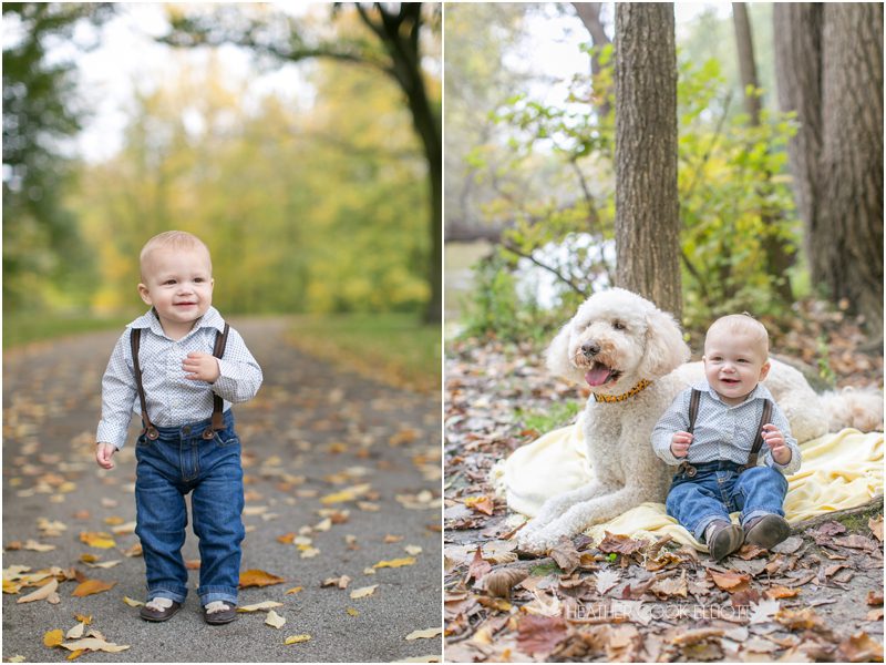 Jack & Lulu the pup have been best buds for about a year now, ever since Jack came into his mom & dad’s life (and I suppose, Lulu’s life, too!) on a warm October day last year. Like last year, this October was warm and the leaves stuck around long enough for families everywhere to dream a little dream of going on a woodsy walk now and then. I was lucky enough to tag a long as Jack, Lulu, mom & dad made that dream a reality at Estabrook Park. Jack was a bit skeptical of the whole photo shoot idea, but he loved showing off his new walking skills, petting Lulu and as always, cuddling with mom and dad. He loves his little trucks and balls, but a colorful leaf or a veggie snack held his attention for quite awhile, too. I adore seeing babies grow into toddlers before my lens and that is just what baby Jack Hayes has done. Kudos little man- happy growing in the year to come!