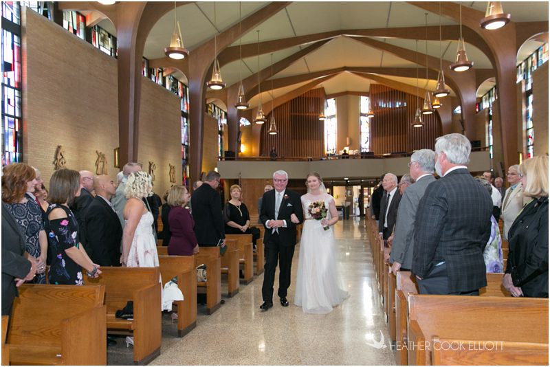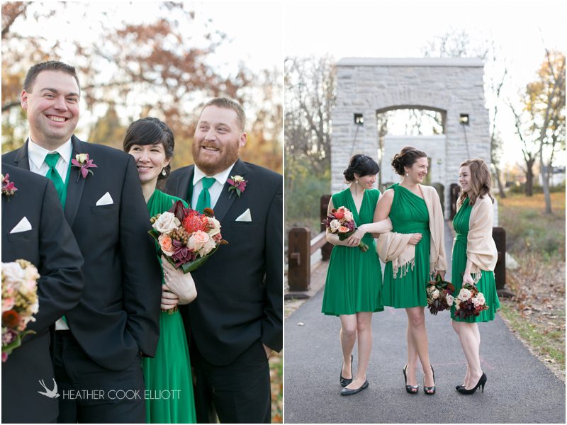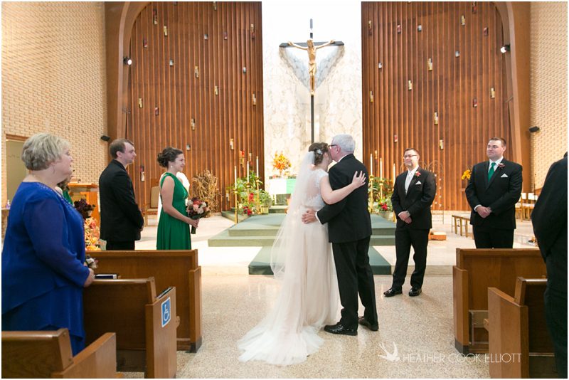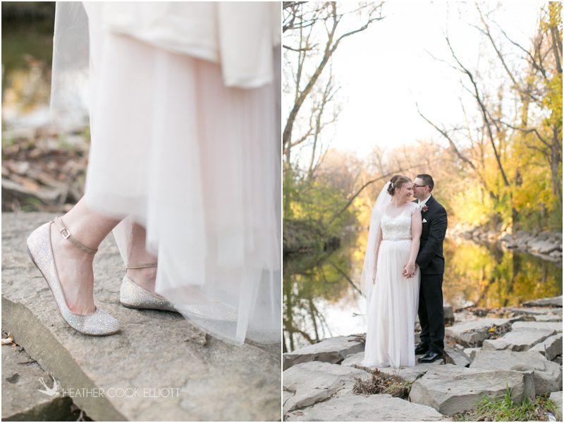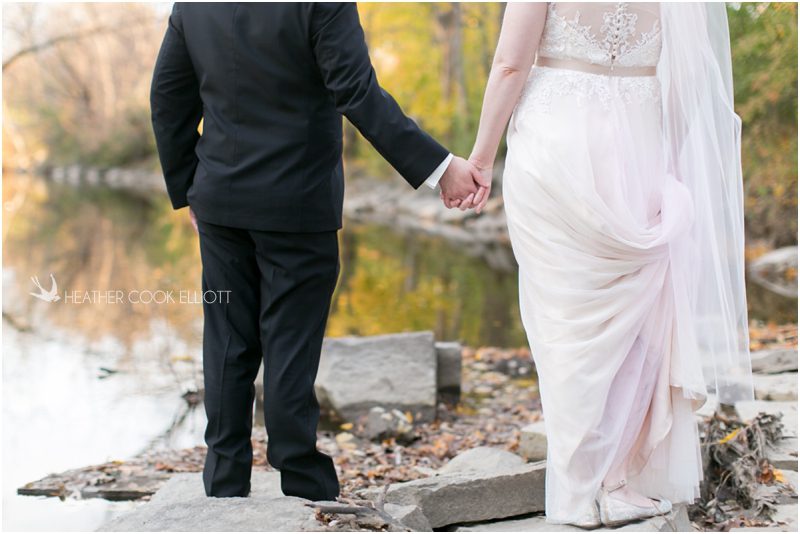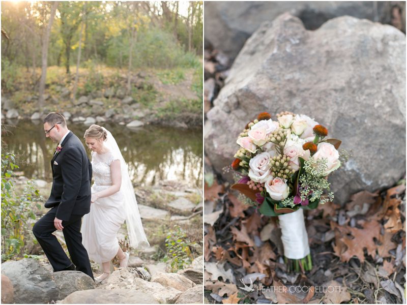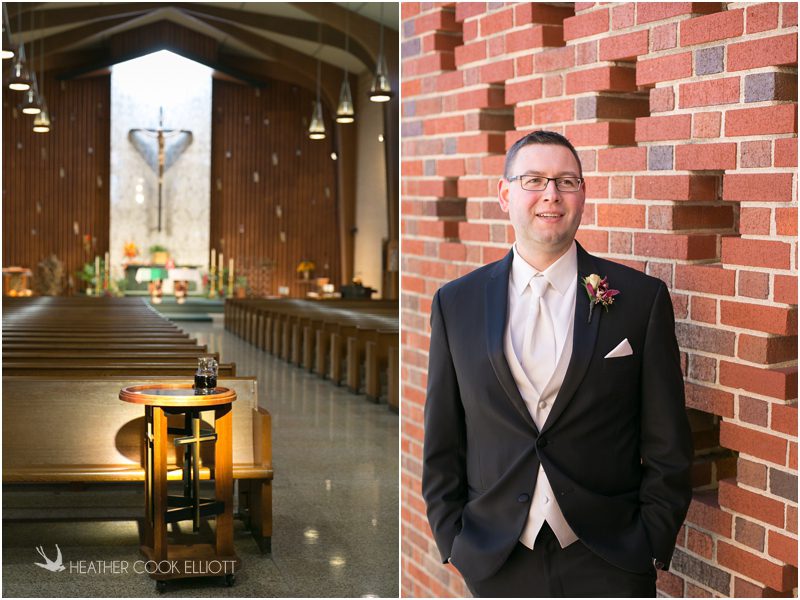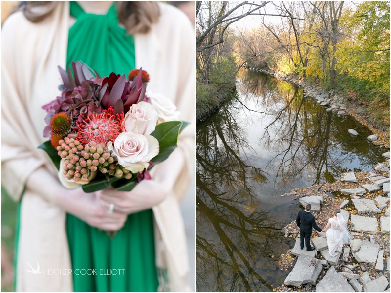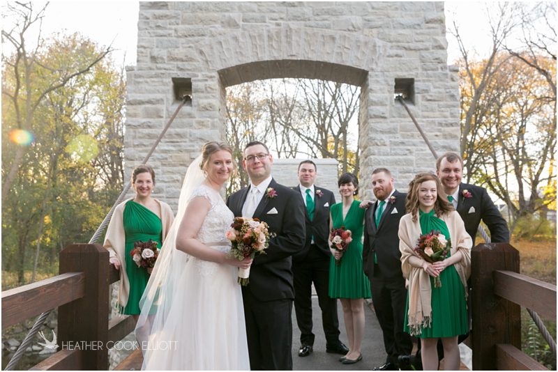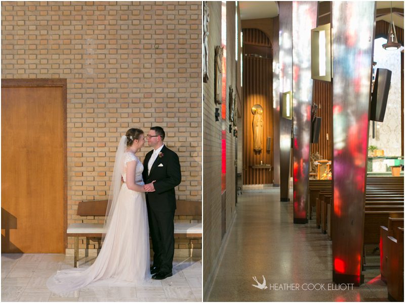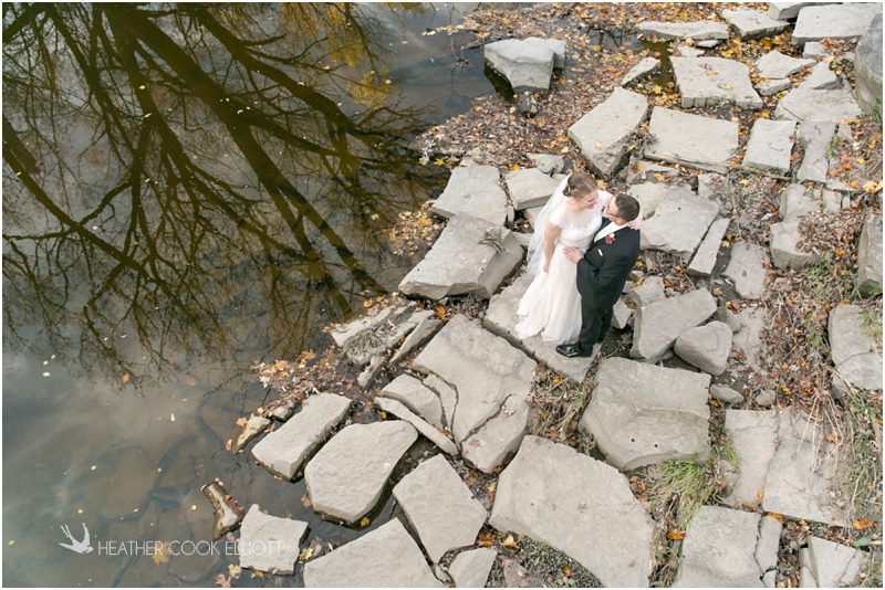 Julie & Colin’s November wedding day was exactly what any Wisconsin fall wedding couple hopes for. It was crisp, but sunny, with colorful leaves still clinging to trees and the kind of atmosphere that makes one want to be outside enjoying a beverage with friends. Julie and Colin steeped themselves in the spirit of the day by making sure they stuck close to their neighborhood and favorite places, treating their bridal party to an afternoon at the (locally) world famous Leff’s and cuddling their beloved dog Norbie in the process. They married at the church they attend regularly just blocks from their house and invited Julie’s family priest to seal their vows. Julie kept an adventurous attitude all day and was willing to clamber riverside at Hoyt Park, a place they love to visit with Norbie on a regular day. At the reception she performed a west coast swing-inspired first dance with Colin, a dance style that Colin and his friends dearly enjoy and Julie is coming around to learning. Together they roused cheers from their guests and caused more than one standing ovation to happen throughout the night. It was a day when the ordinary turned extra-ordinary just because two people found each other and said Yes.