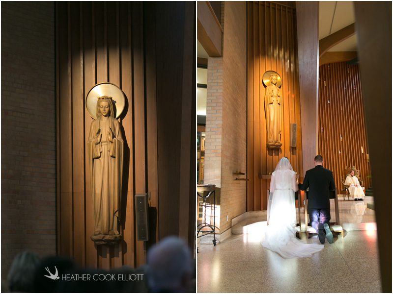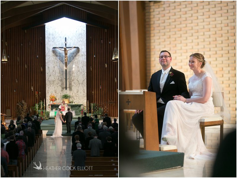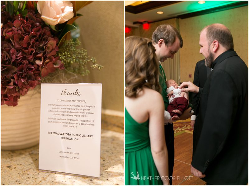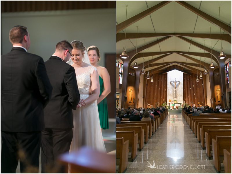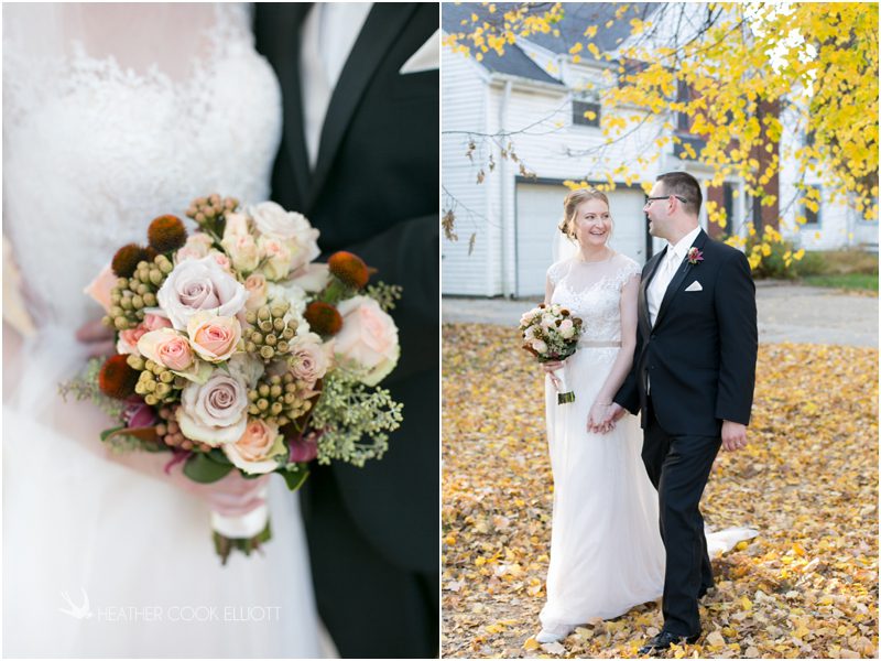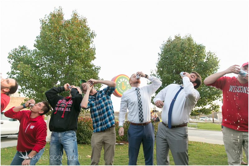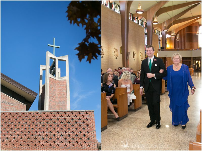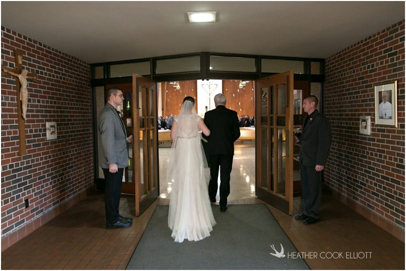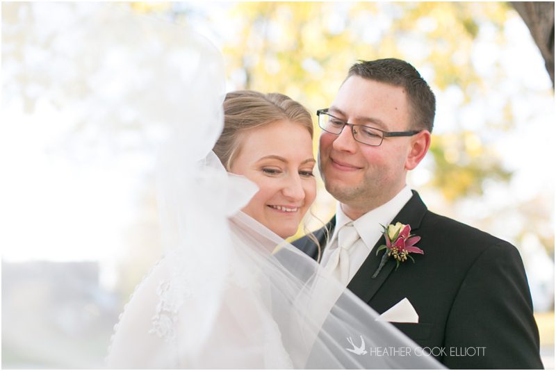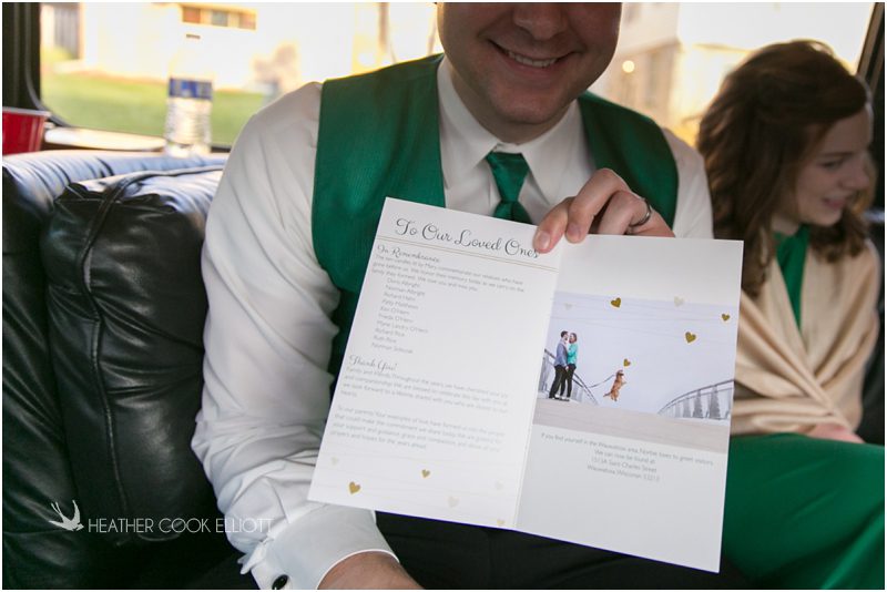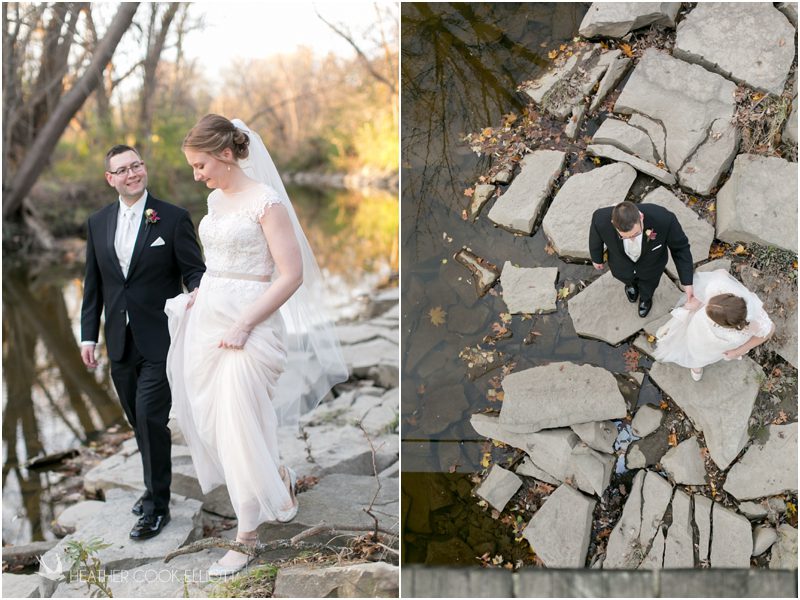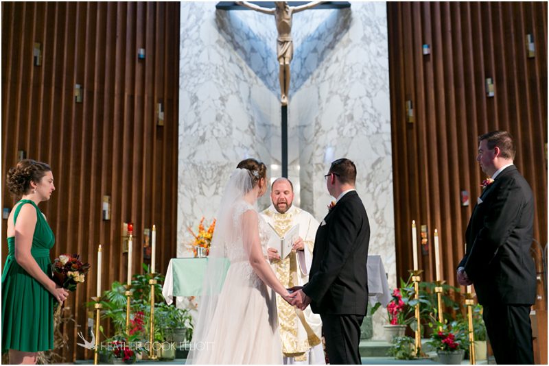Julie & Colin’s November wedding day was exactly what any Wisconsin fall wedding couple hopes for. It was crisp, but sunny, with colorful leaves still clinging to trees and the kind of atmosphere that makes one want to be outside enjoying a beverage with friends. Julie and Colin steeped themselves in the spirit of the day by making sure they stuck close to their neighborhood and favorite places, treating their bridal party to an afternoon at the (locally) world famous Leff’s and cuddling their beloved dog Norbie in the process. They married at the church they attend regularly just blocks from their house and invited Julie’s family priest to seal their vows. Julie kept an adventurous attitude all day and was willing to clamber riverside at Hoyt Park, a place they love to visit with Norbie on a regular day. At the reception she performed a west coast swing-inspired first dance with Colin, a dance style that Colin and his friends dearly enjoy and Julie is coming around to learning. Together they roused cheers from their guests and caused more than one standing ovation to happen throughout the night. It was a day when the ordinary turned extra-ordinary just because two people found each other and said Yes.