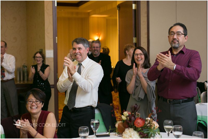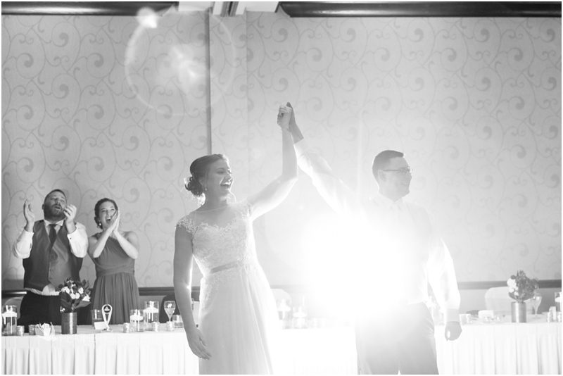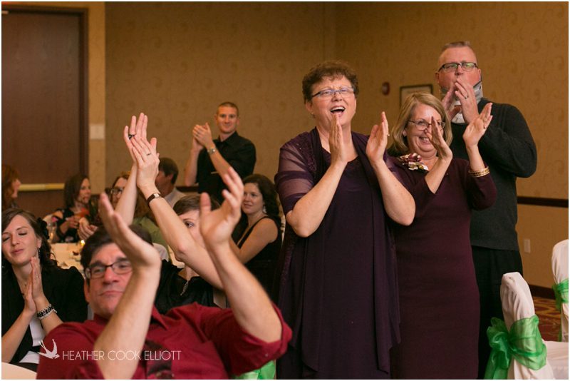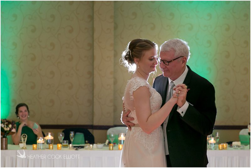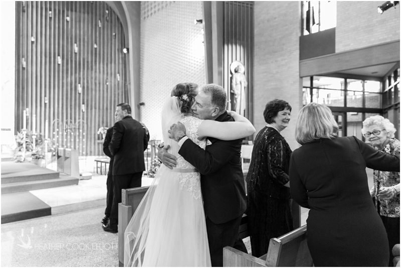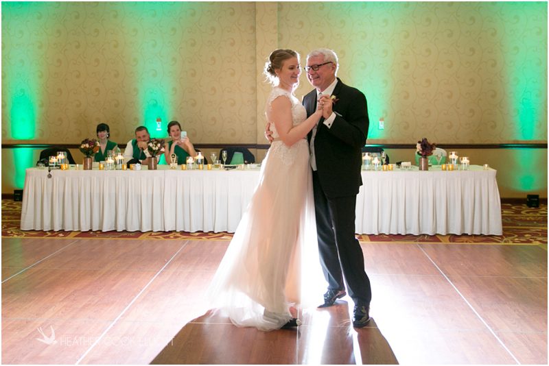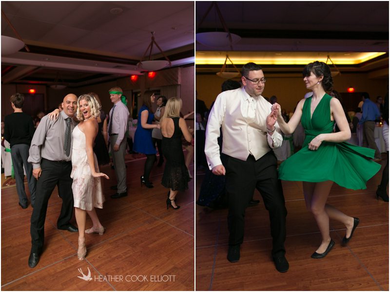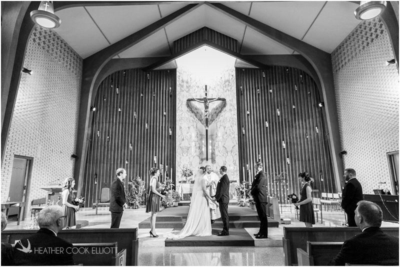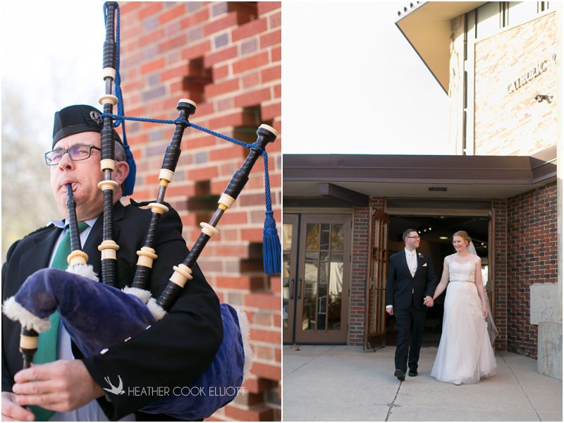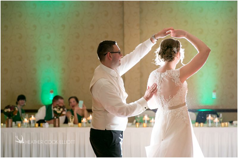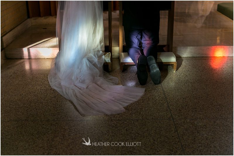 Julie & Colin’s November wedding day was exactly what any Wisconsin fall wedding couple hopes for. It was crisp, but sunny, with colorful leaves still clinging to trees and the kind of atmosphere that makes one want to be outside enjoying a beverage with friends. Julie and Colin steeped themselves in the spirit of the day by making sure they stuck close to their neighborhood and favorite places, treating their bridal party to an afternoon at the (locally) world famous Leff’s and cuddling their beloved dog Norbie in the process. They married at the church they attend regularly just blocks from their house and invited Julie’s family priest to seal their vows. Julie kept an adventurous attitude all day and was willing to clamber riverside at Hoyt Park, a place they love to visit with Norbie on a regular day. At the reception she performed a west coast swing-inspired first dance with Colin, a dance style that Colin and his friends dearly enjoy and Julie is coming around to learning. Together they roused cheers from their guests and caused more than one standing ovation to happen throughout the night. It was a day when the ordinary turned extra-ordinary just because two people found each other and said Yes.