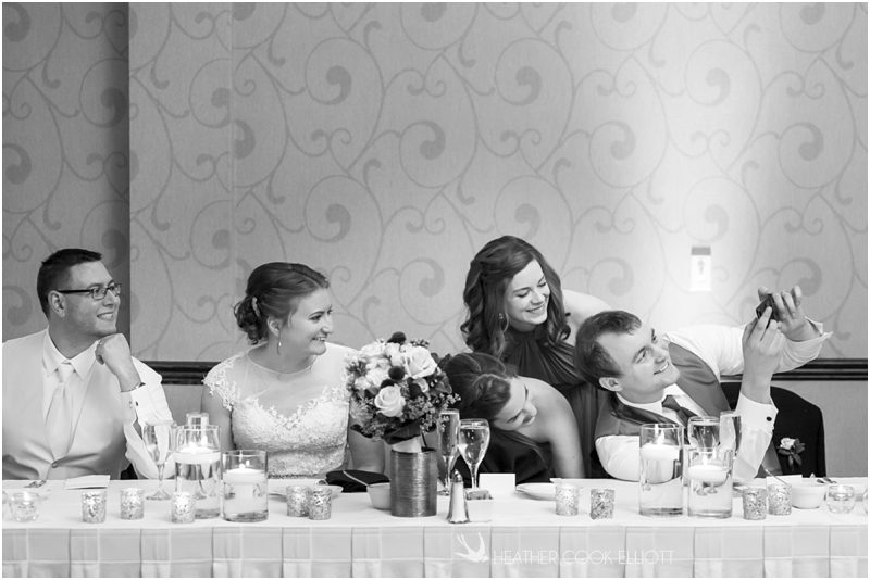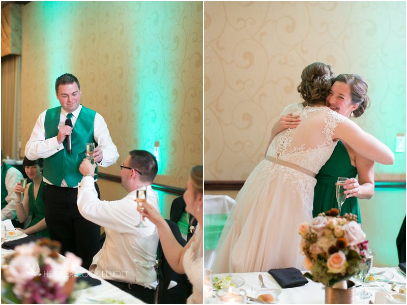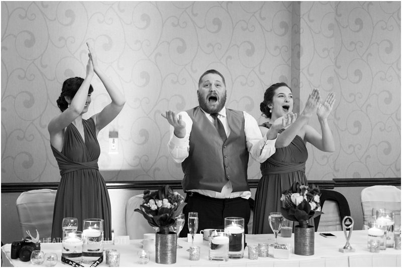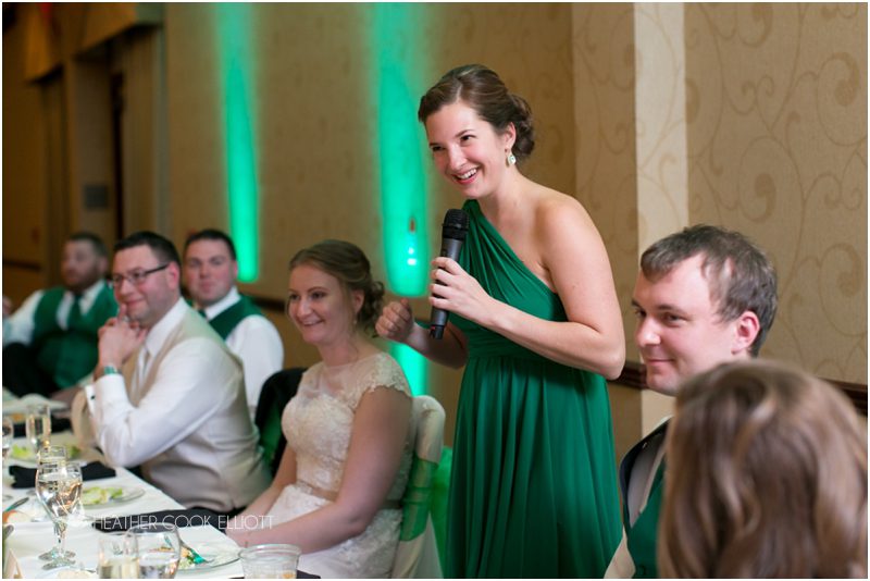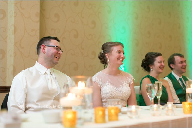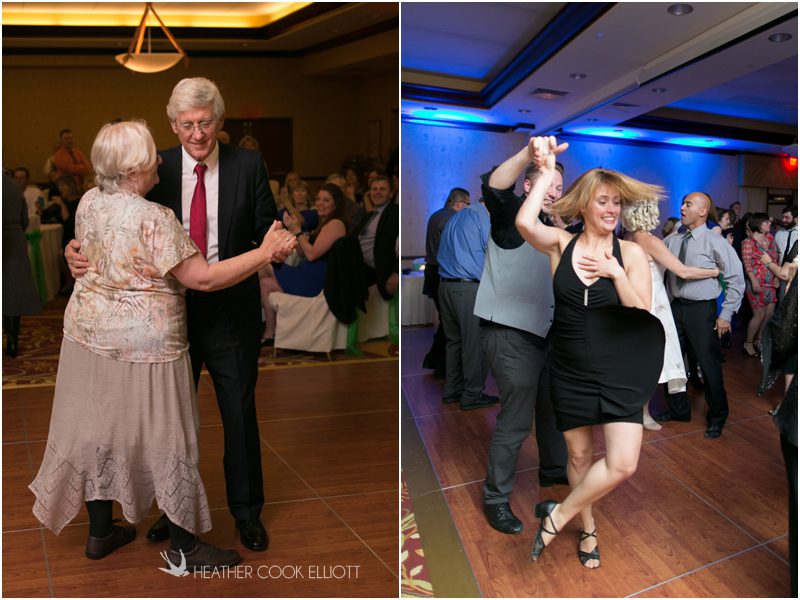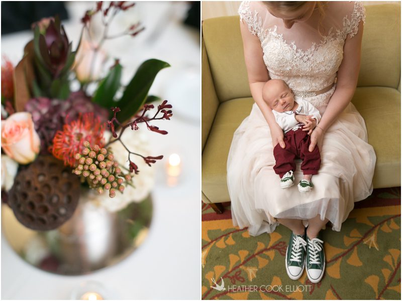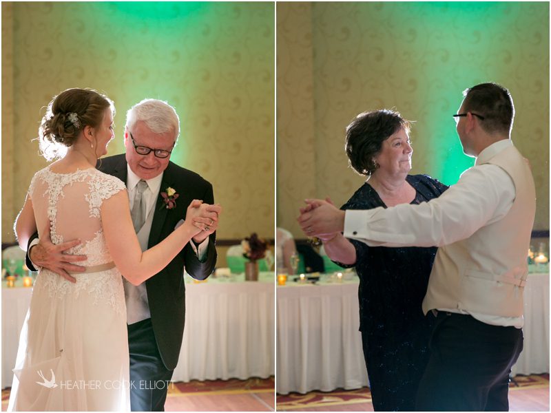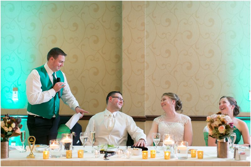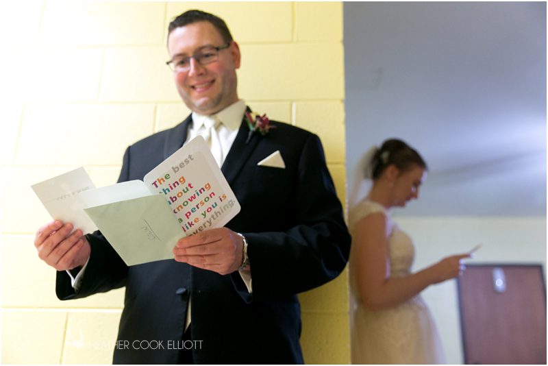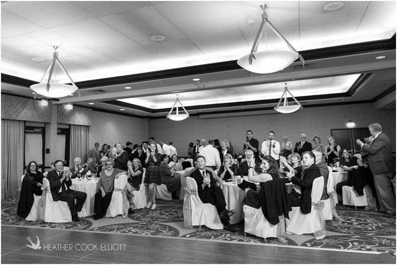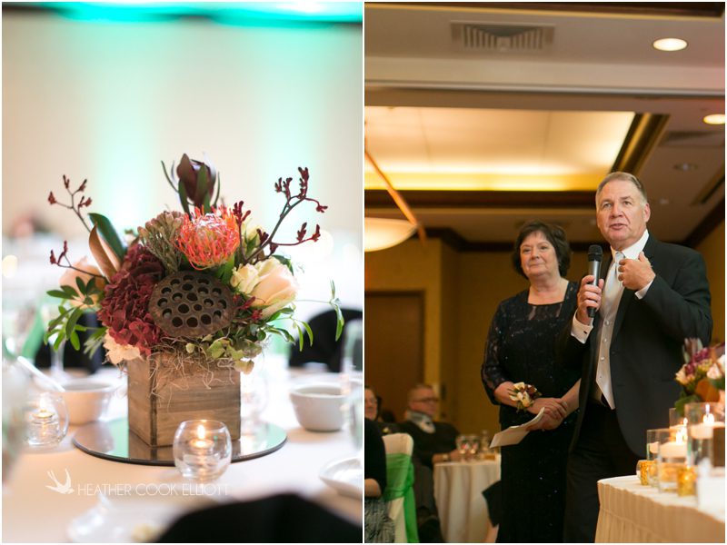 Julie & Colin’s November wedding day was exactly what any Wisconsin fall wedding couple hopes for. It was crisp, but sunny, with colorful leaves still clinging to trees and the kind of atmosphere that makes one want to be outside enjoying a beverage with friends. Julie and Colin steeped themselves in the spirit of the day by making sure they stuck close to their neighborhood and favorite places, treating their bridal party to an afternoon at the (locally) world famous Leff’s and cuddling their beloved dog Norbie in the process. They married at the church they attend regularly just blocks from their house and invited Julie’s family priest to seal their vows. Julie kept an adventurous attitude all day and was willing to clamber riverside at Hoyt Park, a place they love to visit with Norbie on a regular day. At the reception she performed a west coast swing-inspired first dance with Colin, a dance style that Colin and his friends dearly enjoy and Julie is coming around to learning. Together they roused cheers from their guests and caused more than one standing ovation to happen throughout the night. It was a day when the ordinary turned extra-ordinary just because two people found each other and said Yes.
