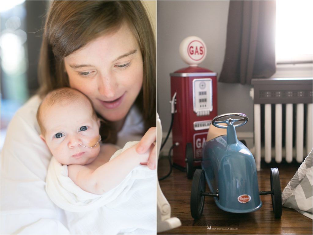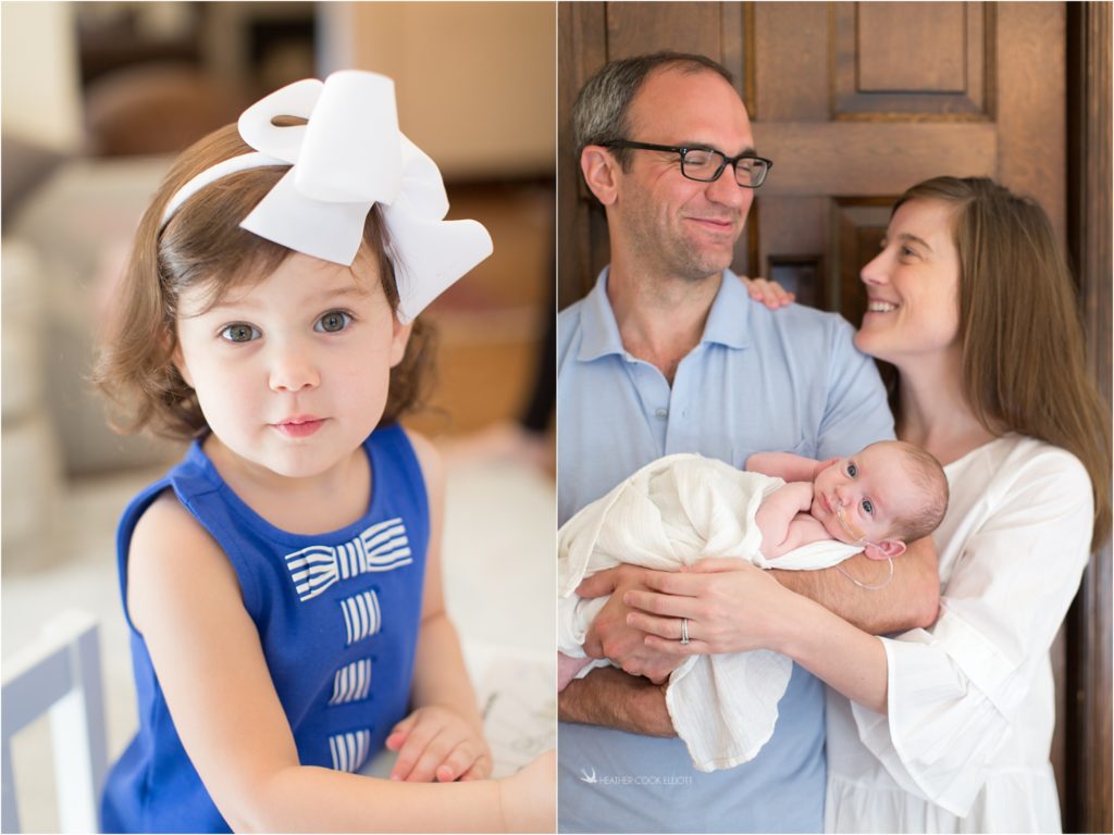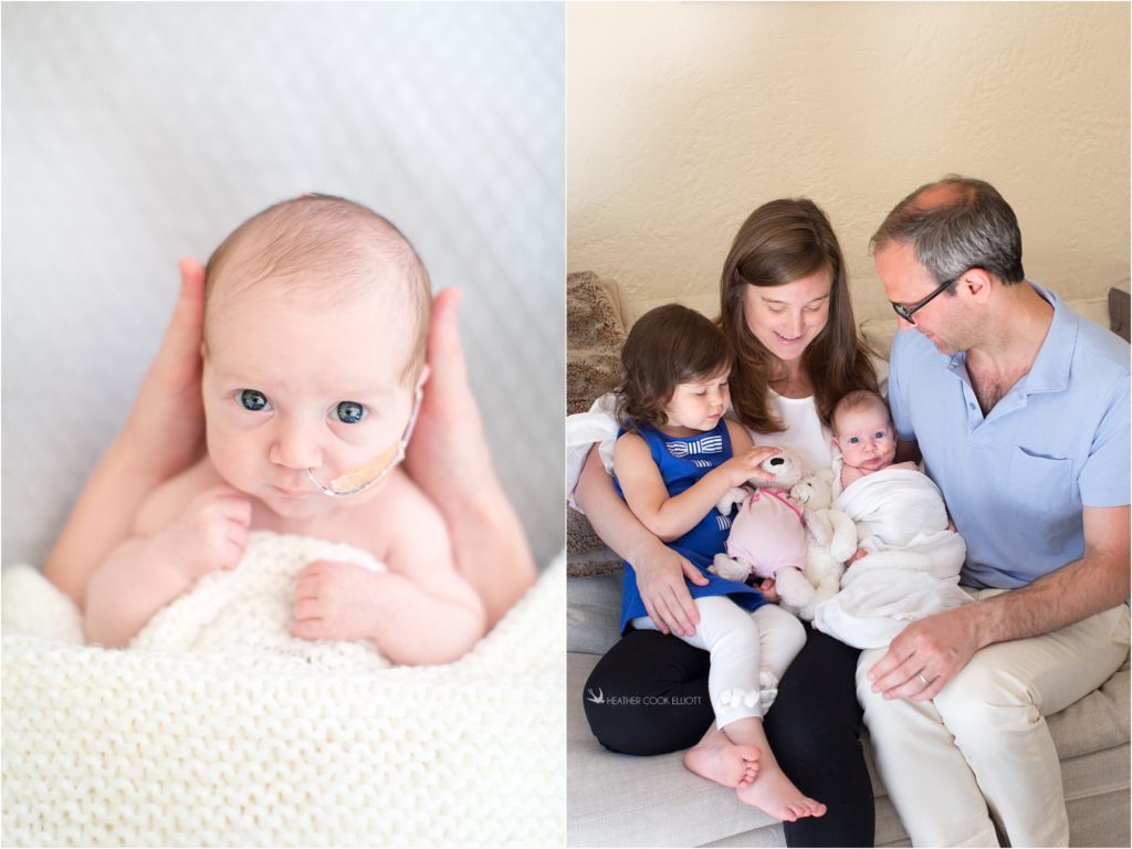 As I approach my 12th (!) year of documenting weddings, babies and families I hold a special place in my heart and life for families that I’ve “been with” from the beginning. This family is one of those that I first met during an engagement session and I’ve been honored to be invited back time and again as their lives have grown fuller, first in marriage, and then with baby Charlotte who became toddler Charlotte, and now with Baby Oliver. Oliver Dominic is already known around these parts as a fighter. When he was in utero his parents found out that he would be born without his abdomen fully closed – that he would need extra help to make it, a surgery or two and that they would have to wait and see how hard or how manageable it was going to be. Fast forward to now and I can gleefully report that this tiny boy with big challenges is catching every curveball thrown his way and is on track to grow up remarkably barrier-free. Despite a feeding tube and partial body cast about his midsection Oliver is, by all reports and in my observation, a very chill little guy. He somehow already seems smart and his big eyes look deeply at the beautiful, playful world around him that includes big sister Charlotte and her beloved mouse stuffed animal. “Mouse” even brought a friend home for Oliver and I imagine before too long Charlotte will spend many hours teaching Oliver how to care for his very own Mouse and that together they will make their mark on the world.