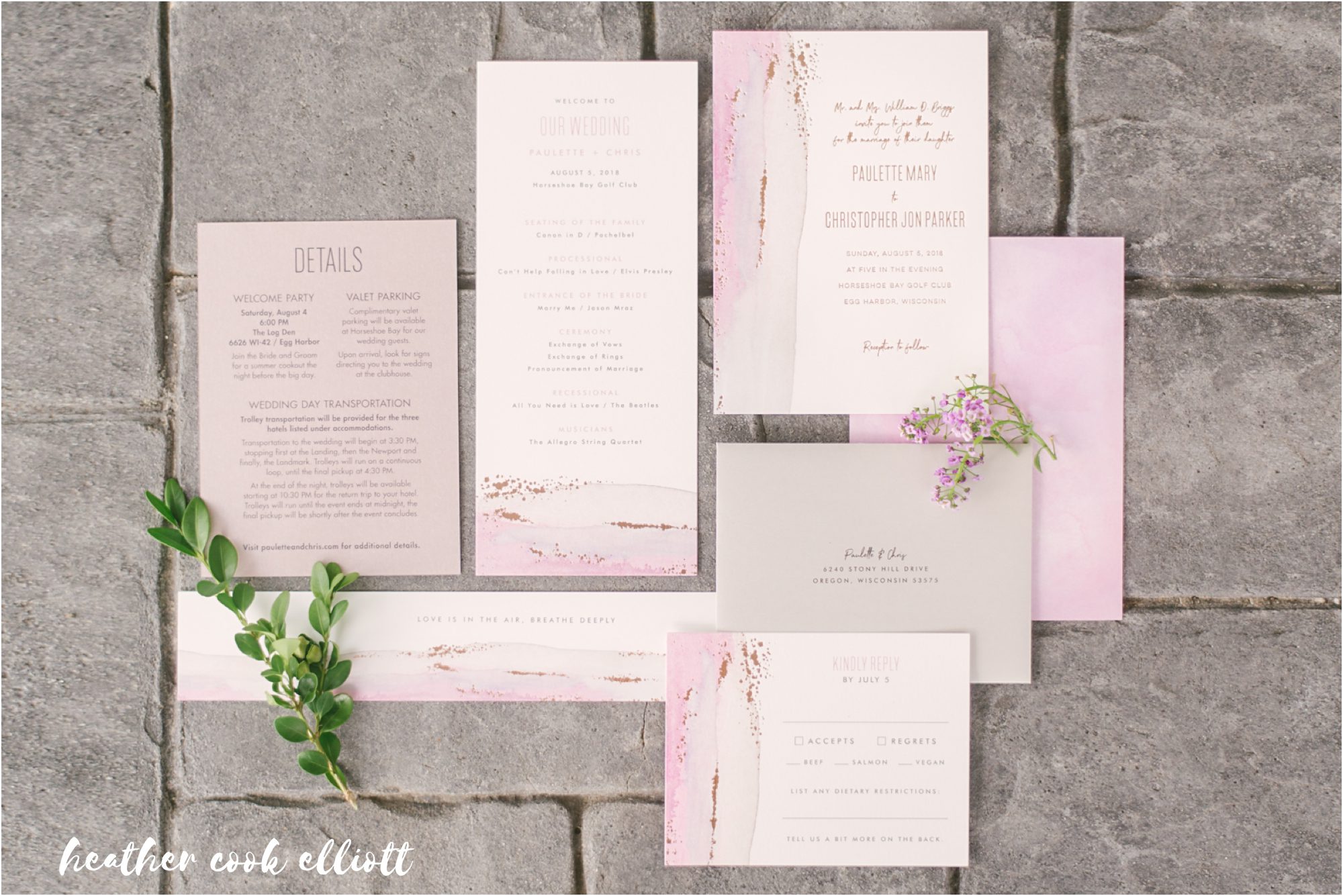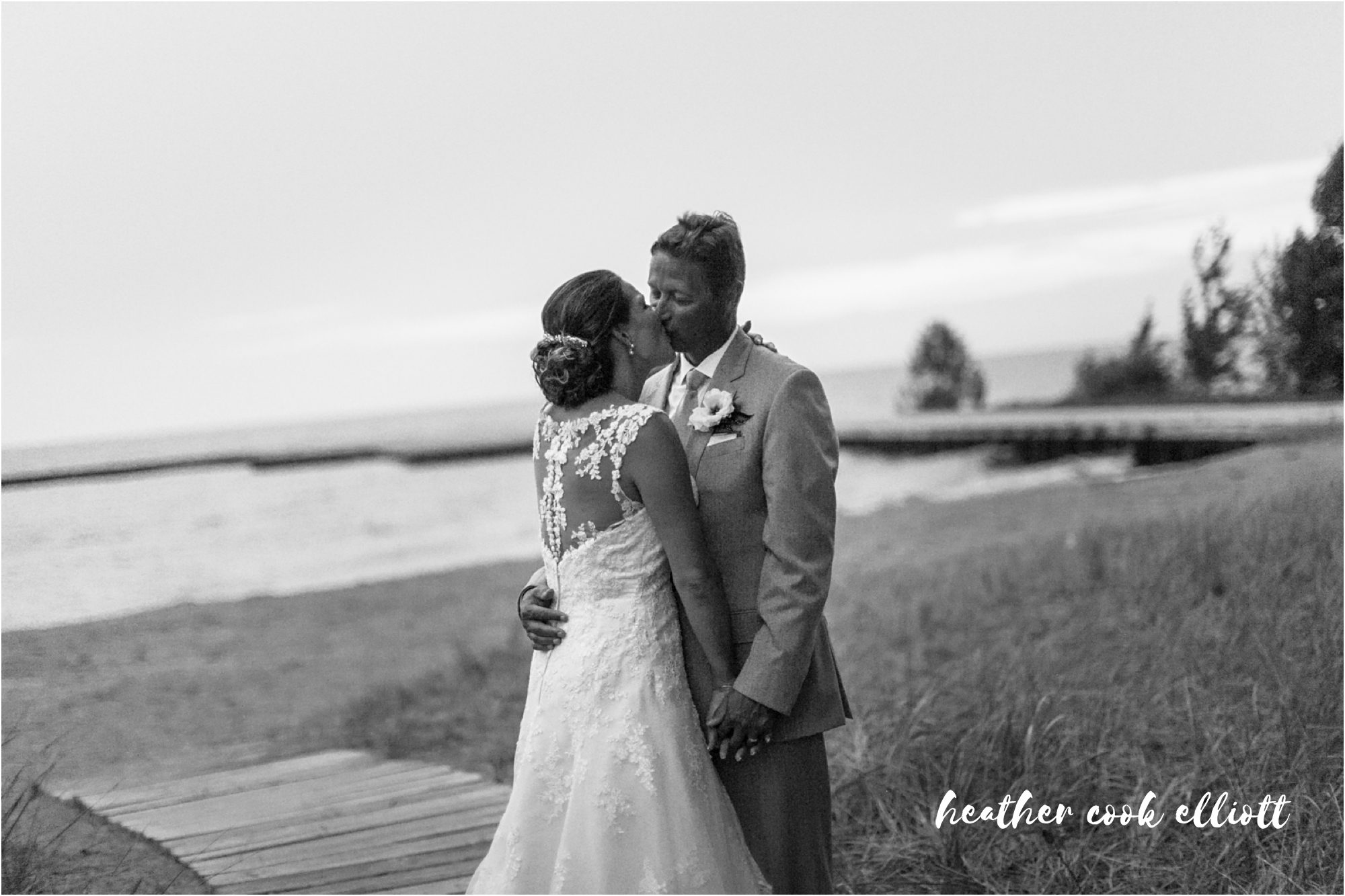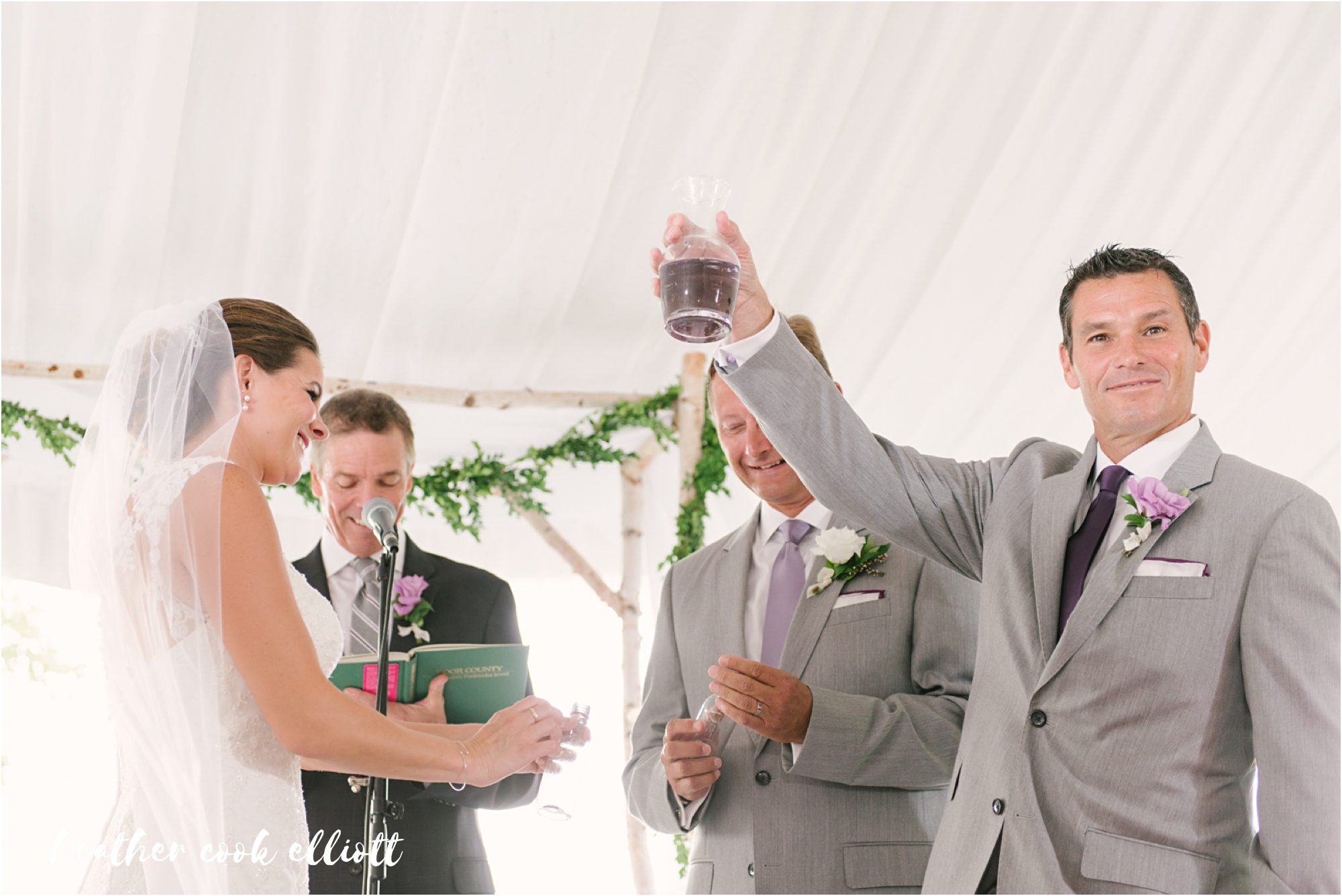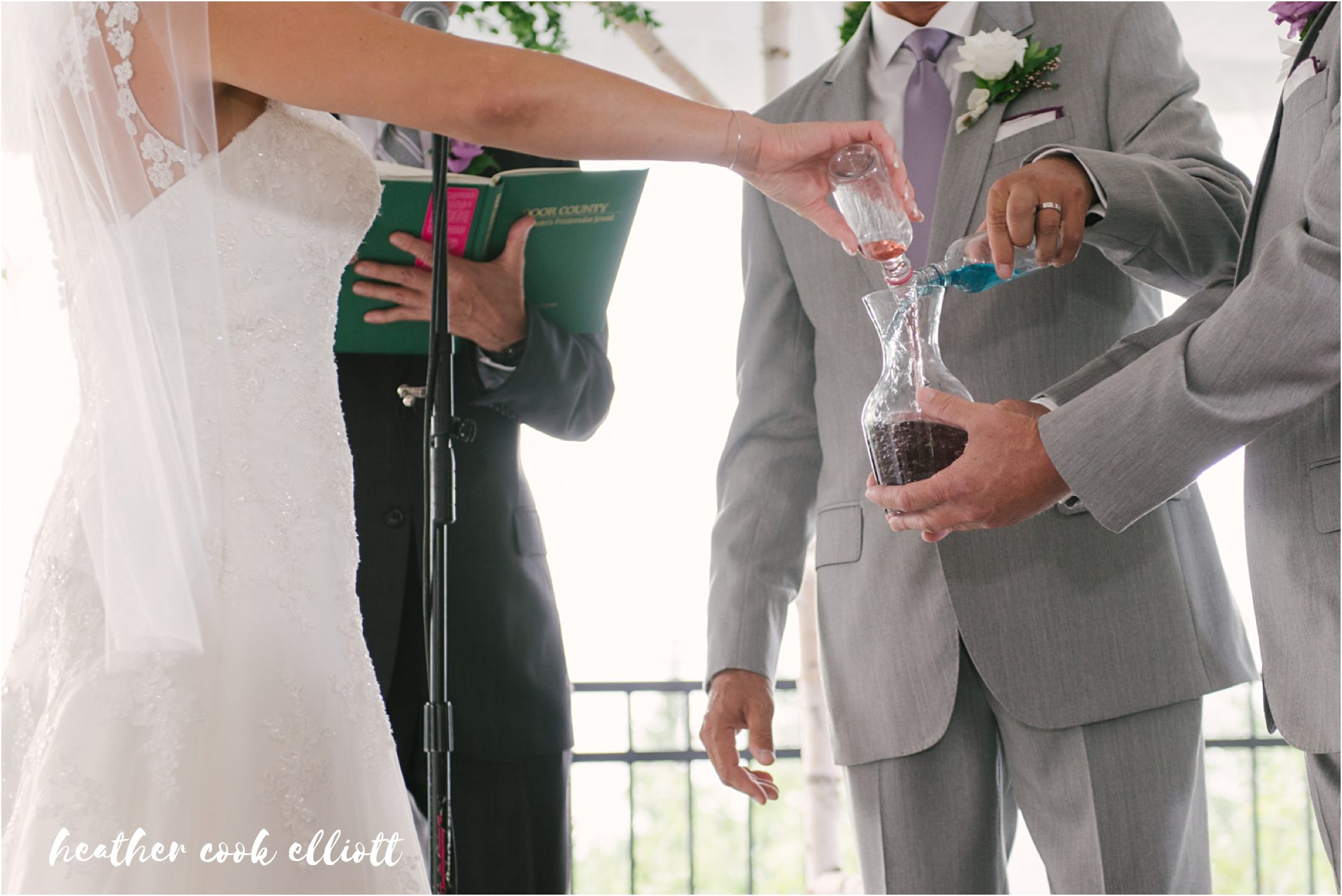 Paulette and Chris have amazing, sweet, on fire chemistry. He is kind and deferential to her, but challenges and supports her drive and passions. He’s the kind of guy during wedding planning who said the phrase “whatever she wants” a lot – and meant it. And all because her happiness is part of what defines him these days. And for all of that and more, Paulette adores Chris right back. Her face literally lights up when she looks at him and she loves his family. And that is really what life is all about for both of them – family and connections and time well spent in the company of those they love. Their wedding day was reflective of this, too, a mini-destination weekend in Door County where they treated their friends and family to a great band, a heartfelt ceremony and sweet details personalized to them like a custom basketball sign in book and test tube & beaker centerpieces which was a stylish and sweet interpretation of their mutual careers as scientists. So today I offer this fun summer toast to love and laughter – a wedding day so sweet and real, lovely and endearing that you’ll have a smile on your face all day. Cheers to Paulette & Chris!