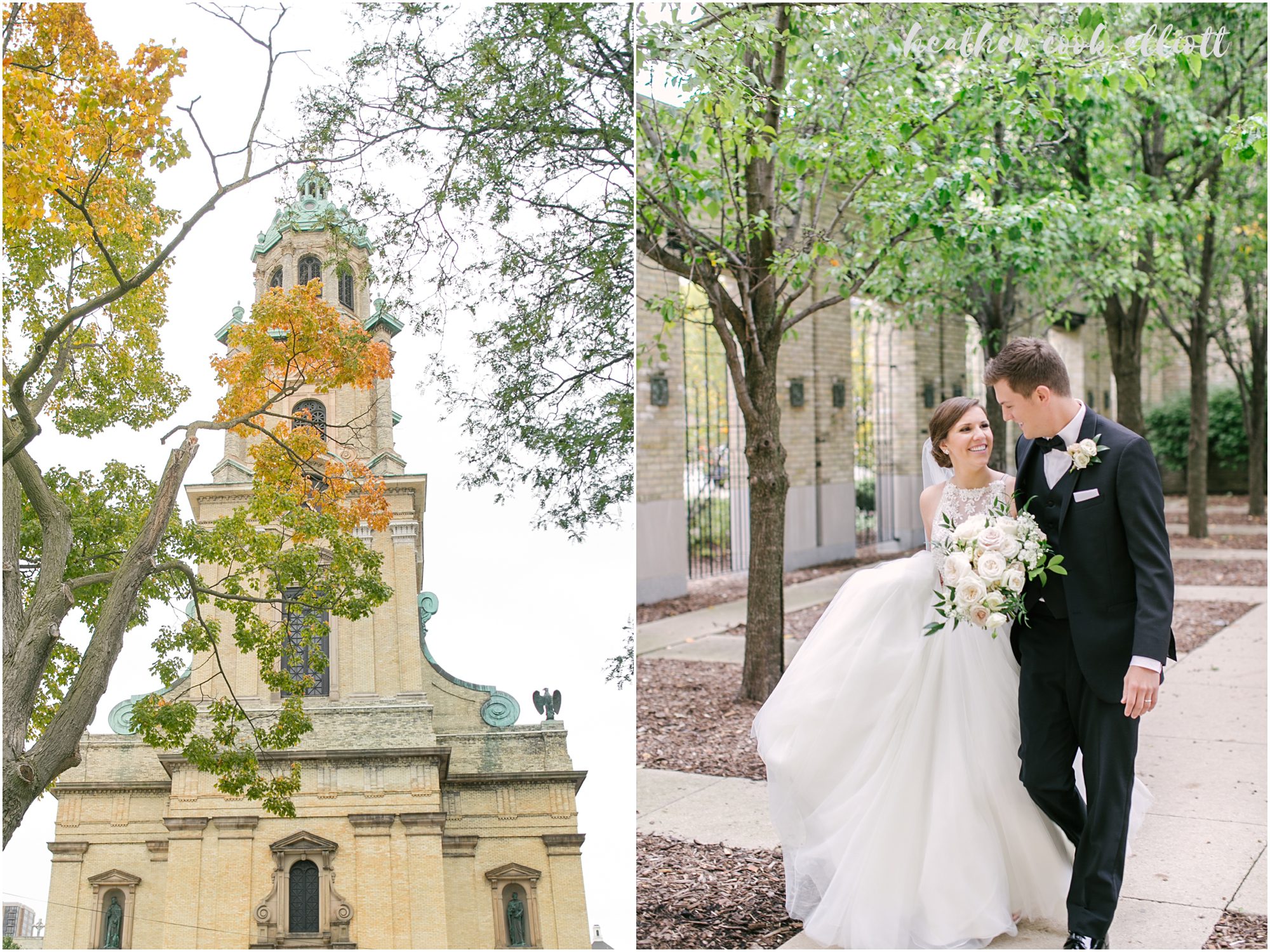 For a wedding photographer weekends are for other people’s families. For seeing – really seeing – how love blessed by parents and friends and the church comes to make a family. So you see, for us a Saturday with other people’s families is really an exercise in finding meaning in the world and my goodness, did we find it at Gabrielle and Bob’s exquisite October wedding. Their love story starts with a study abroad trip to Italy and winds through his home state of Minnesota and her Wisconsin, and through every new chapter they’ve had the support of some very impressive role models: their parents. Their wedding day was no exception – from Gabrielle’s mom helping with the tiny details on the back of her amazing dress to Bob’s dad helping him tie his tie just perfectly. From witnessing their first look, to walking down the aisle and all night through toasts, and dancing, their parents looked on – encouraging, proud, and really, in love with the devotion they witnessed between Gabrielle & Bob. And so, if you need a little pick me up, a little evidence that love is alive and well and marriage is worth it, look no further than this set of beautiful images of the most lovely couple on the happiest of days. Cheers to Gabrielle & Bob!