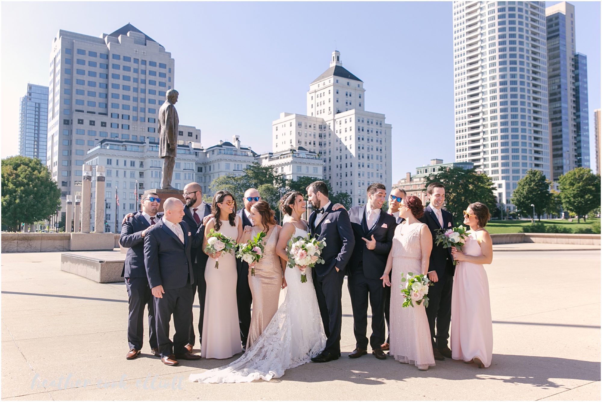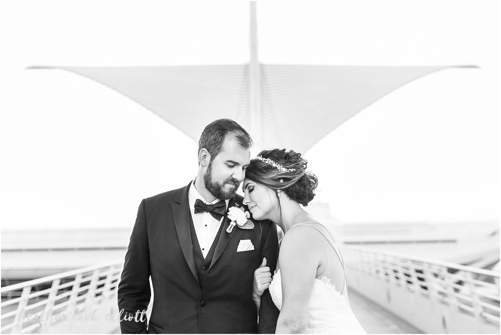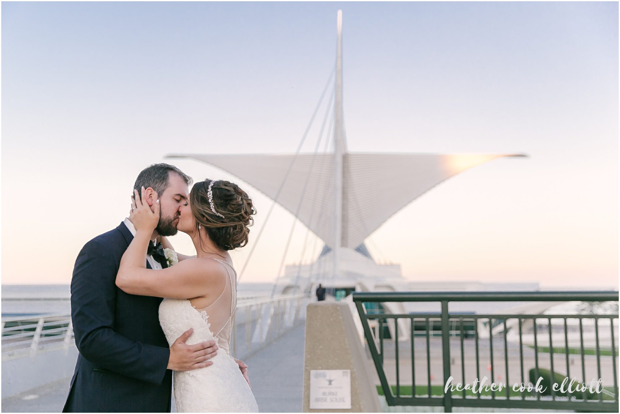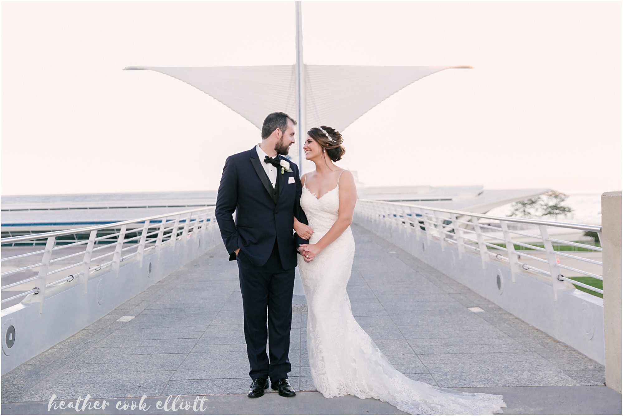 Laura & Dan had a wedding filled with friendship and family and when I write filled with I mean to the brim. And I think that’s because Laura & Dan as individuals are easy to like and as a couple they are a light shining on everyone around them. Open hearted and quick to laugh, they love to share a craft brew with friends and to show off their beloved city of Milwaukee. So it made total sense that they chose to exchange their vows on the water’s edge, nestled between the soaring wings of the Art Museum and our city’s eastern most buildings, keeping the celebrations going into the night overlooking the lake. We loved how they made sure their moms and dads felt important and central to their day, how they made time for friends and fun between getting ready and the ceremony, how they looked deeply into one another’s eyes and really felt the significance of every moment. Their rose petal bar at the ceremony framed it best, I think: Laura & Dan value many things, but perhaps most of all they hope their lives will be filled with joy, love, adventure and wisdom and every single soul at their wedding has the same hopes for them. With the kind of family and friends Laura & Dan are holding close by them I think they’ll have all of those blessings – in abundance.