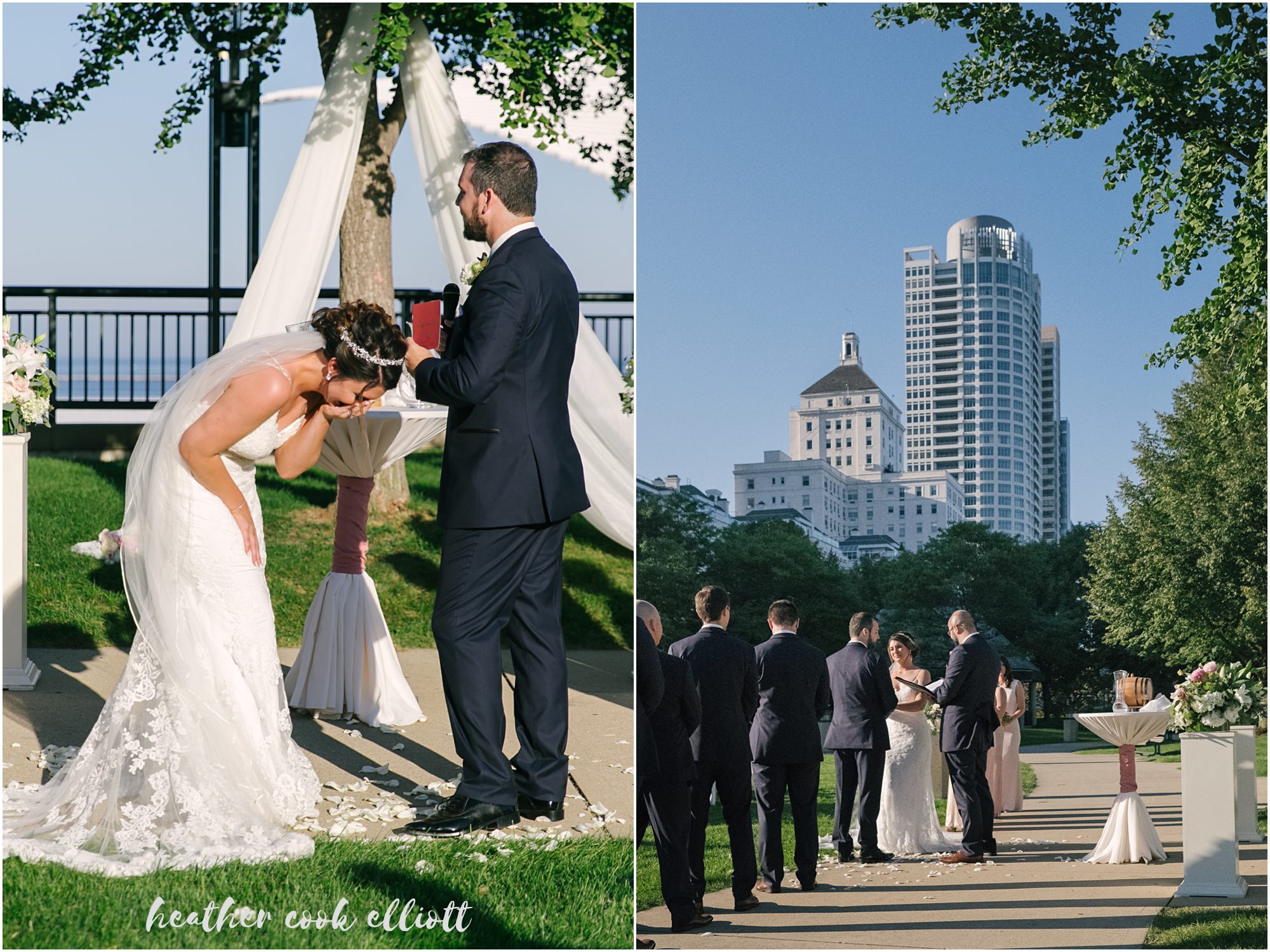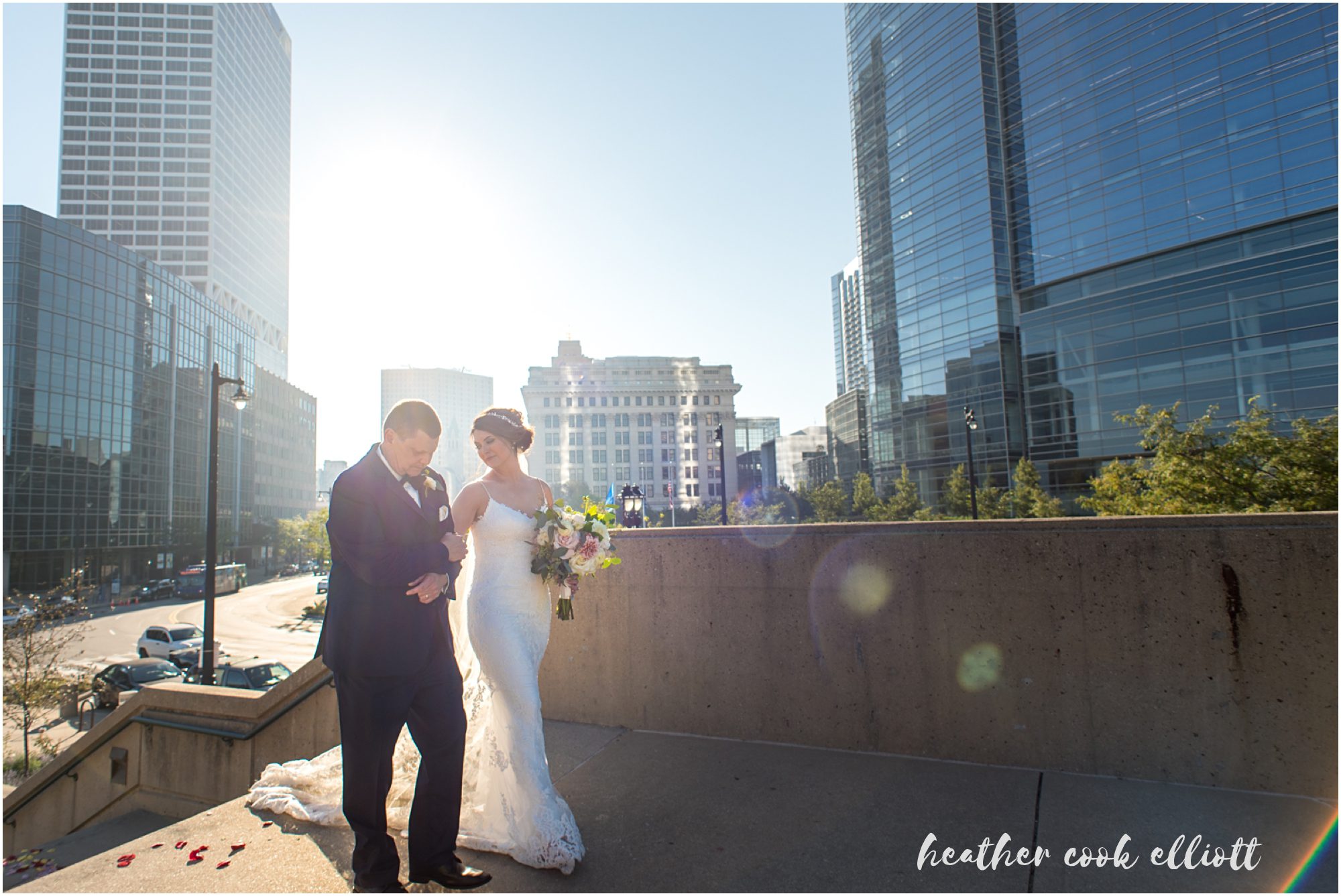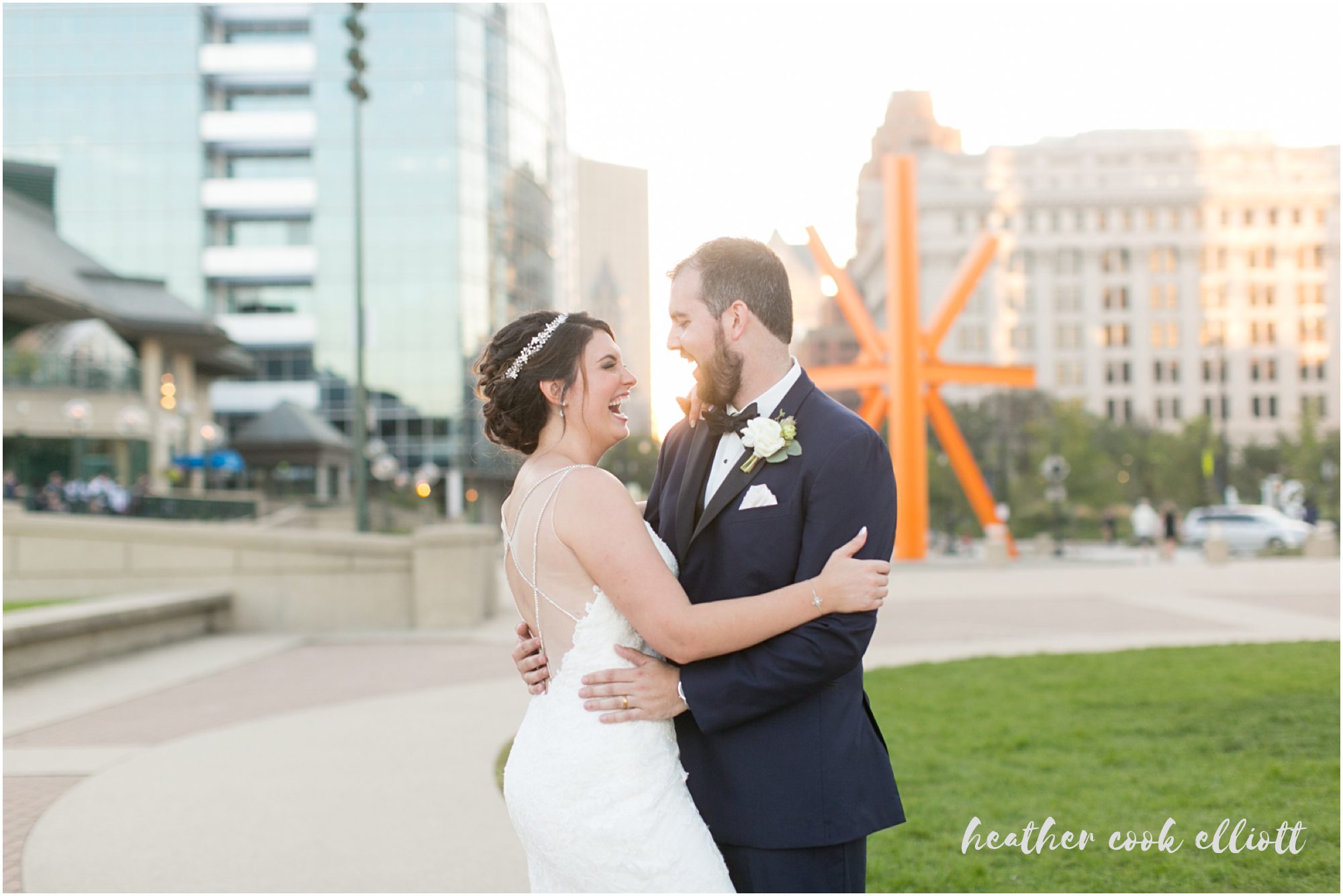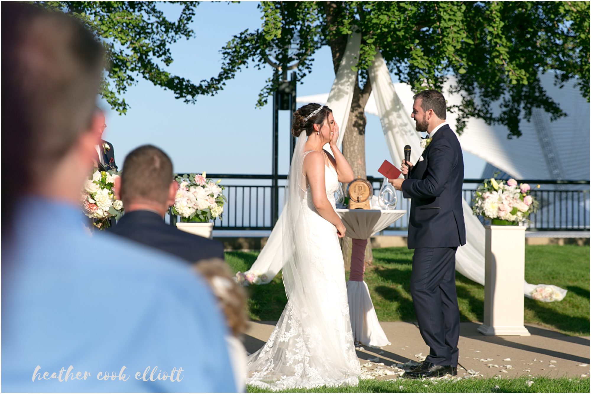 Laura & Dan had a wedding filled with friendship and family and when I write filled with I mean to the brim. And I think that’s because Laura & Dan as individuals are easy to like and as a couple they are a light shining on everyone around them. Open hearted and quick to laugh, they love to share a craft brew with friends and to show off their beloved city of Milwaukee. So it made total sense that they chose to exchange their vows on the water’s edge, nestled between the soaring wings of the Art Museum and our city’s eastern most buildings, keeping the celebrations going into the night overlooking the lake. We loved how they made sure their moms and dads felt important and central to their day, how they made time for friends and fun between getting ready and the ceremony, how they looked deeply into one another’s eyes and really felt the significance of every moment. Their rose petal bar at the ceremony framed it best, I think: Laura & Dan value many things, but perhaps most of all they hope their lives will be filled with joy, love, adventure and wisdom and every single soul at their wedding has the same hopes for them. With the kind of family and friends Laura & Dan are holding close by them I think they’ll have all of those blessings – in abundance.