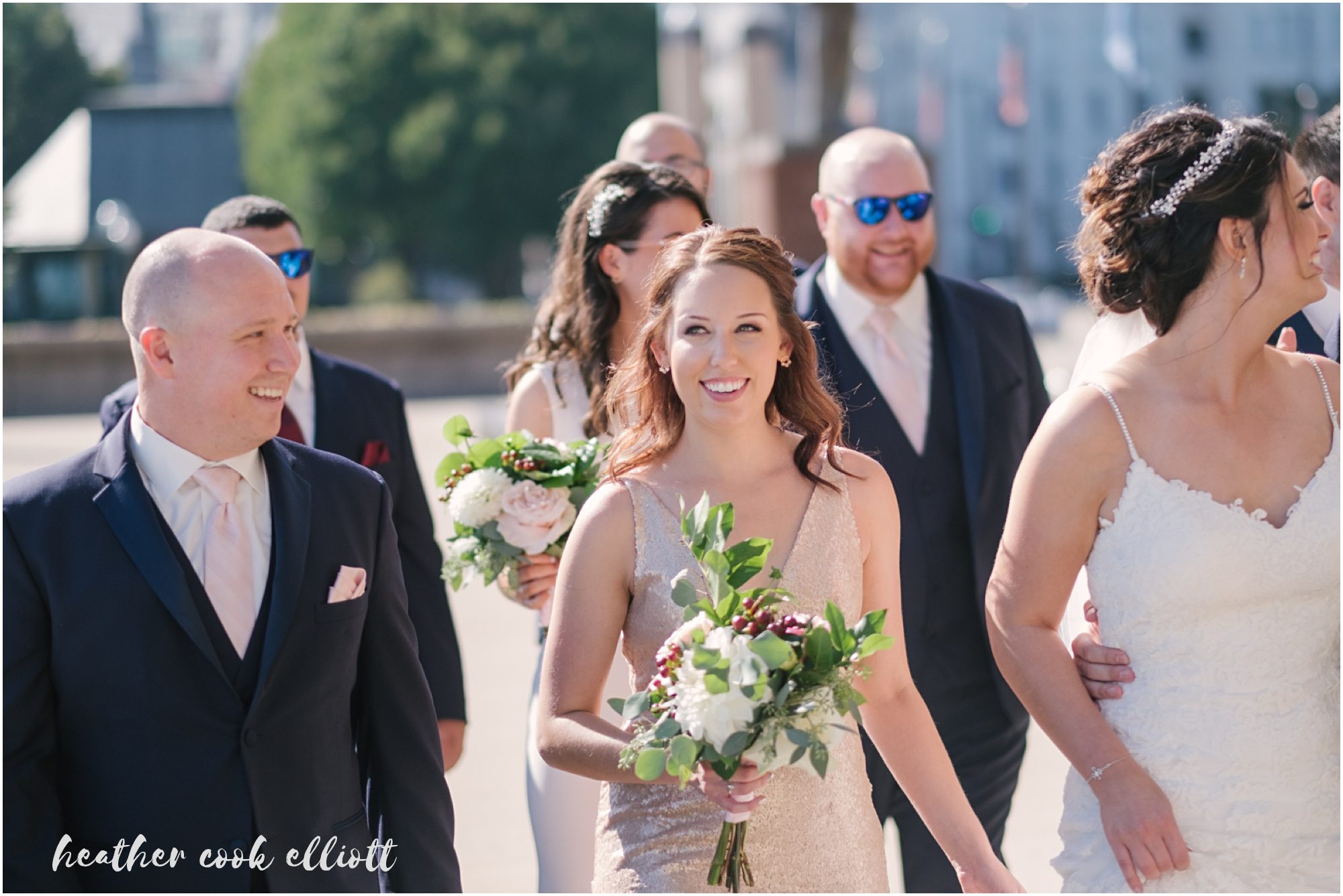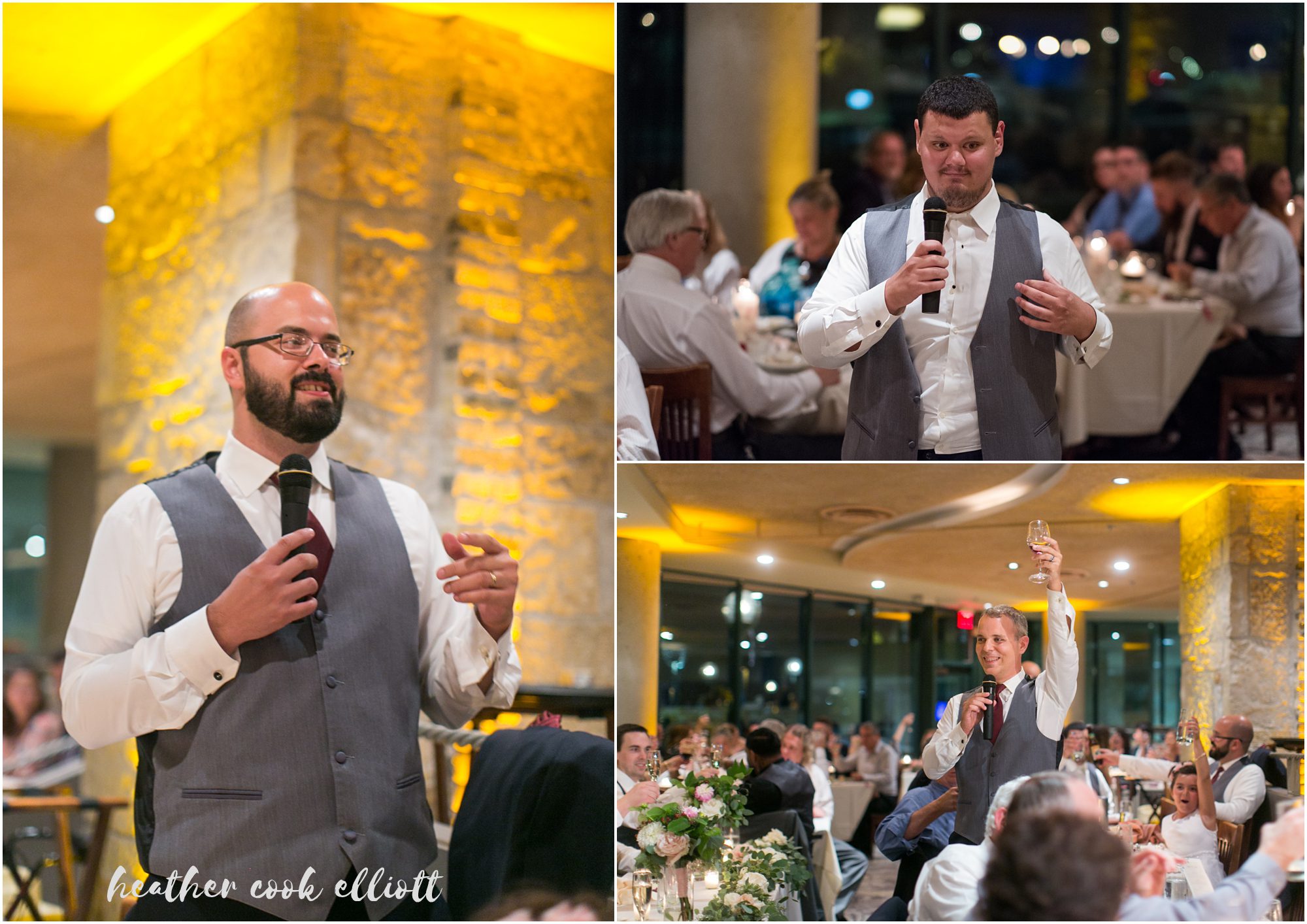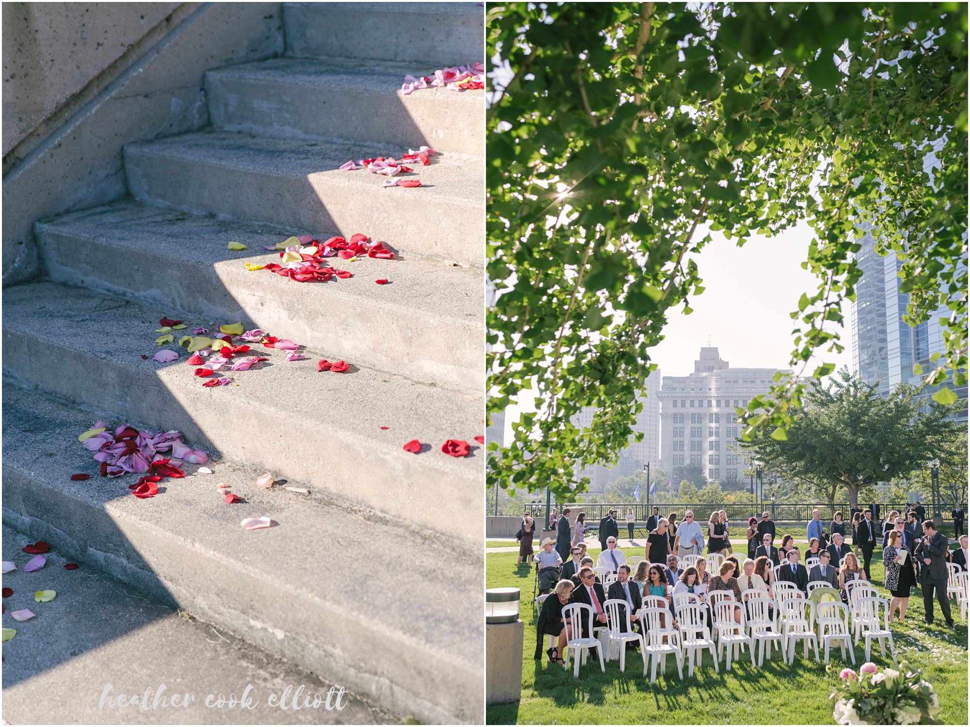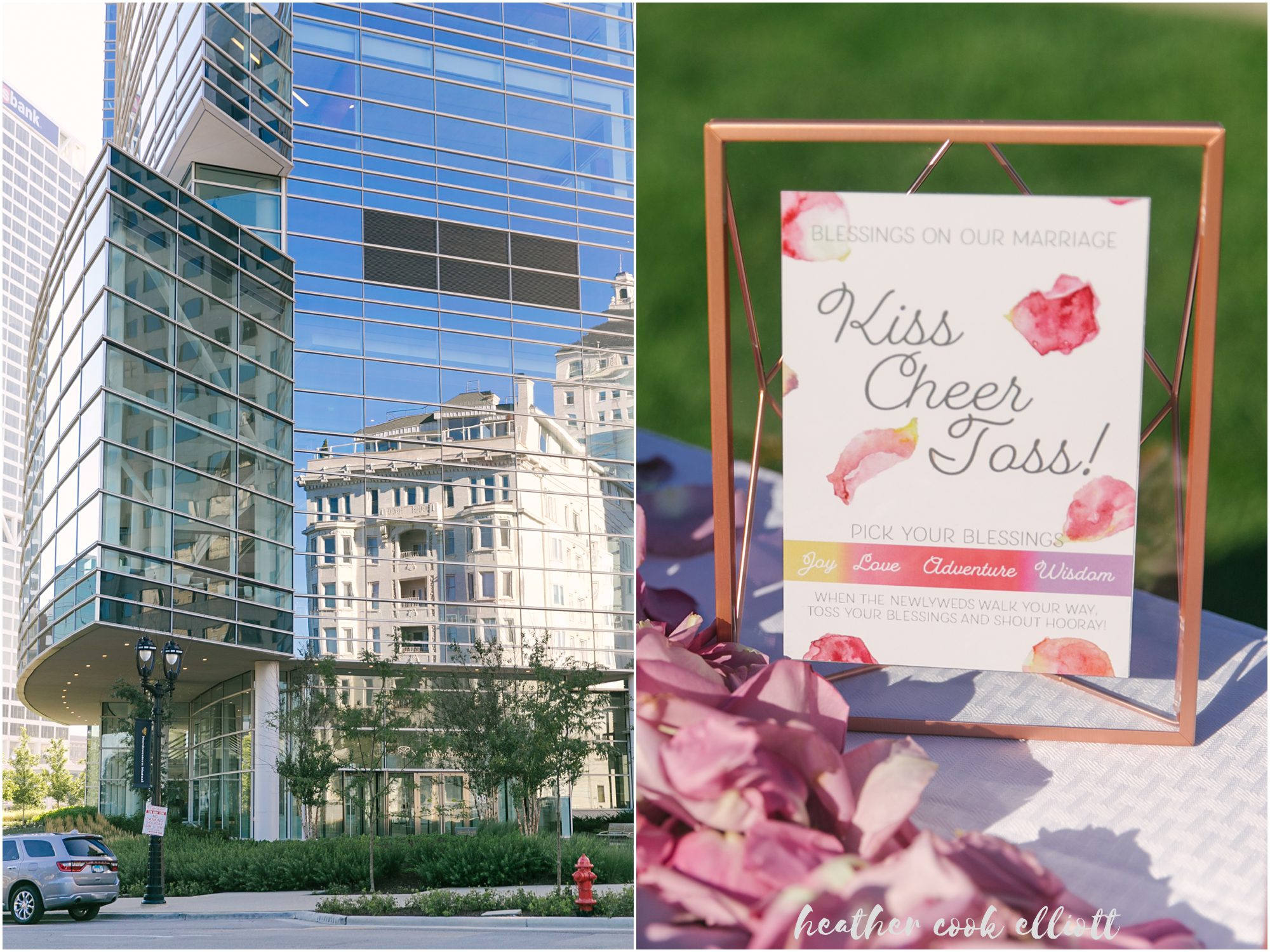 Laura & Dan had a wedding filled with friendship and family and when I write filled with I mean to the brim. And I think that’s because Laura & Dan as individuals are easy to like and as a couple they are a light shining on everyone around them. Open hearted and quick to laugh, they love to share a craft brew with friends and to show off their beloved city of Milwaukee. So it made total sense that they chose to exchange their vows on the water’s edge, nestled between the soaring wings of the Art Museum and our city’s eastern most buildings, keeping the celebrations going into the night overlooking the lake. We loved how they made sure their moms and dads felt important and central to their day, how they made time for friends and fun between getting ready and the ceremony, how they looked deeply into one another’s eyes and really felt the significance of every moment. Their rose petal bar at the ceremony framed it best, I think: Laura & Dan value many things, but perhaps most of all they hope their lives will be filled with joy, love, adventure and wisdom and every single soul at their wedding has the same hopes for them. With the kind of family and friends Laura & Dan are holding close by them I think they’ll have all of those blessings – in abundance.