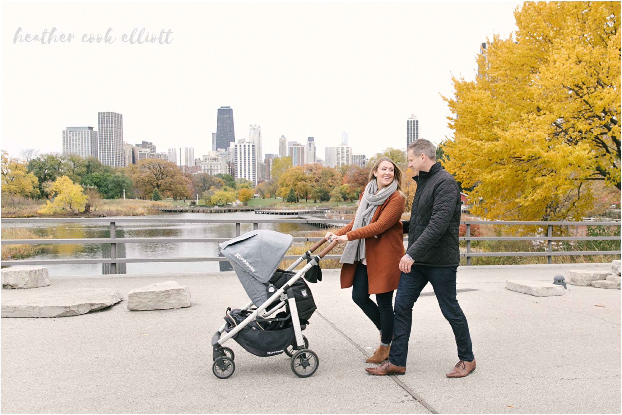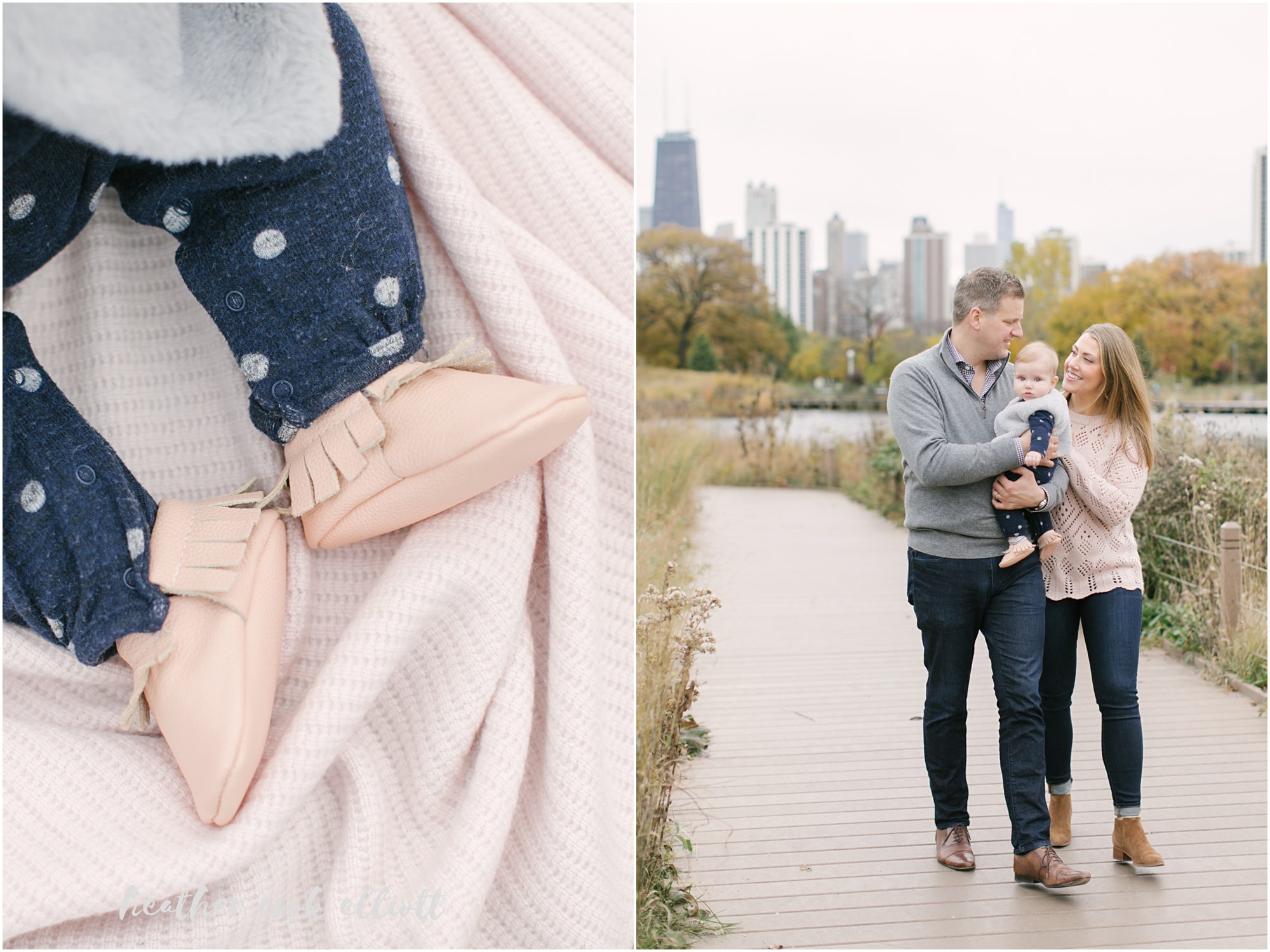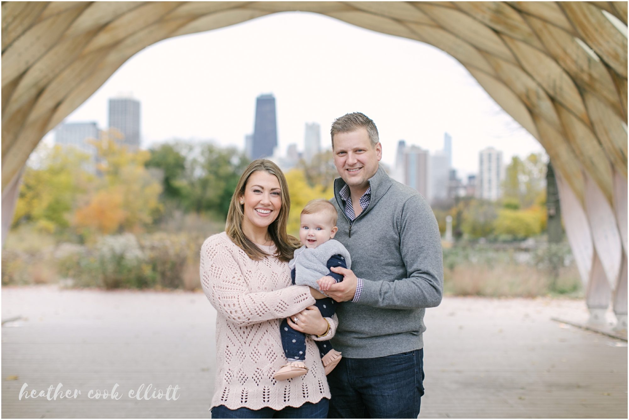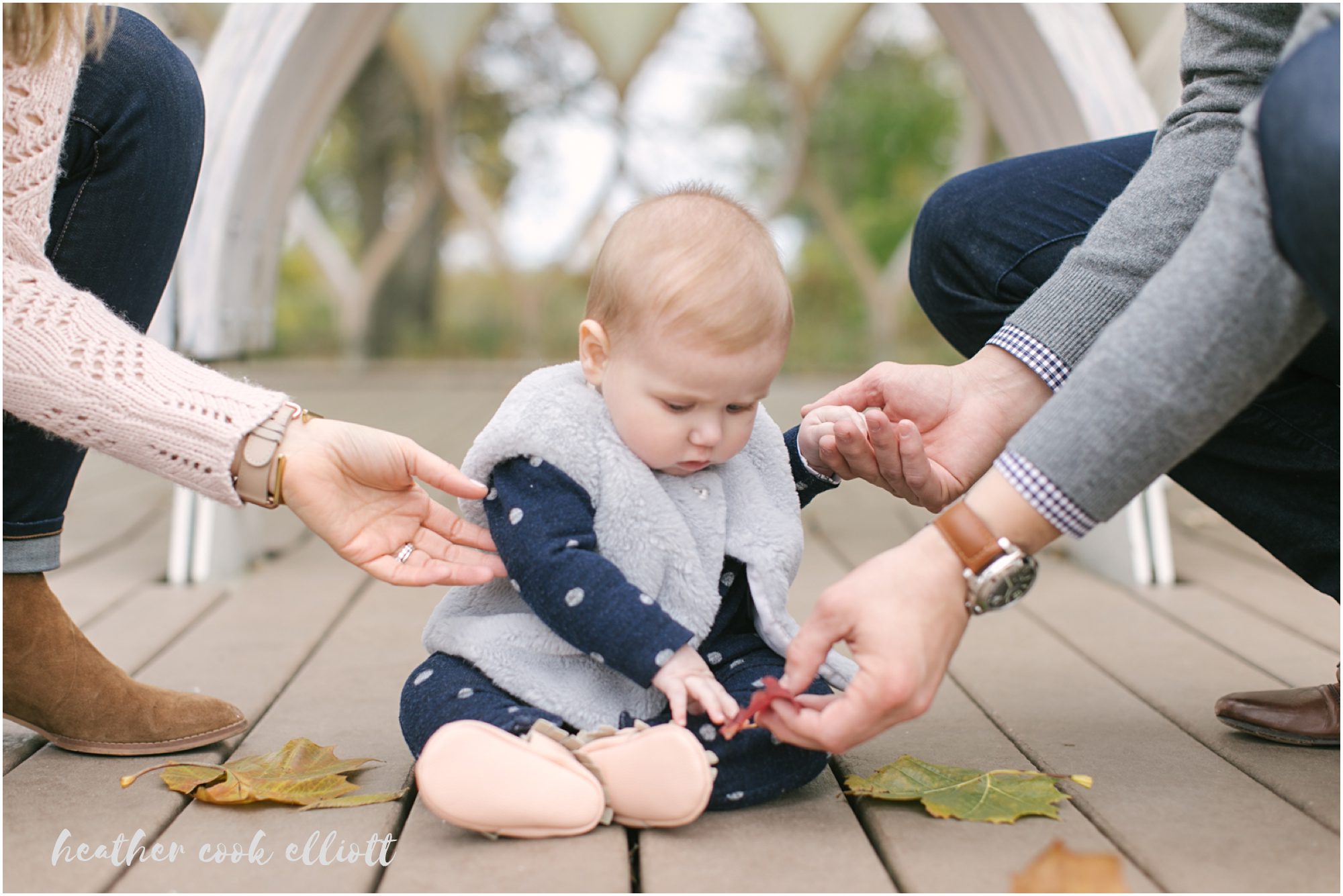 The last time I met little Brooke she was a newborn babe, all soft skin and sleepy eyes. Now, six months later she’s still in possession of that cashmere-soft skin, but her eyes are as bright, blue and inquisitive as can be. On a crisp fall day in Chicago’s Lincoln Park she showed them off for me, along with her delightful smile. We meandered along the sentimental paths that Chicagoans love, reminiscing about the time her dad asked her mom to marry him in this very park. And so: Brooke discovered leaves for the first time and the city & Jean Gang’s pavilion played the parts of perfect photography backgrounds. Mom & Dad told their engagement story and cuddled their sweet baby girl. And all the while all I could think was well isn’t this the most perfect morning in Chicago with the most lovely little family?