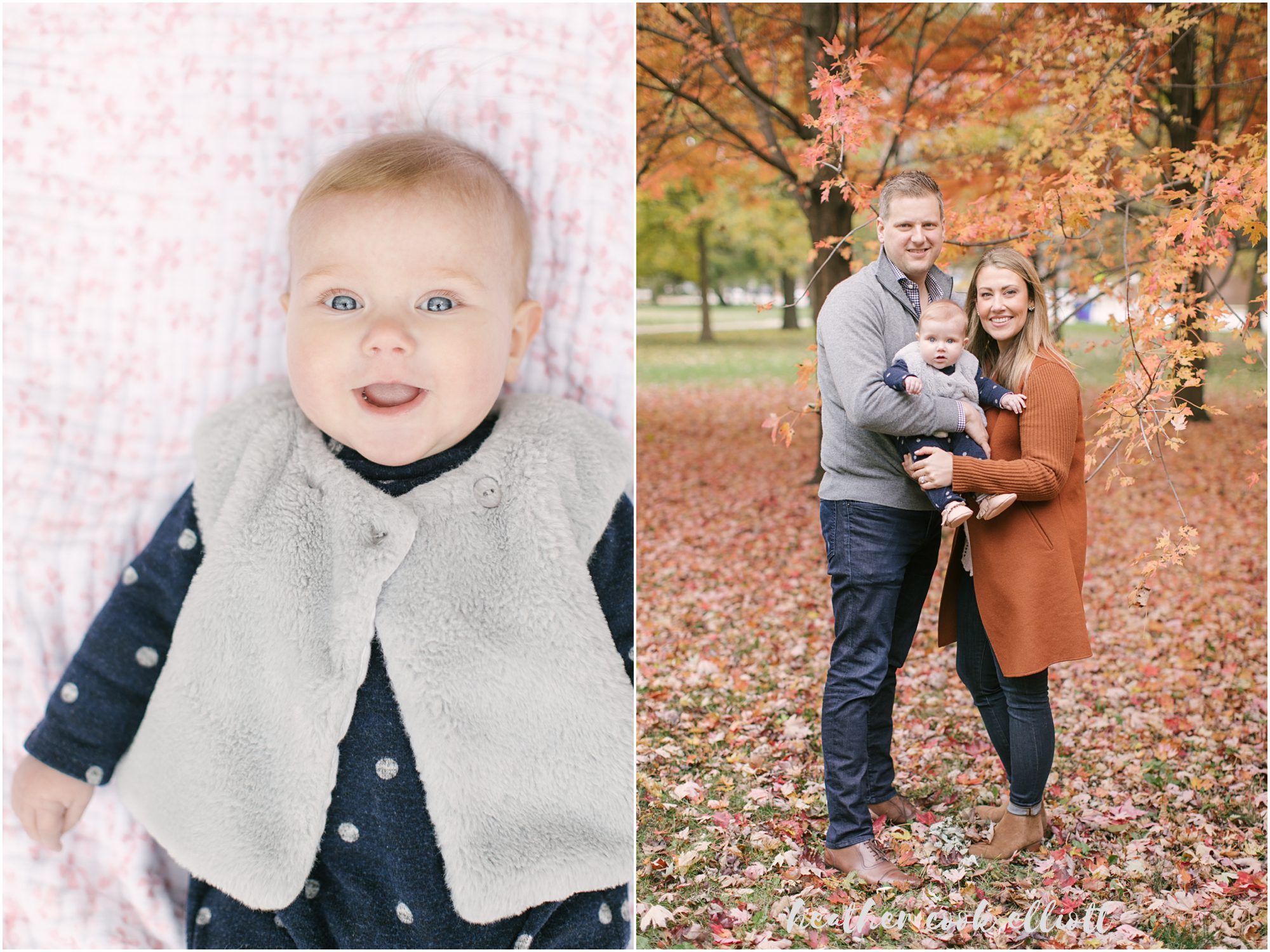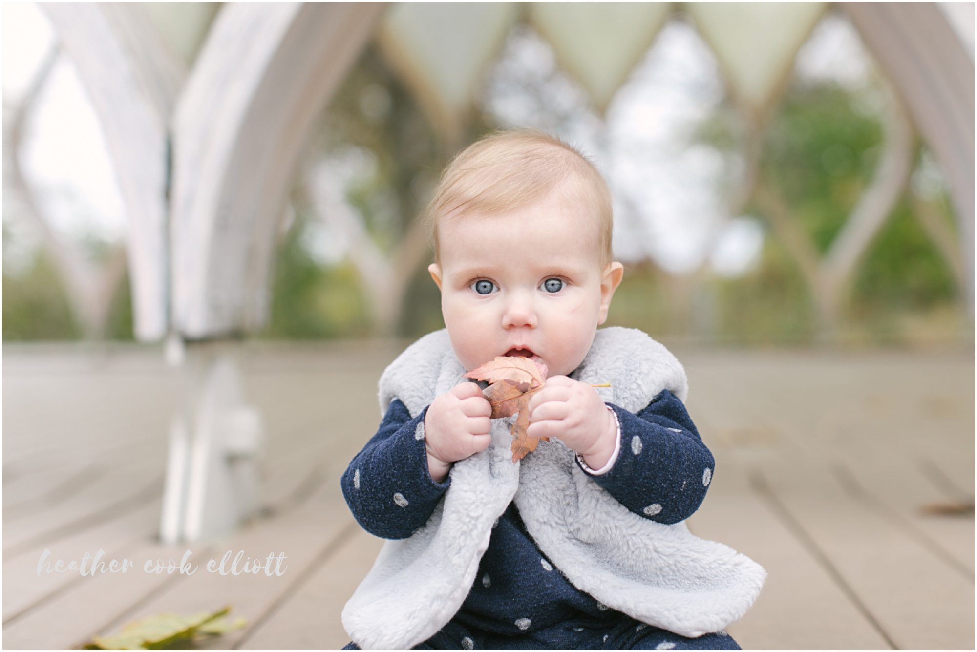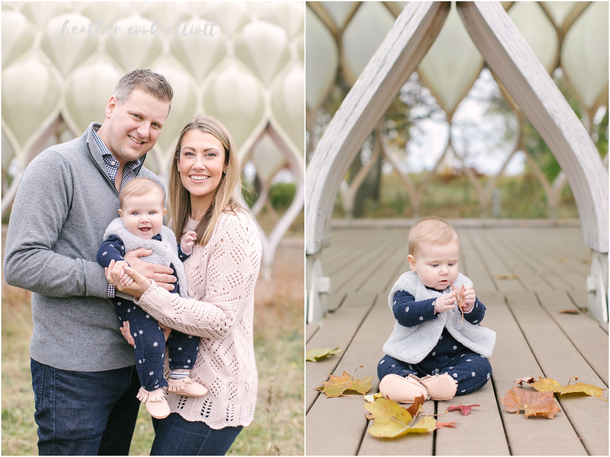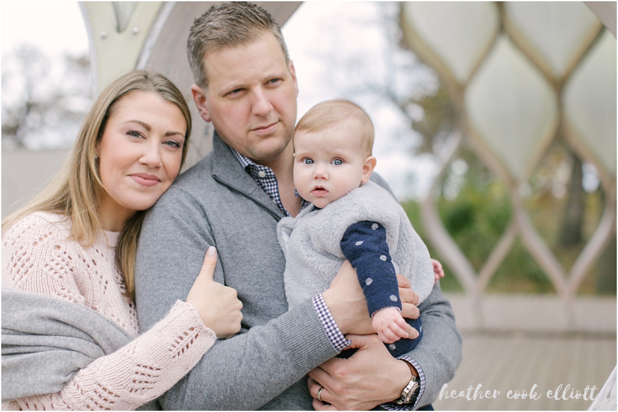 The last time I met little Brooke she was a newborn babe, all soft skin and sleepy eyes. Now, six months later she’s still in possession of that cashmere-soft skin, but her eyes are as bright, blue and inquisitive as can be. On a crisp fall day in Chicago’s Lincoln Park she showed them off for me, along with her delightful smile. We meandered along the sentimental paths that Chicagoans love, reminiscing about the time her dad asked her mom to marry him in this very park. And so: Brooke discovered leaves for the first time and the city & Jean Gang’s pavilion played the parts of perfect photography backgrounds. Mom & Dad told their engagement story and cuddled their sweet baby girl. And all the while all I could think was well isn’t this the most perfect morning in Chicago with the most lovely little family?