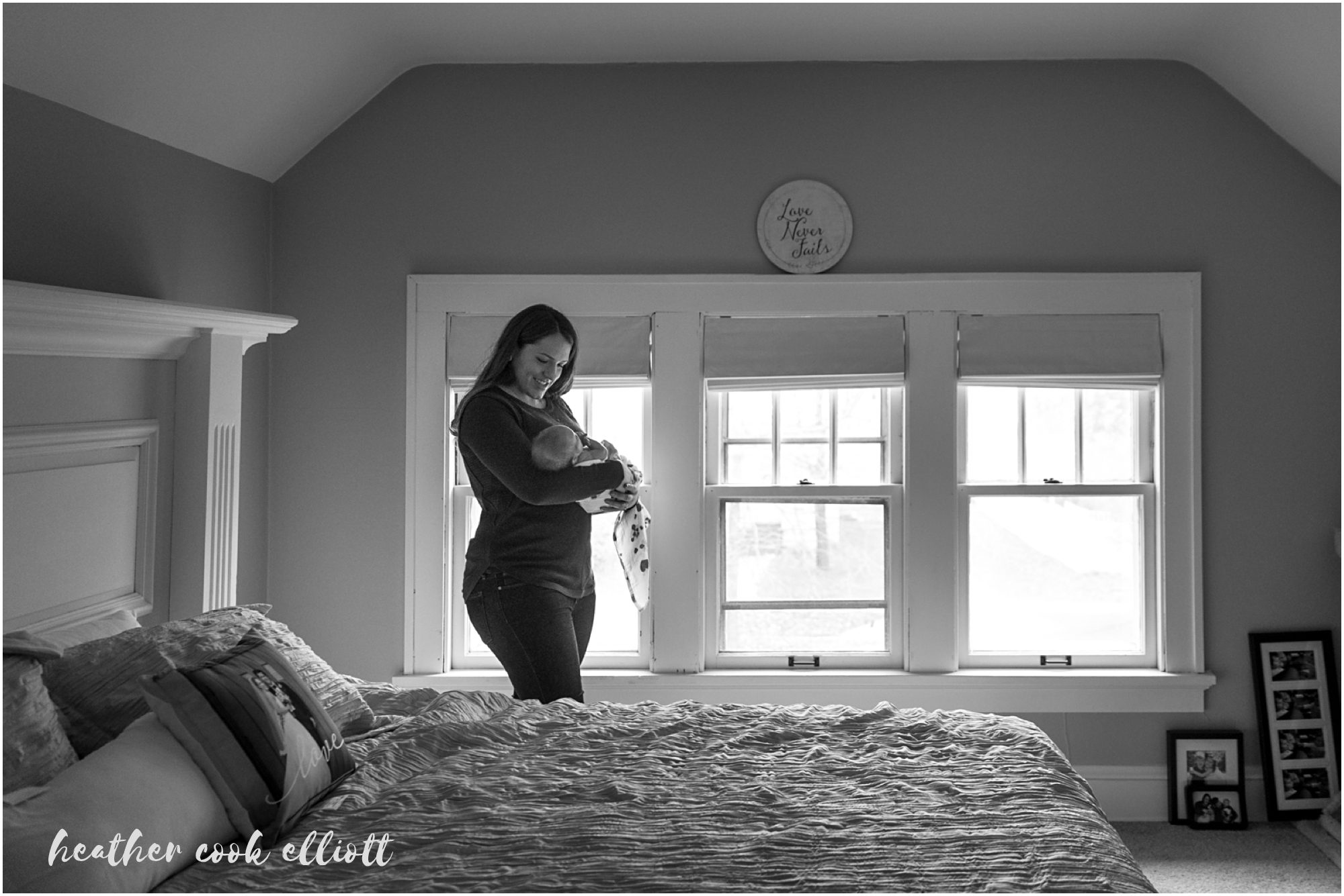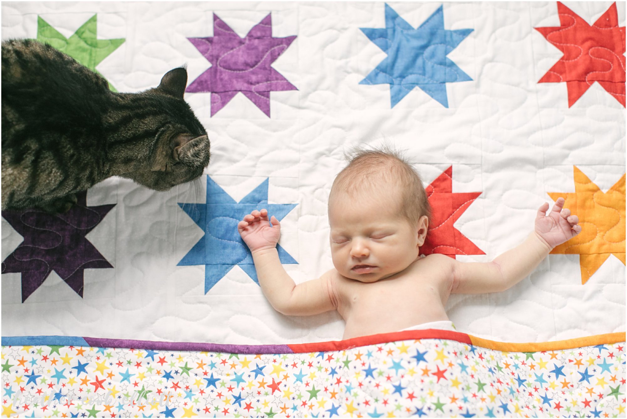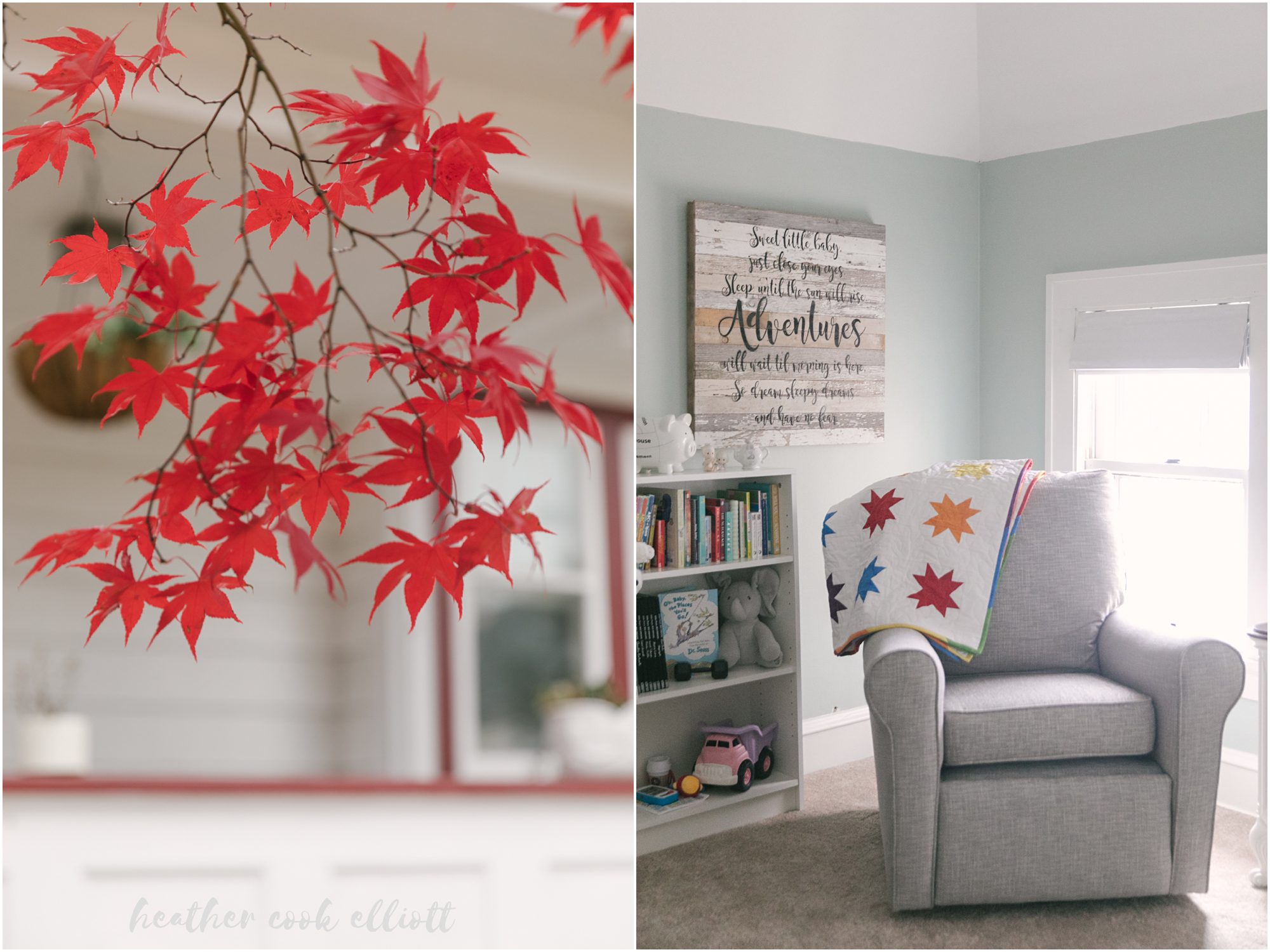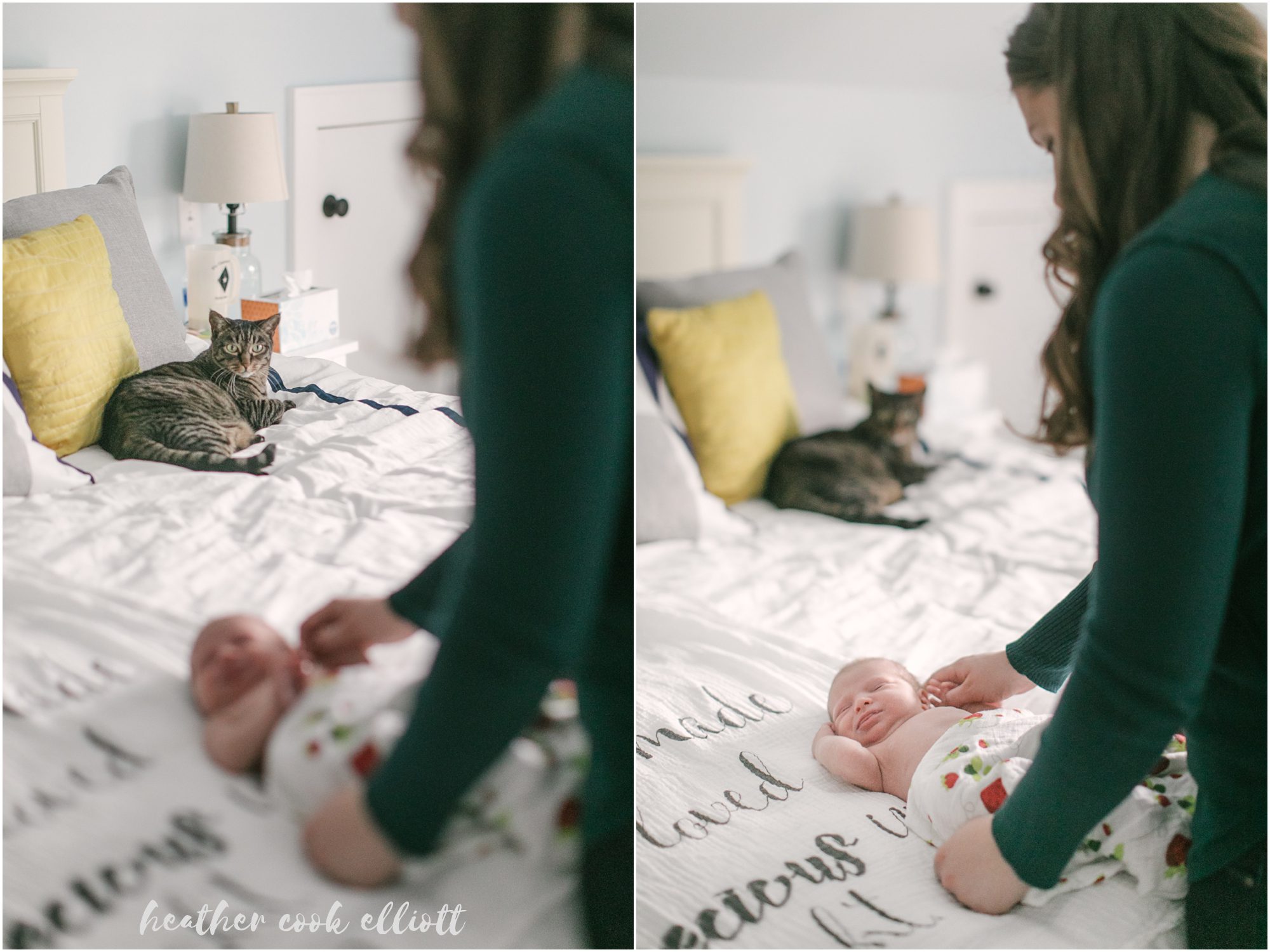For some new parents having a baby feels like going on a a grand, insanely frightening but awesomely wonderful adventure. I’m pretty sure that’s a good way to describe Lindsey & Bennett and their new life with baby Emerson who shares a middle name with her mom and grandmother and a birthdate with a great grandfather. We first met Lindsey & Bennett when they were planning their Milwaukee wedding from LA and with the birth of Emerson I was happy to welcome them back to the midwest and the classic Milwaukee bungalow life. Up until now renovating their Tosa home and even some of the furniture in Emerson’s nursery have been dad’s passion projects but I get the sense that all hands are on deck for Emerson now, and what a wonderful pivot for dad to make. Emerson is cuddly and warm, all cheeks and chubby arms, a mystery to her kitty siblings and a delight to her mom and dad. I adore these at home, simple and sweet photos of Emerson and the couple she’s made into a family. Happy Thanksgiving all – Emerson proves we all have much for which to be thankful.