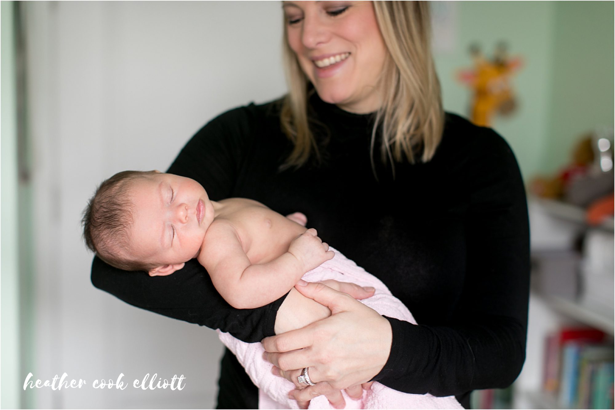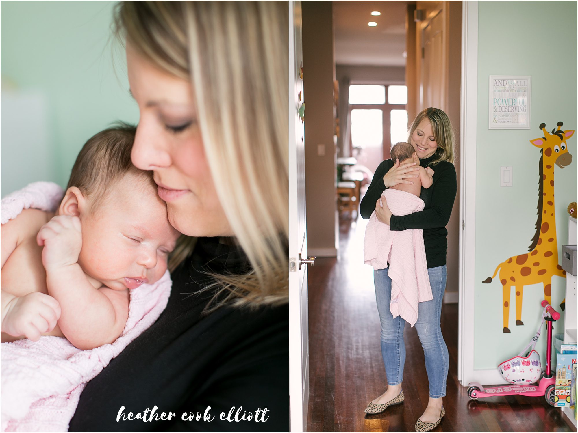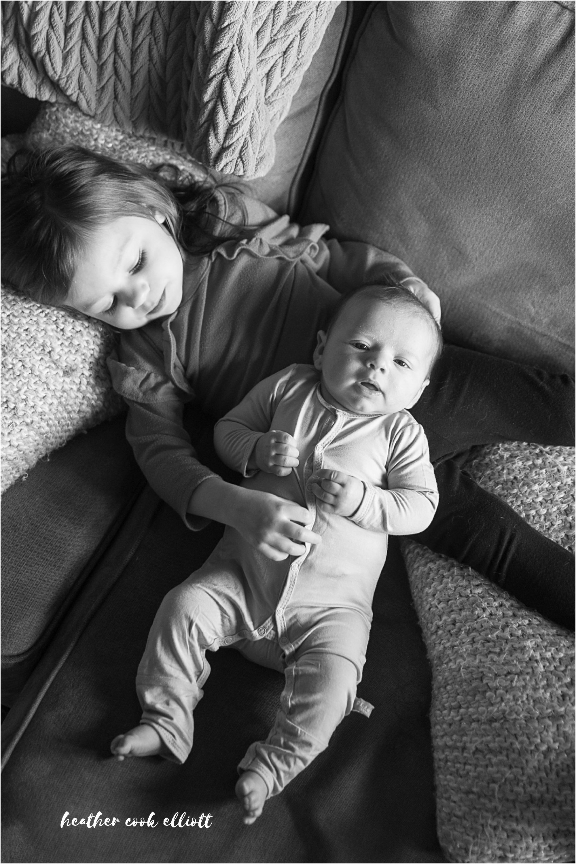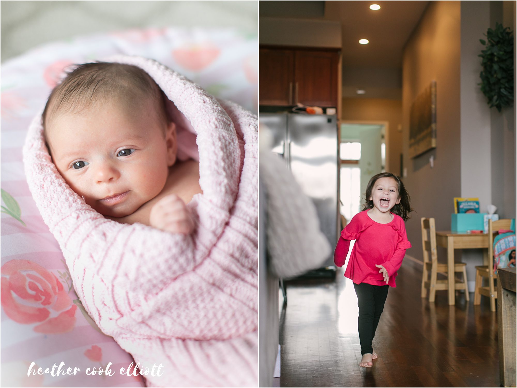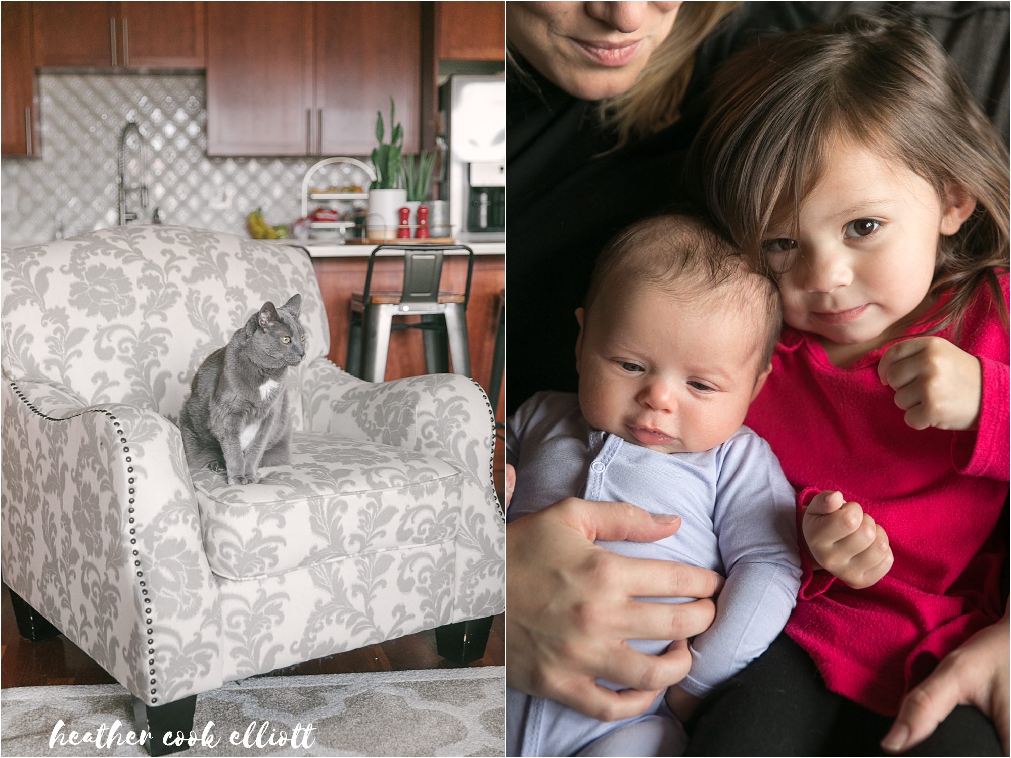 A partial list of things I love: newborn skin, big sisters, fur siblings longing for a scratch, family at Christmas-time, being cozy at home with your favorite humans in the world. This session with newborn Remi ticks all the boxes on my list and my dears, I couldn’t be happier to share this sweet Chicago home family session today. Big sister Reva is a bundle of energy and joy, squeals and hopping laughter. I first met her almost exactly 2 years ago when she was 11 weeks fresh and I adored seeing how she’s grown and how she’s making space for her new little sister Remi Caroline. So far though, Remi doesn’t require much these days and mostly prefers to be in her mama’s arms in a position that can only be described as verrrry reclined. In this season of Thanksgiving its moments with little families like this one that makes me hopeful for all of our tomorrows. And so I’ll borrow from the HRC framed print on Remi & Reva’s bedroom wall that says in part little girls, never doubt. Never doubt that your mama and daddy love you so, never doubt that family and a big heart will get you through anything, never doubt that you are what the world needs today.