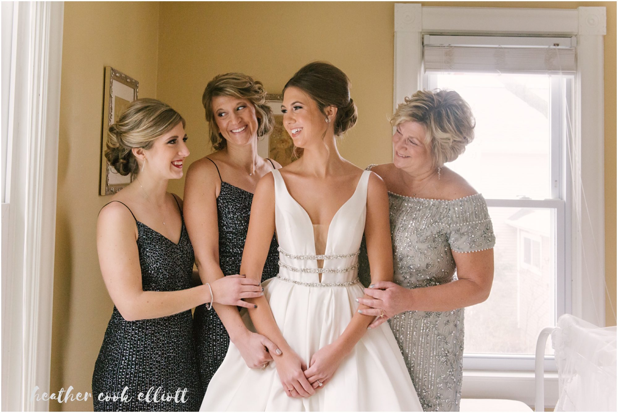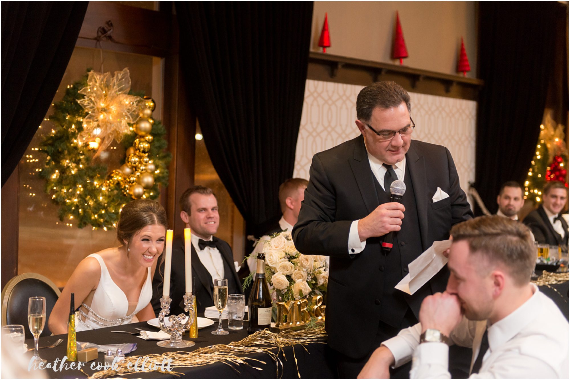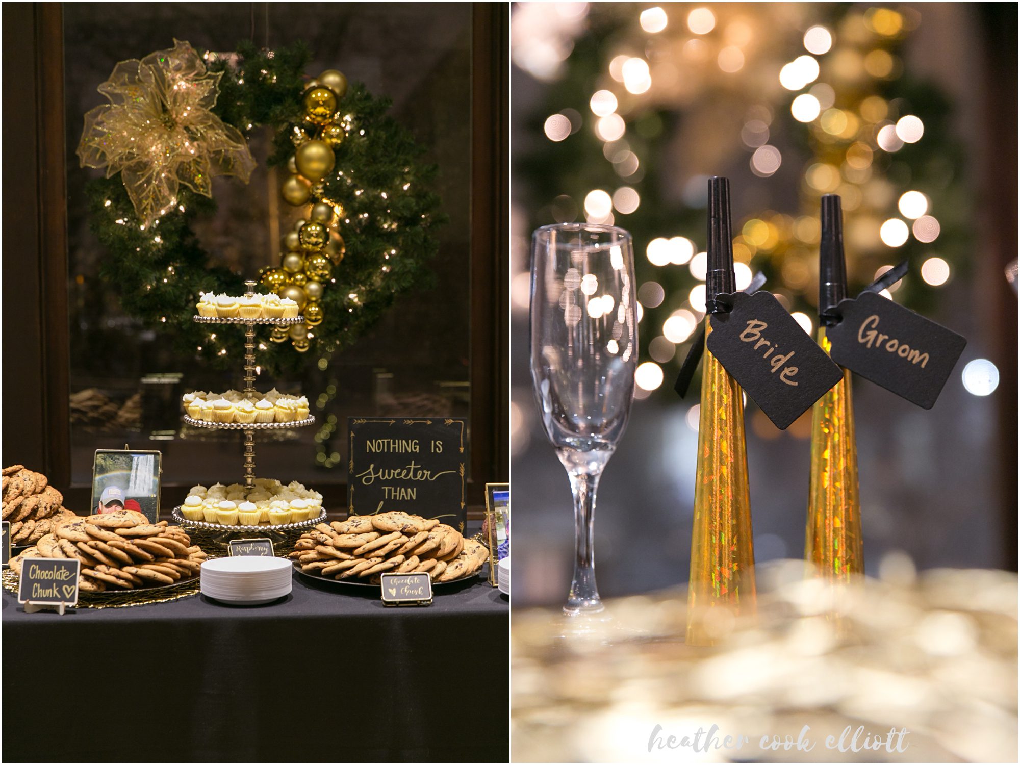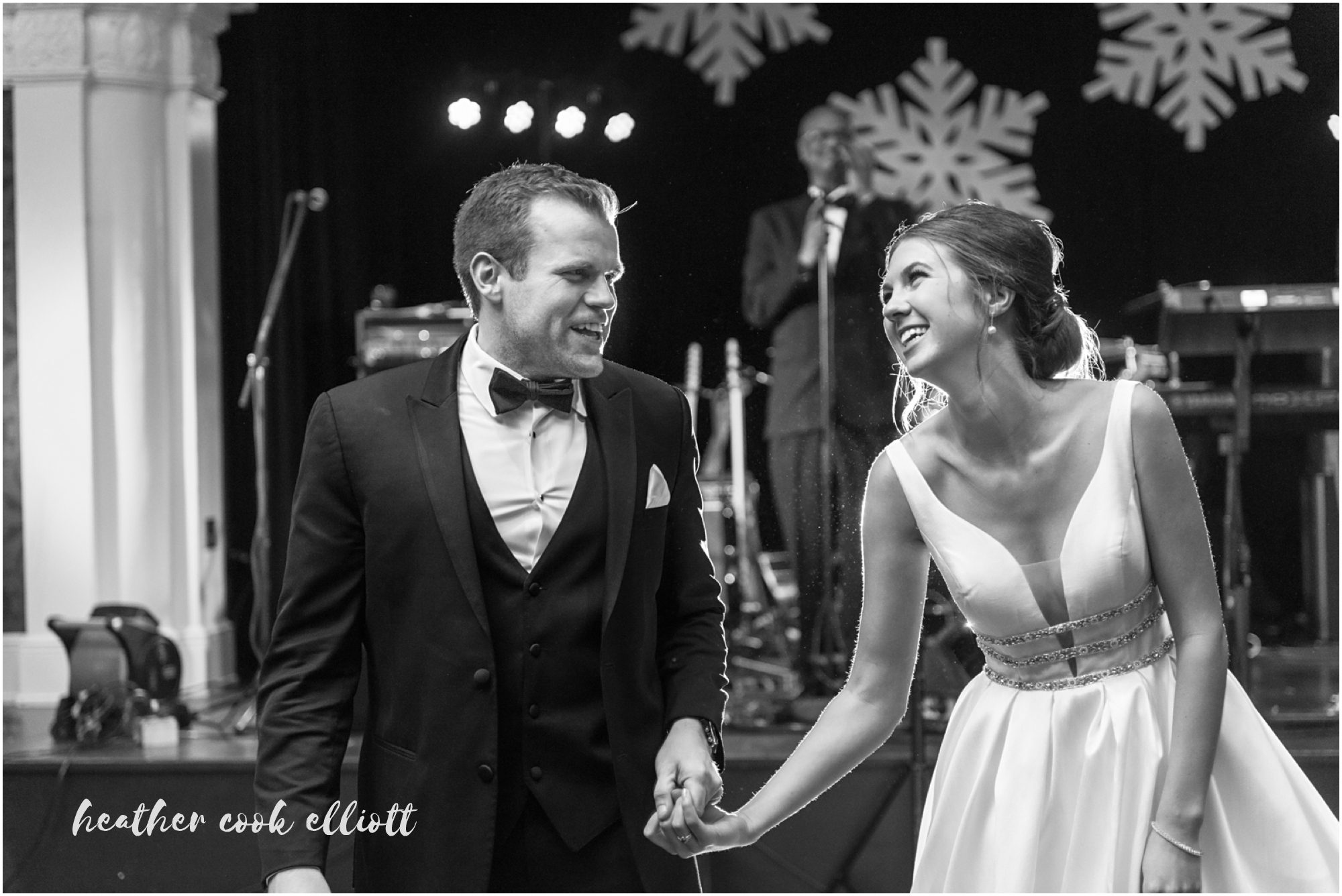 Katelyn & Josh’s wedding day was everything they hoped it would be and even more than they dared to imagine. They wanted to treat all of their family and friends to a night out, an elegant celebration with a band and party hats, a chance to share the dawn of a new year with their favorite people on the planet. So they chose a New Year’s Eve wedding date and crossed their fingers for snow. They assumed they would succeed in all of their host & hostess goals, but they couldn’t have anticipated how much all those favorite people reached back to give them the most amazing day in return. Each laugh, smile, hug, tear, confetti toss and dance move added up to make it truly, the best day of their lives. We loved how focused they were on conveying their love and appreciation to family, on honoring their history and on being present for every moment of their whirlwind day. They wrote letters to family and family wrote letters to them; Katelyn surprised Josh with her heartbeat pattern inscribed on his ring (they are both nurses so heartbeats are particularly apropos,) and they were married at the same church her parents were nearly 3 decades ago. The day was full of sparkle and old-world glitz, but also red wellies just perfect for tromping in the wet snow and classic paper NYE crowns that go best with fresh baked cookies and cake. Cheers to classic NYE weddings and most of all, a lovely pair of souls whose hearts beat for one another!
