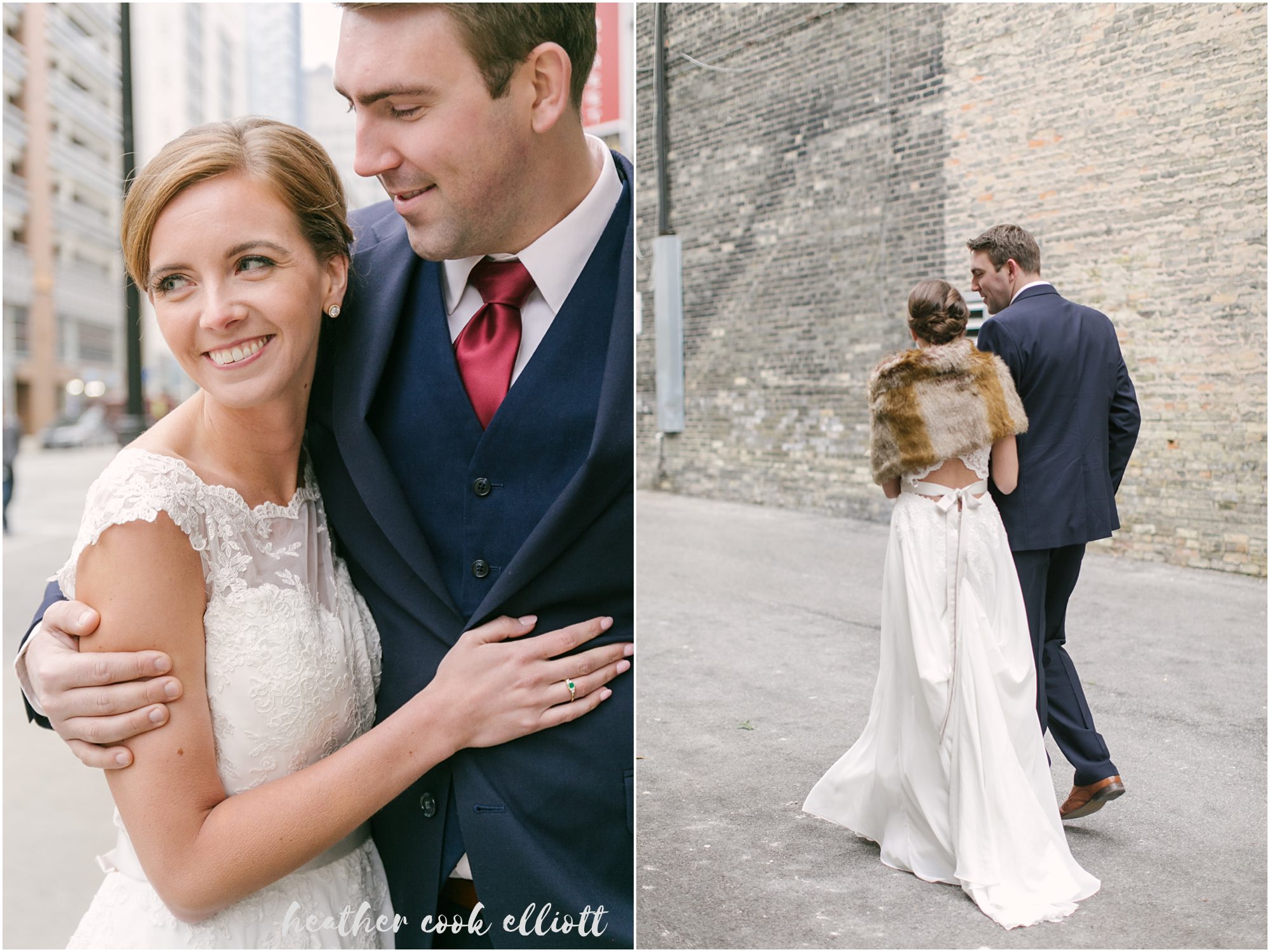 When I first met Shannon & Jack in Louisville for their engagement session I characterized them as “a little bit city and a little bit country.” I was wrong. They do love the city and they do love the country, but really, a better way to describe them is to say they are all in for the Outdoors. So on their wedding day we explored many kinds of urban and rural terrain from city alleyways to lakeside beaches, from grassy fields to a good old fashioned porch. Every space and every moment found them fully at home and comfortable – with their surroundings and with each other – which fits with the kind and insightful words of Jack’s brother who toasted them at their Schlitz Audubon reception. He noted that one of the things he adores about Jack is that Jack stays true to himself and does what he wants because he wants to do it. And so, to be his friend (and especially to be his bride) is to know that you are chosen for you and loved just as you are. There is no greater compliment I can think of than that: to be loved for who you are. And so, with full hearts we adored being a part of Shannon & Jack’s wedding day where everything was chosen and shared with love: the pine trees hand-picked from Jack’s family land, the signature cocktails that spoke to their histories in Louisville & Wisconsin, the inclusion of Birds of Prey at the reception. Everything was authentic to them and exceedingly lovely to photograph. SO grab a cup of something warm on this chilly winter day and enjoy this look into Jack & Shannon’s wedding day that was perfect – just the way it was.