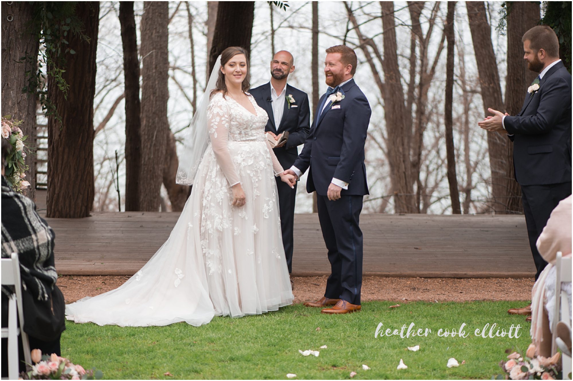 Ashley & Andrew’s wedding day was a lovely mix of Favorite Places meets Favorite People and the result was an ingeniously intimate, personalized, and all out delightful day. They are the kind of people who are used to designing experiences and making plans, so it was no surprise that their wedding was out of the ordinary, but who knew it was possible to so successfully mix city touring with nature hikes and urban dining AND get married in the middle of it all? Apparently Ashley & Andrew did! Their day started a few miles apart, Andrew getting ready at home while Ashley dressed in her exquisite lace BHLDN dress in the surrounding glamor of the Hilton Garden Inn. On the soaring atrium steps of the hotel Andrew caught his first glimpse of her. From that moment they happily raced into their day, ever hand in hand, ever conscious of the fact that this was Finally The Day when they could call one another husband and wife. They moseyed on decked trails at Schlitz Audubon and spied turkeys in the woods, walked on the beach and generally enjoyed the camaraderie of souls gathered to celebrate their love. They made promises and affirmed their excitement for the baby soon to join their lives (yep, Ashley and Andrew are having a baby!) They took a boat ride and cast loving eyes not only on each other but on the city they have come to call home. Their families joined them in enjoying all the little experiences of the day, approaching each mini-adventure like the gift from Ashley and Andrew that it was. Over family style dinner at Onesto they toasted and danced, shared cake and stories, and very simply, said yes to life and love and family.