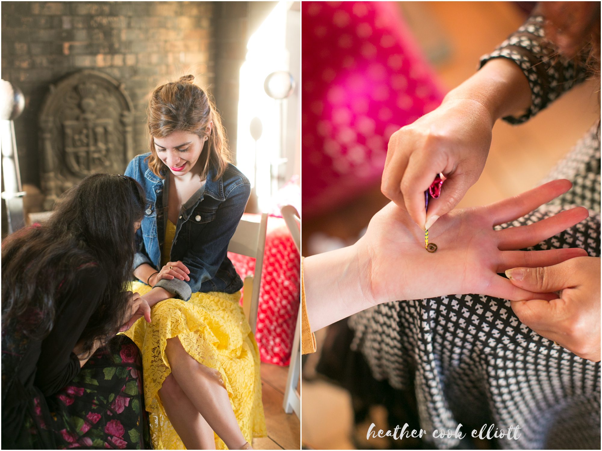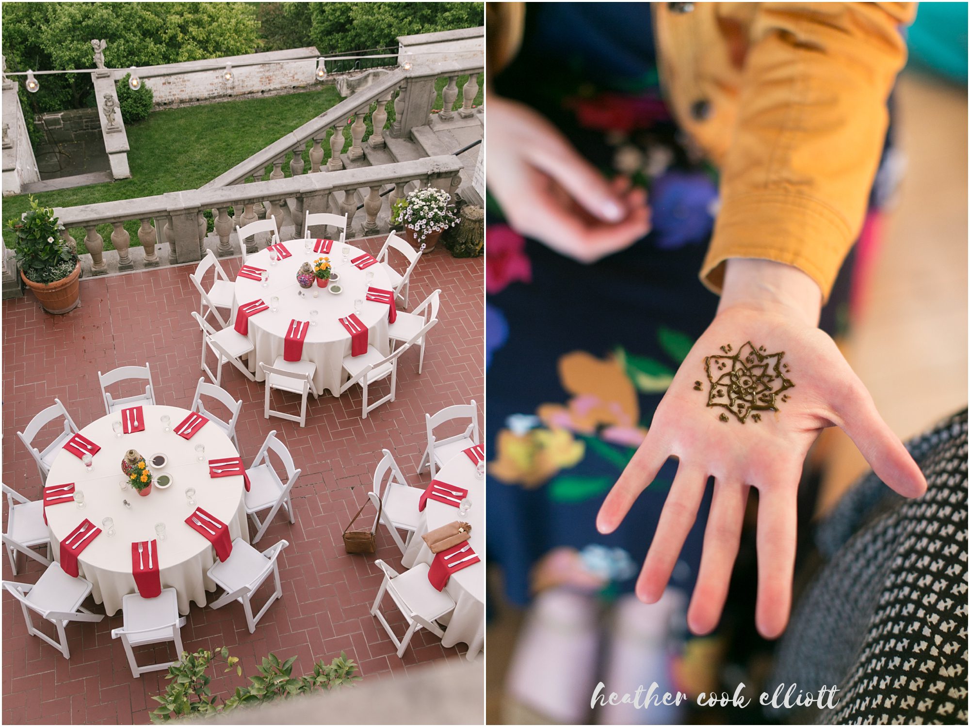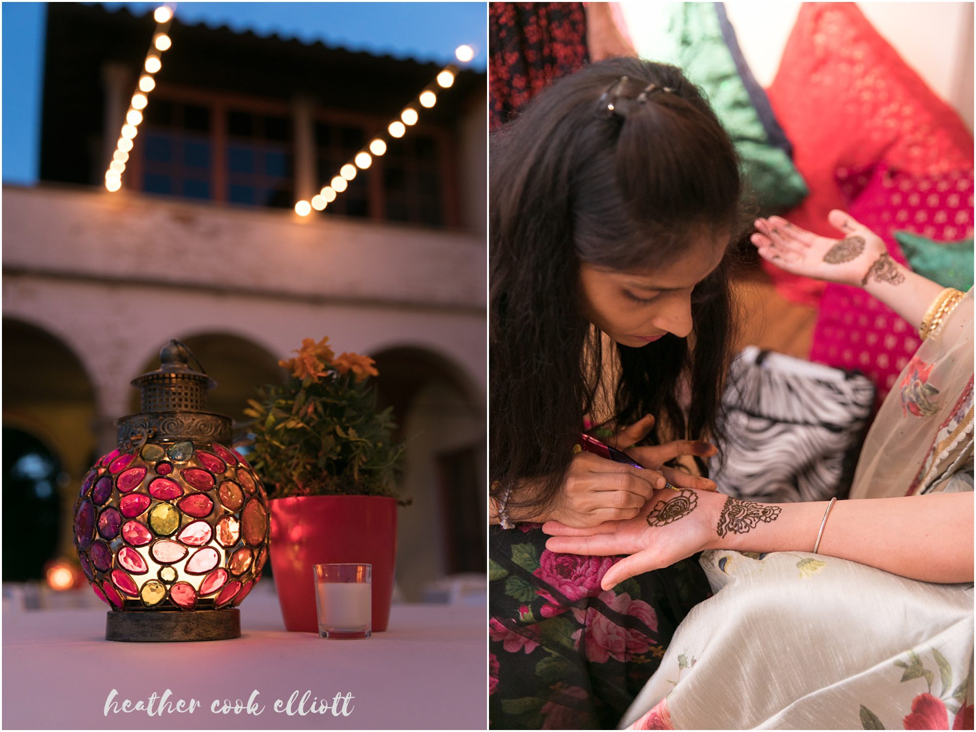 Fusion weddings are easy to love. They tend towards the eclectic and colorful and they are vibrant and fun. They are just familiar enough to make all the differences stand out and from our perspective they are, if nothing else, simply interesting to the artistic eye. But make the protagonists of the fusion wedding two insanely lovely humans like Drew and Sid and I present to you: a photographer’s favorite kind of wedding. The kind of wedding that honors culture and religion. The kind where everything on offer has been a choice, a decision, something that that has been “opted-in.” The kind of wedding that celebrates the bride and the groom’s individuality and their respective histories as children, as siblings, as friends, as scholars – and then that magical time in their lives where those histories entwined to create a new story about Them. Drew & Sid had that kind of wedding and their Mehendi night was the perfect entree into their dream weekend of love, faith, hope, friendship and oh yes, fun. With friends and family in town from across the country and around the world Drew and Sid kicked off the celebration at Milwaukee’s iconic Villa Terrace. As the sun set over Lake Michigan they dined and danced, caught up with old friends and blended their families. Henna was applied and toasts were offered, there were some language lessons and oh-so-much laughter. And unbelievably it was just the beginning. In a multi-part series I’ll detail all the amazingness that was Drew & Sid’s wedding.