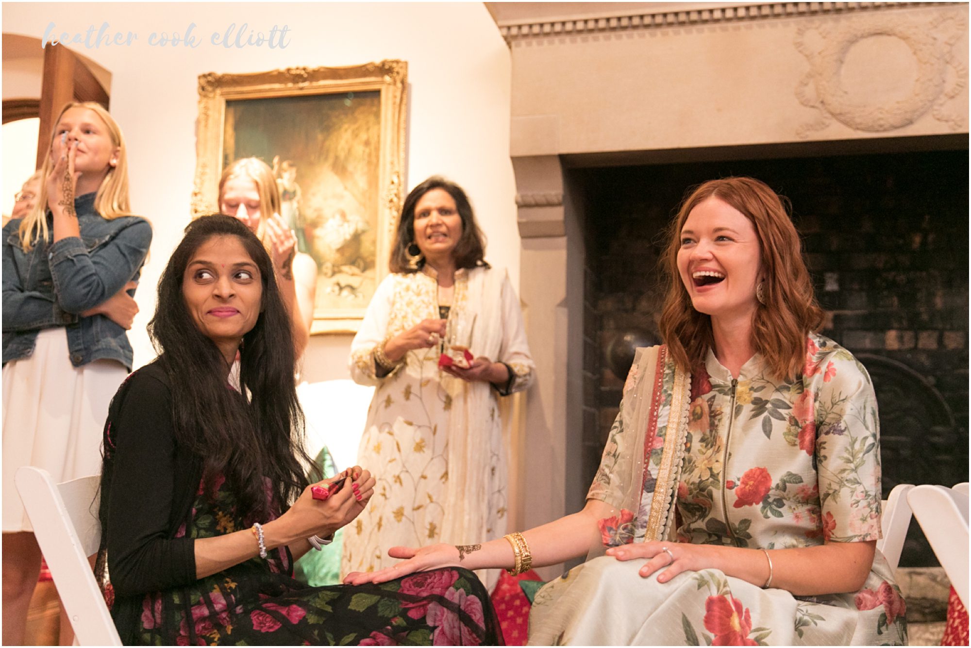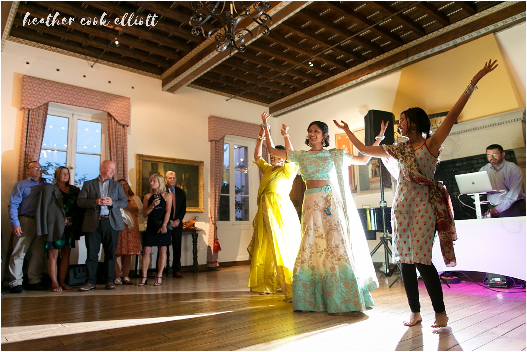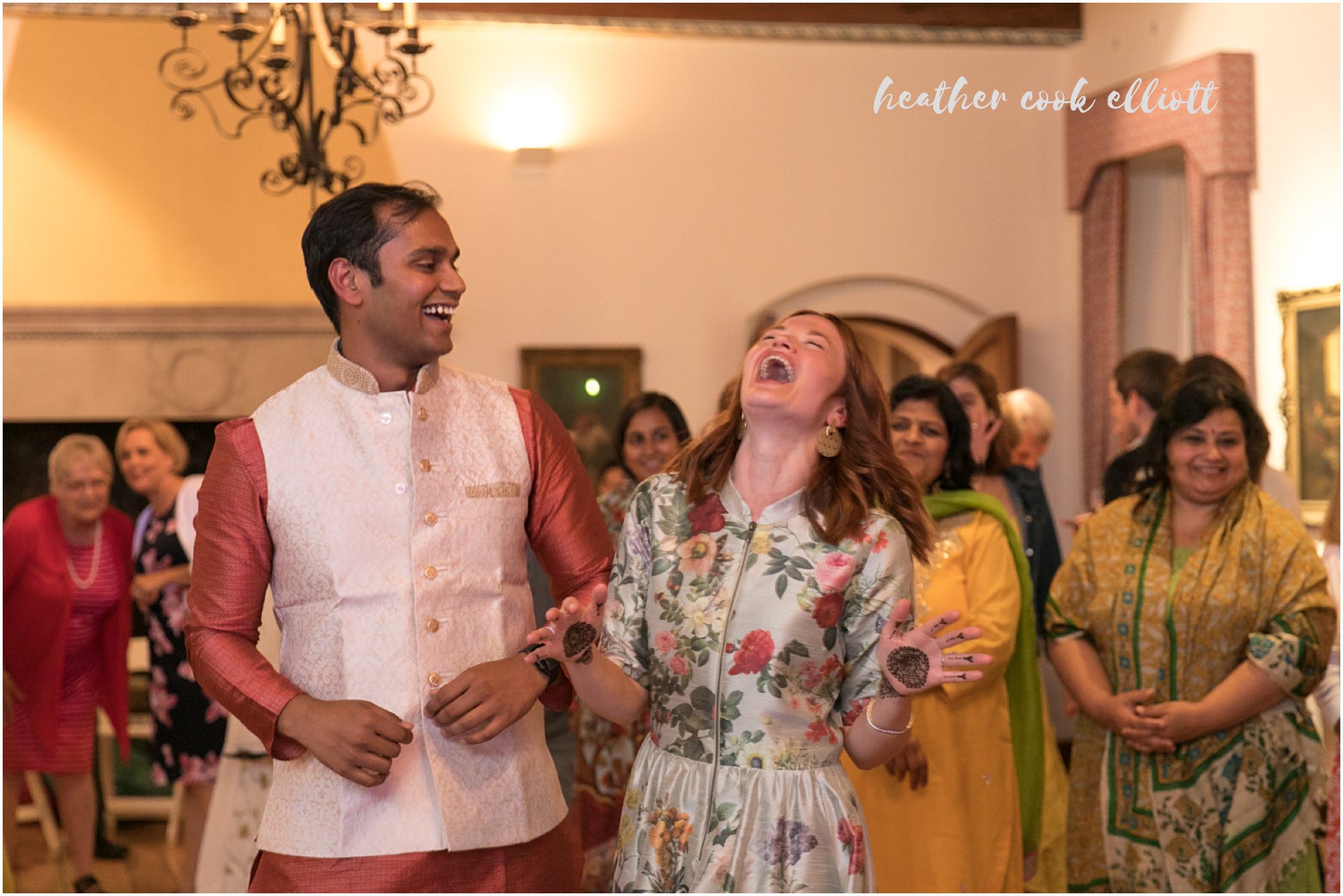 Fusion weddings are easy to love. They tend towards the eclectic and colorful and they are vibrant and fun. They are just familiar enough to make all the differences stand out and from our perspective they are, if nothing else, simply interesting to the artistic eye. But make the protagonists of the fusion wedding two insanely lovely humans like Drew and Sid and I present to you: a photographer’s favorite kind of wedding. The kind of wedding that honors culture and religion. The kind where everything on offer has been a choice, a decision, something that that has been “opted-in.” The kind of wedding that celebrates the bride and the groom’s individuality and their respective histories as children, as siblings, as friends, as scholars – and then that magical time in their lives where those histories entwined to create a new story about Them. Drew & Sid had that kind of wedding and their Mehendi night was the perfect entree into their dream weekend of love, faith, hope, friendship and oh yes, fun. With friends and family in town from across the country and around the world Drew and Sid kicked off the celebration at Milwaukee’s iconic Villa Terrace. As the sun set over Lake Michigan they dined and danced, caught up with old friends and blended their families. Henna was applied and toasts were offered, there were some language lessons and oh-so-much laughter. And unbelievably it was just the beginning. In a multi-part series I’ll detail all the amazingness that was Drew & Sid’s wedding.