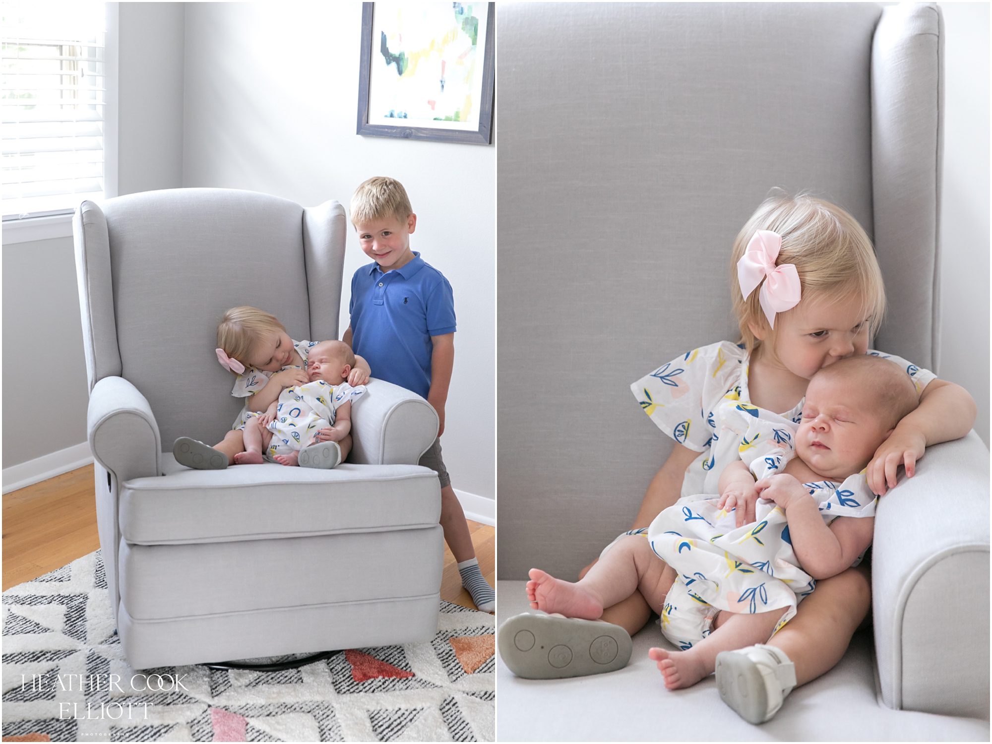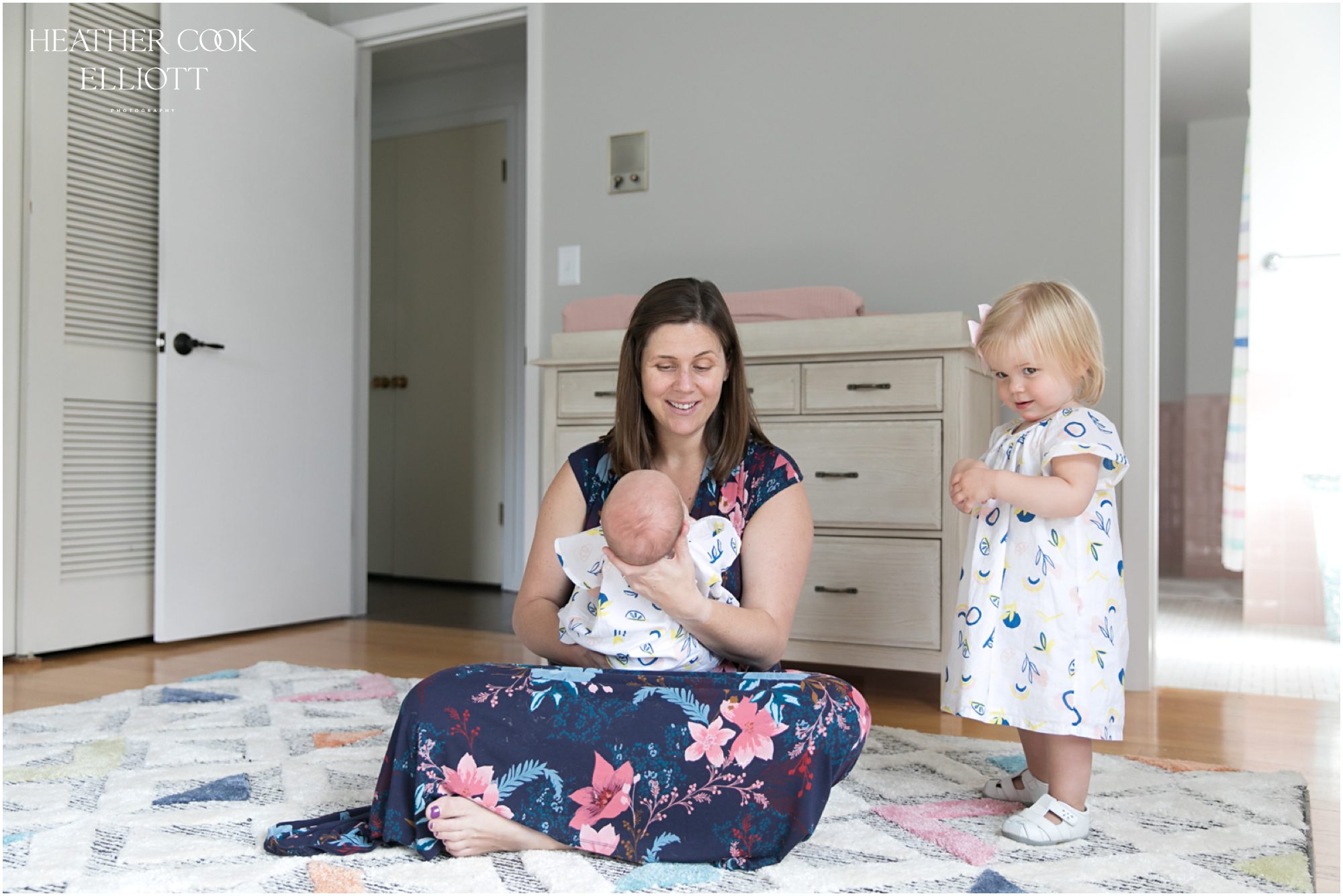 Some babes have all the luck. Newborn Marjorie Elizabeth already has an adorable nickname (Margie), the world’s most patient dog, a brother AND a sister, a sunny & sweet bedroom plus the best parents a child could hope for. I know all of this to be true because I’ve photographed her parents since before they were married and even visited them in Seattle many, many moons ago before Wisconsin called them back home to grow their careers and family. Right now Margie only knows snuggles and milk, warmth and comfort, but I know that waiting for her is a sister who wants to swing with her and teach her how to do puzzles. A brother who has perfected a mean paper airplane design and might one day let her up in his top bunk to play. There are toys and bubbles and scooters to ride, a fun pink bathroom to take bubble baths in and a big swing set in the back yard with a slide that will one day be just perfect for her. All of that written, I know that her mom and dad are pressing pause on this moment, THIS tiny moment when she doesn’t know about all those alluring possibilities and instead just requires arms to hold her. Welcome to t he world baby girl; it’s so nice to have you here.