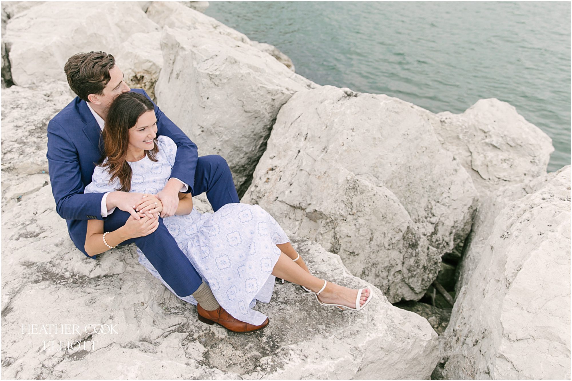 Lauren & Kaden’s engagement session combined a few things that we love – like really, really love. Lake Park, the Lakefront and people who are (and show that they are) In Love. Lauren & Kaden pretty much left it up to us as to where to shoot for the session so we visited our favorite spots for leafy green backgrounds and windswept nautical vibes, but they are the ones that brought the real magic to the session. Kaden proposed at Lauren’s family home and her family has been smitten with him from the get go, all the way up to the moment when her sister took guerilla photos of his proposal. And from then on it all moved from smitten to totally crazy for this guy. He’s on the quiet side and Lauren did most of the chatting during the session, but his all-attention-on-Lauren default setting made us easily see how his regard for her is soul-deep and unwavering. Together the two of them make the future look a little brighter, a little sweeter and totally like a place we all want to be with them.
