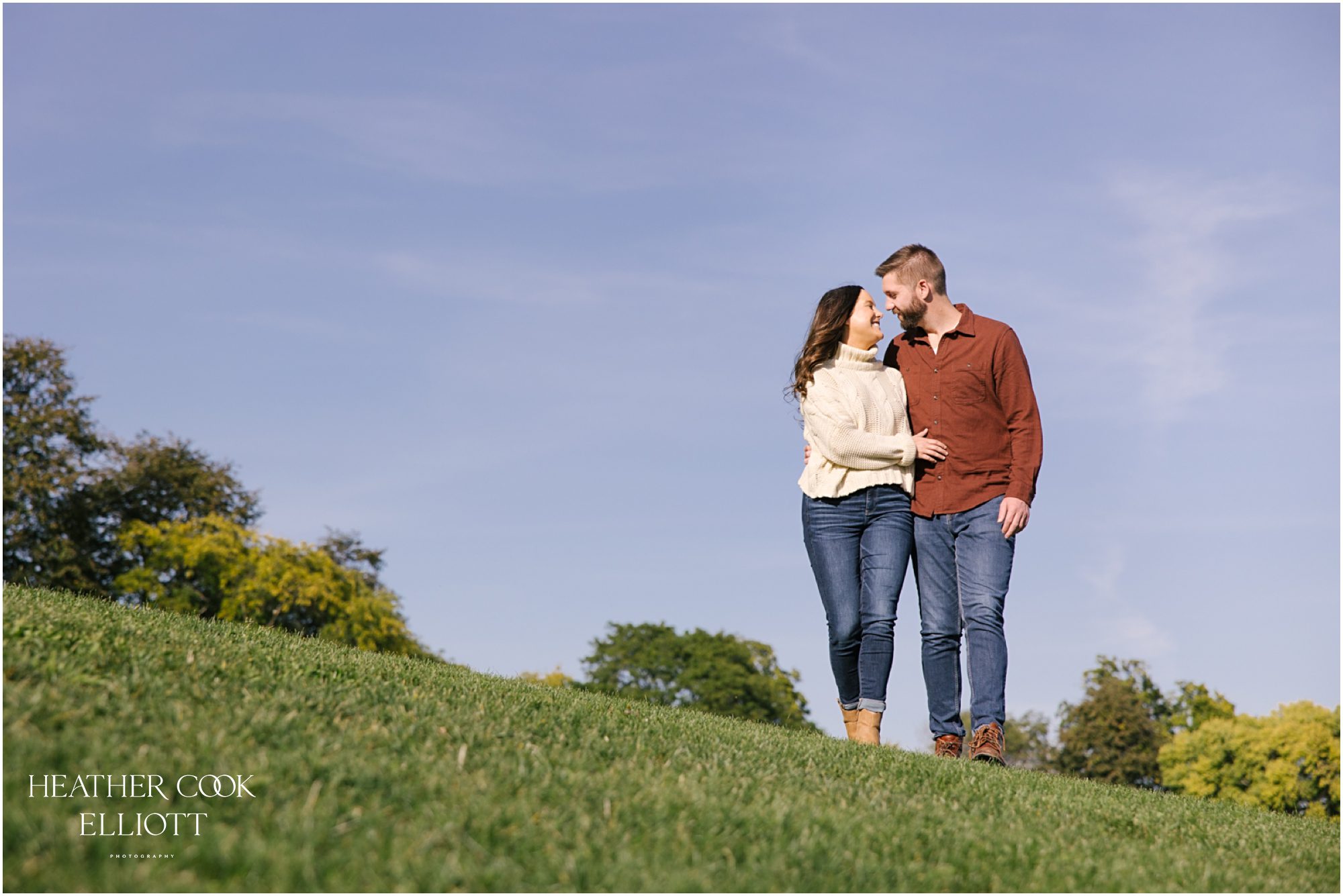 This is a story about Melissa & Nate, but even I have to admit that their fur baby Moose may have stolen the lead role in their engagement session. We started at the place where they first met in person after meeting online, Kadish Park. The big hill and its city views can’t be beat for wild flower meanderings and sunny fall outings, and Melissa & Nate laughed their way through a tour of the park. But then when they met up with Moose on familiar terrain the real fun started. With still-a-puppy-Moose leading the way they took a few deep breaths and really relaxed into a rare afternoon of non-work, not thinking about work, absolutely no work around time. And friends, it was perfect. Oh and also joyful, beautiful and truly fun!