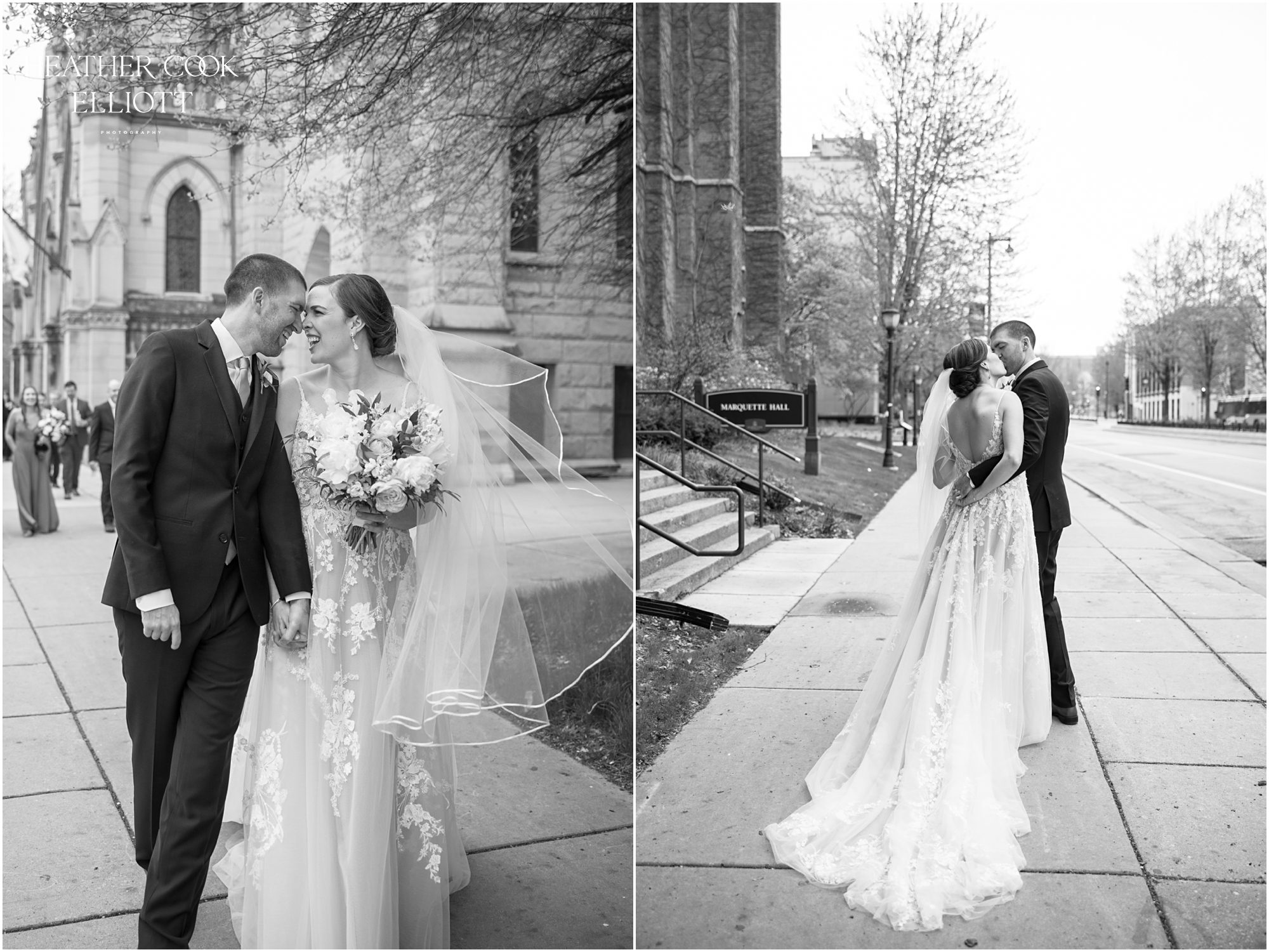 Maura & Eric have a true Marquette Love Story many years in the making. They both attended the beloved Jesuit University just like their parents but they never crossed paths on campus. It took a dating app to bring them to the same place at the same time but almost literally from the moment they did meet it has been just the two of them all the way. I could list a dozen adorable, sweet facts about them but I’ll go with my favorite for this little blog post: since the beginning of their Us they’ve written to one another. Cards every month, notes on scraps of paper wishing one another a good day, long, detailed impressions of dates and future plans, so much written to one another, saved and cherished and then on their wedding day, gifted back to one another. Jewelry is a lovely wedding day gift, but darling give me love letters and keep me forever. And that is exactly what they intend to do: keep one another forever and ever. Amen.