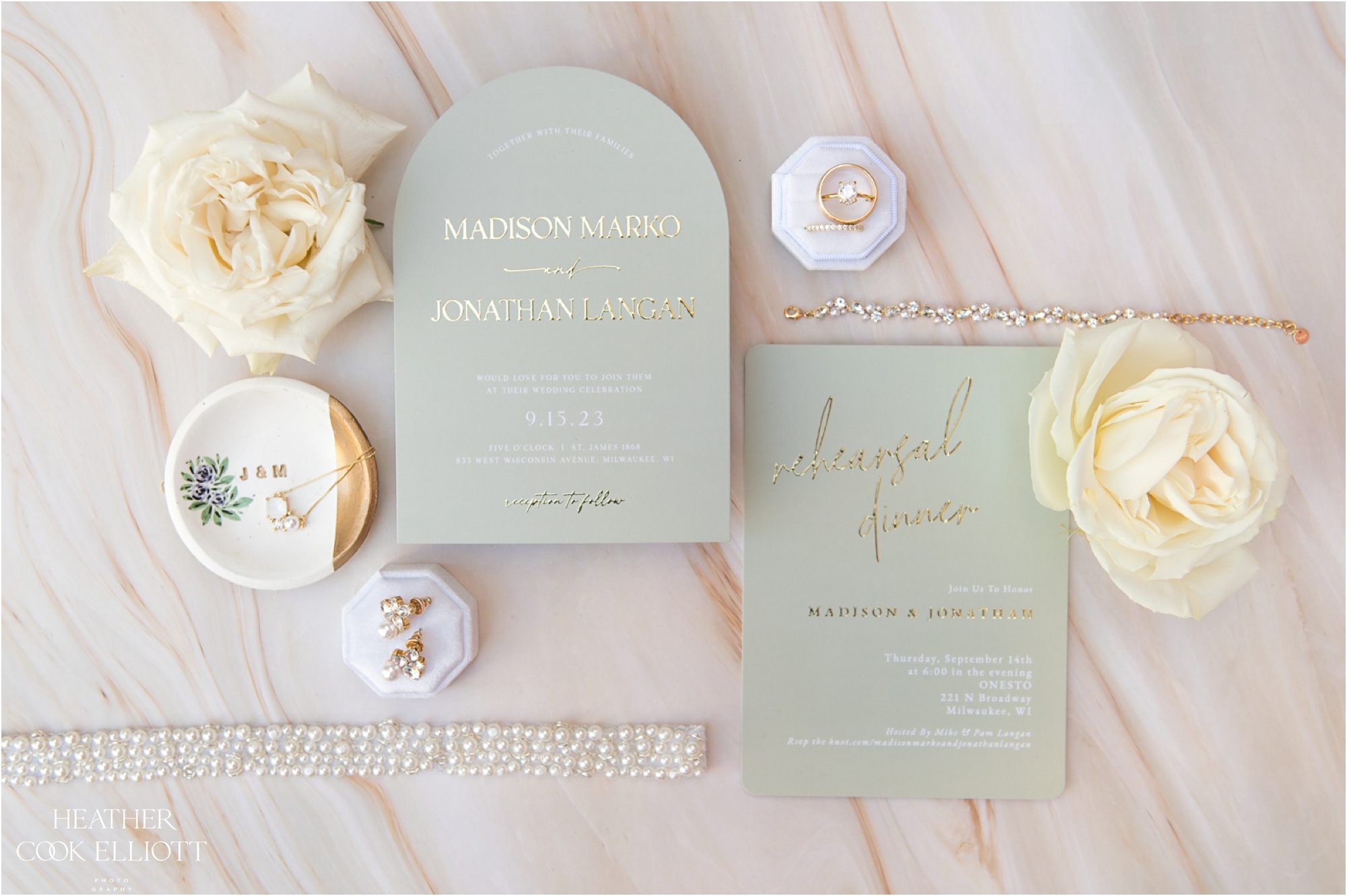 Mady & Jon’s September wedding was a stylish affair full of family, dashing good looks, an incredible dance party, touching toasts, and more love than two people planning a wedding could have ever imagined for themselves. They started their sunny wedding day dressing apart in the beautiful suites at St James 1868 but shared a first look on Marquette’s campus at the Chapel of St Joan of Arc. It was private and sweet and THE perfect way for Mady & Jon to walk hand in hand through the rest of their day. Their ceremony was officiated by a dear friend and all evening they were surrounded by sheer joy. And of course, the dance party. The Dance Party! With a live band keeping the dance floor full all night long Mady & Jon got their wish for their wedding: to host a memorable and meaningful day that reflected their love story so far with a promise of good things to come.