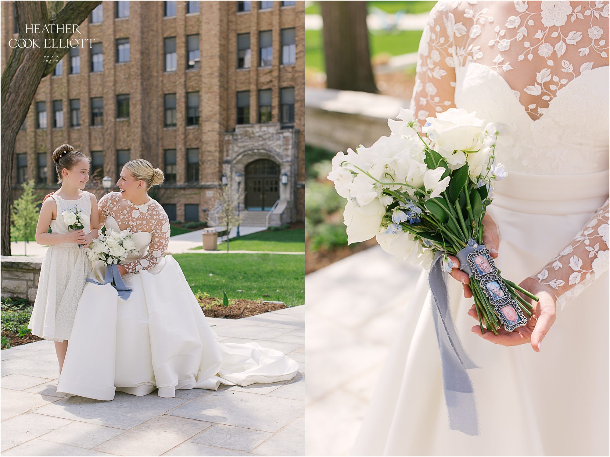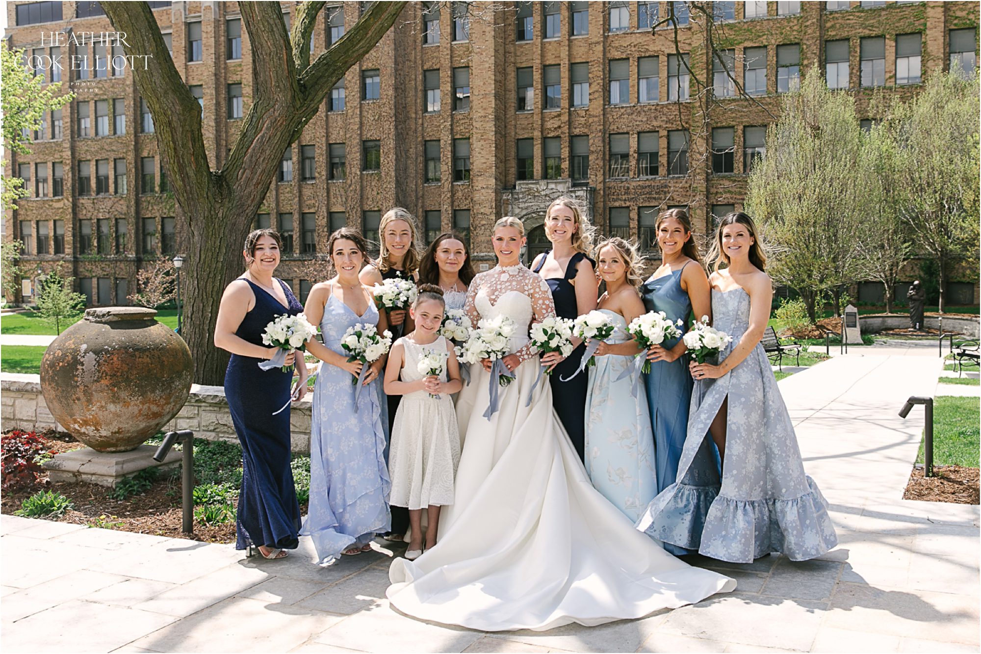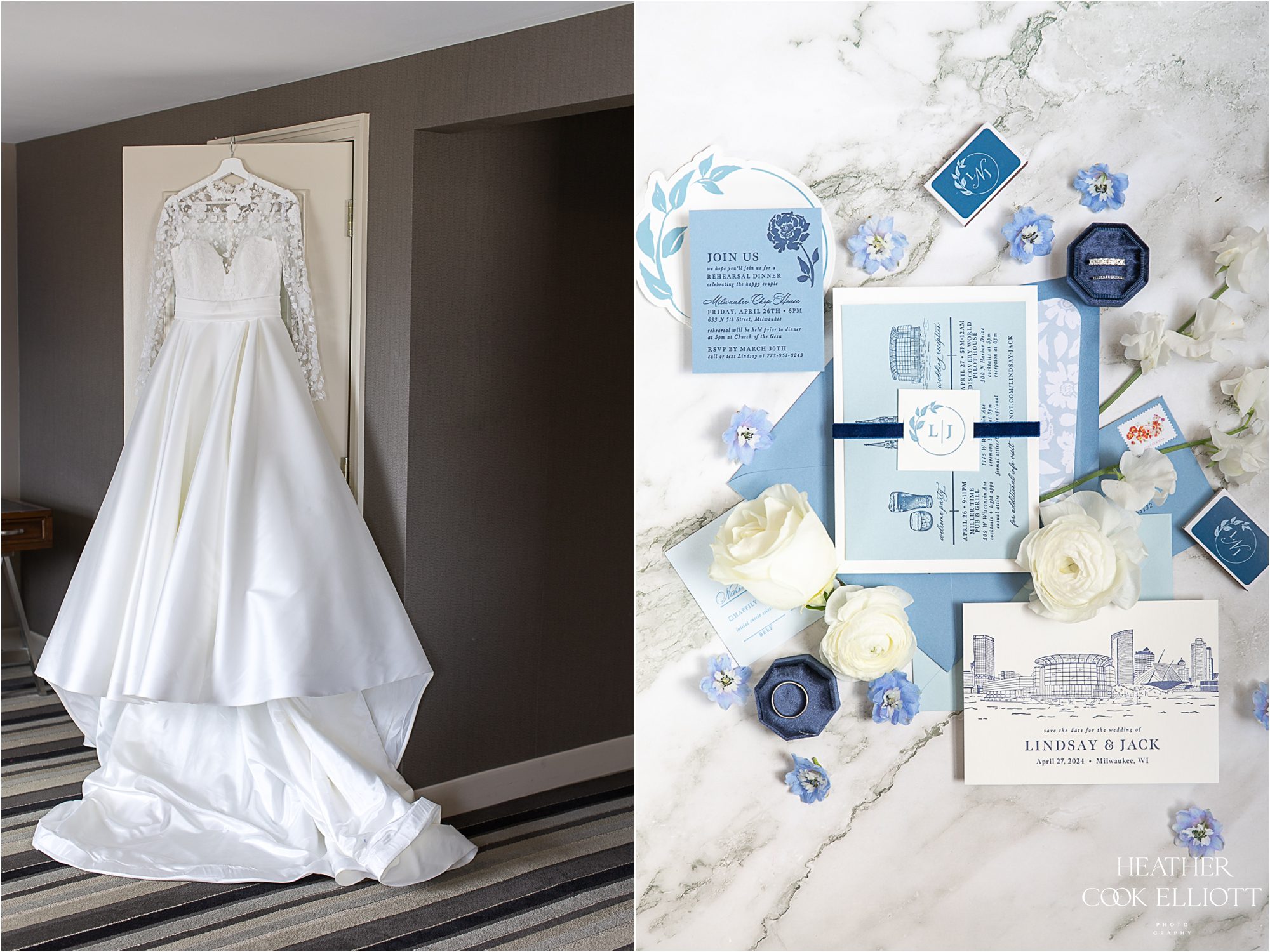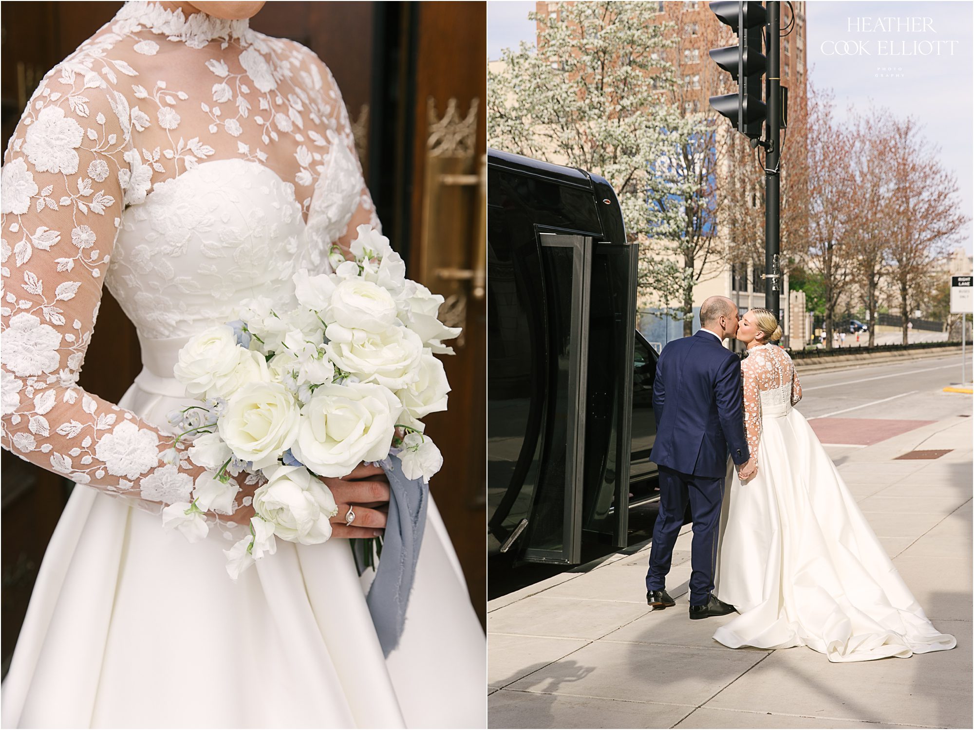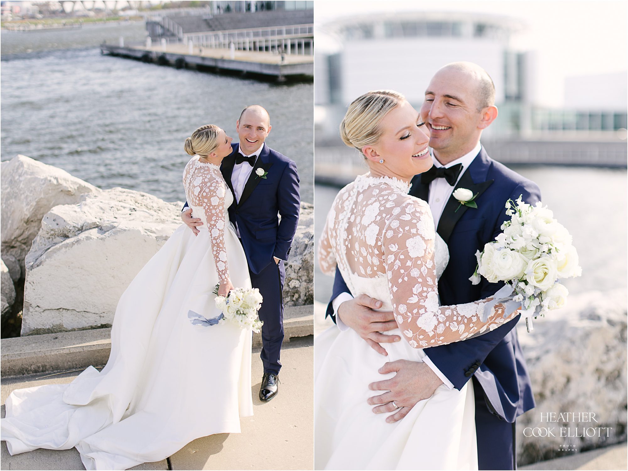Lindsay & Jack’s wedding day was a dream come true for them and for all those gathered to celebrate them on the most beautiful April day one could dare imagine. They started the morning apart but surrounded by friends and loved ones eager to keep them calm but just as likely to make them tear up with happiness. After a wind-kissed first look at Marquette’s beloved Joan of Arc Chapel they shared the sacrament of marriage at the Church of the Gesu. From there a lakeside meander turned into a cocktail party and dreamy reception overlooking Lake Michigan. We loved how their personal style was incredibly chic but the feeling of the day was equally inclusive and warm, resulting in the kind of atmosphere that makes one think these are the days. From lots of bubbly to Chick-fil-A, from letterpress to fireworks, from lacy sleeves to a beaded second dress & dinner jacket, everything about this wedding was fun, beautiful and oh-so-very Lindsay and Jack. Cheers!