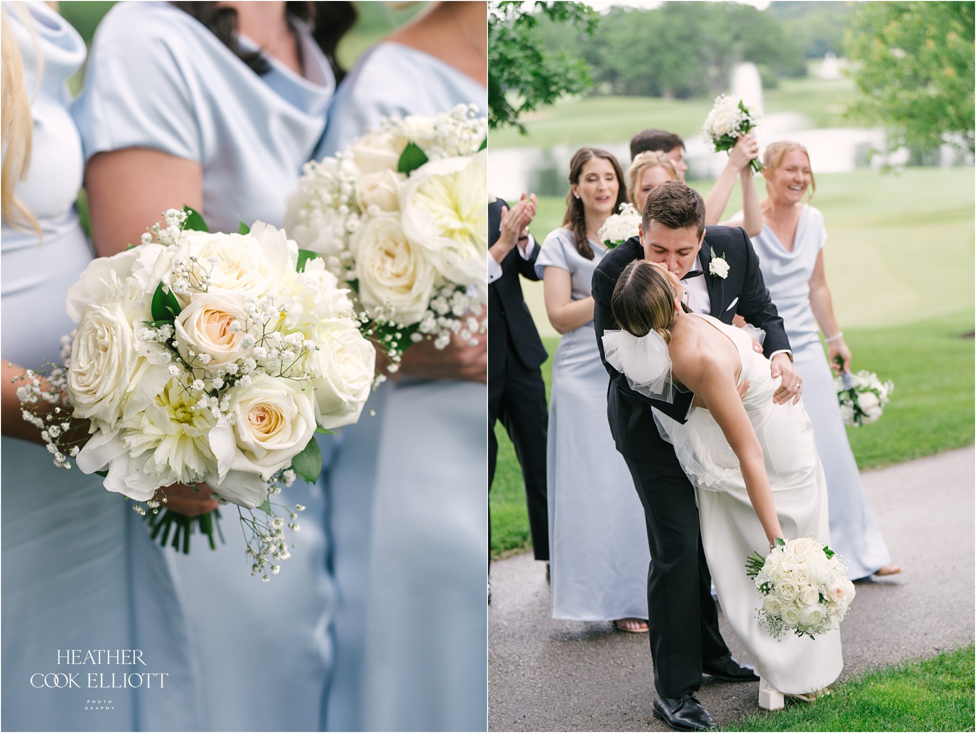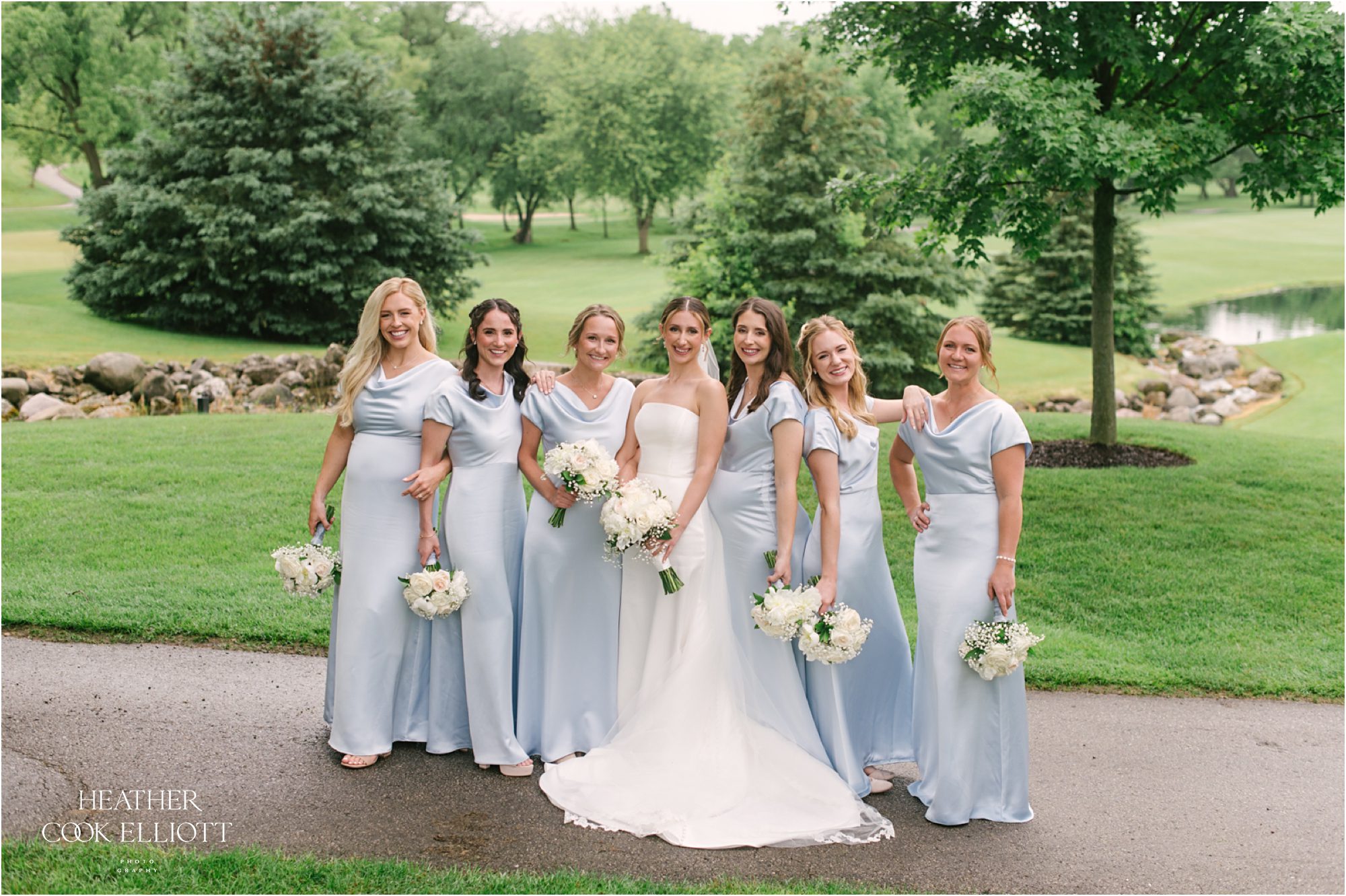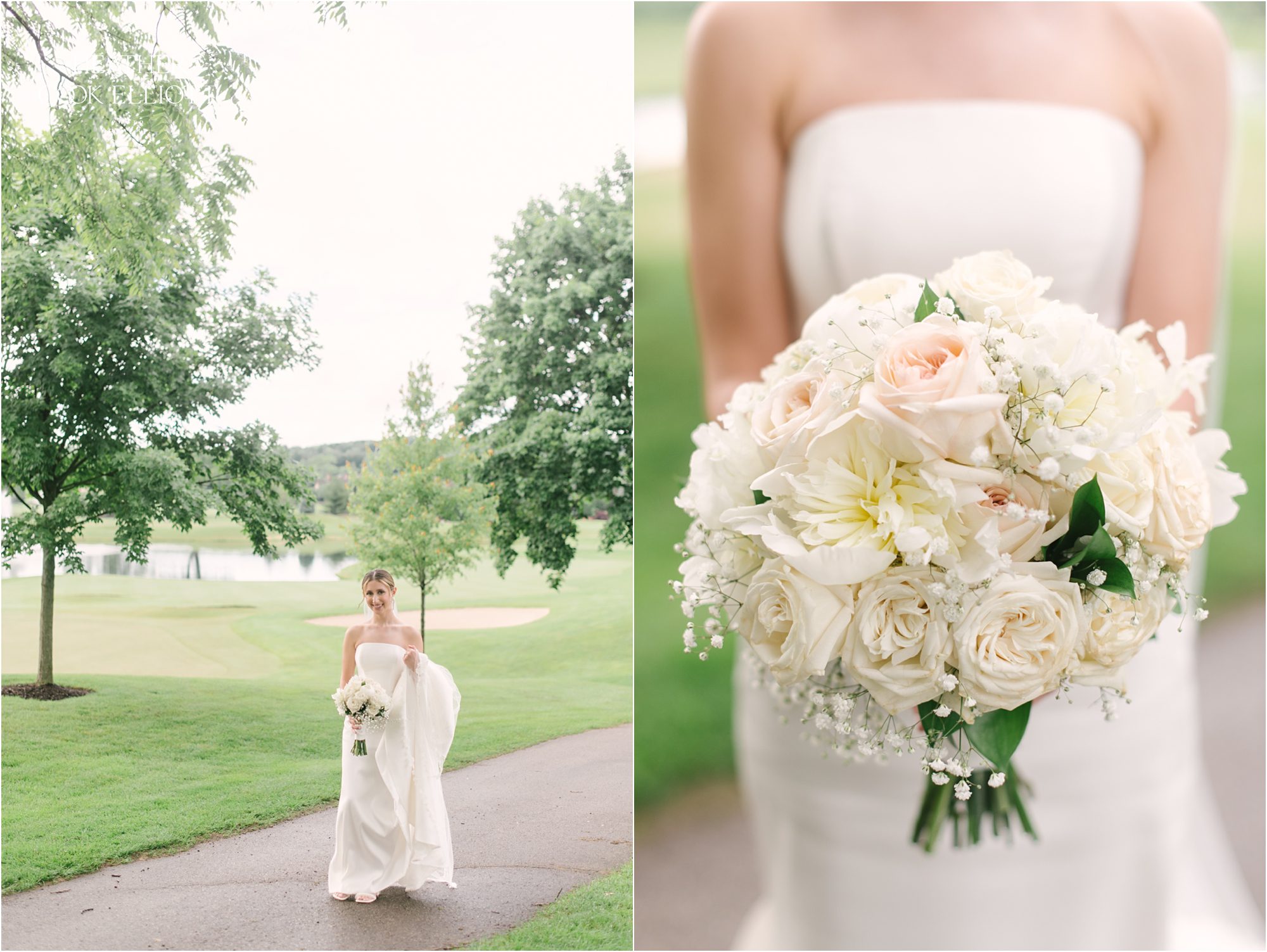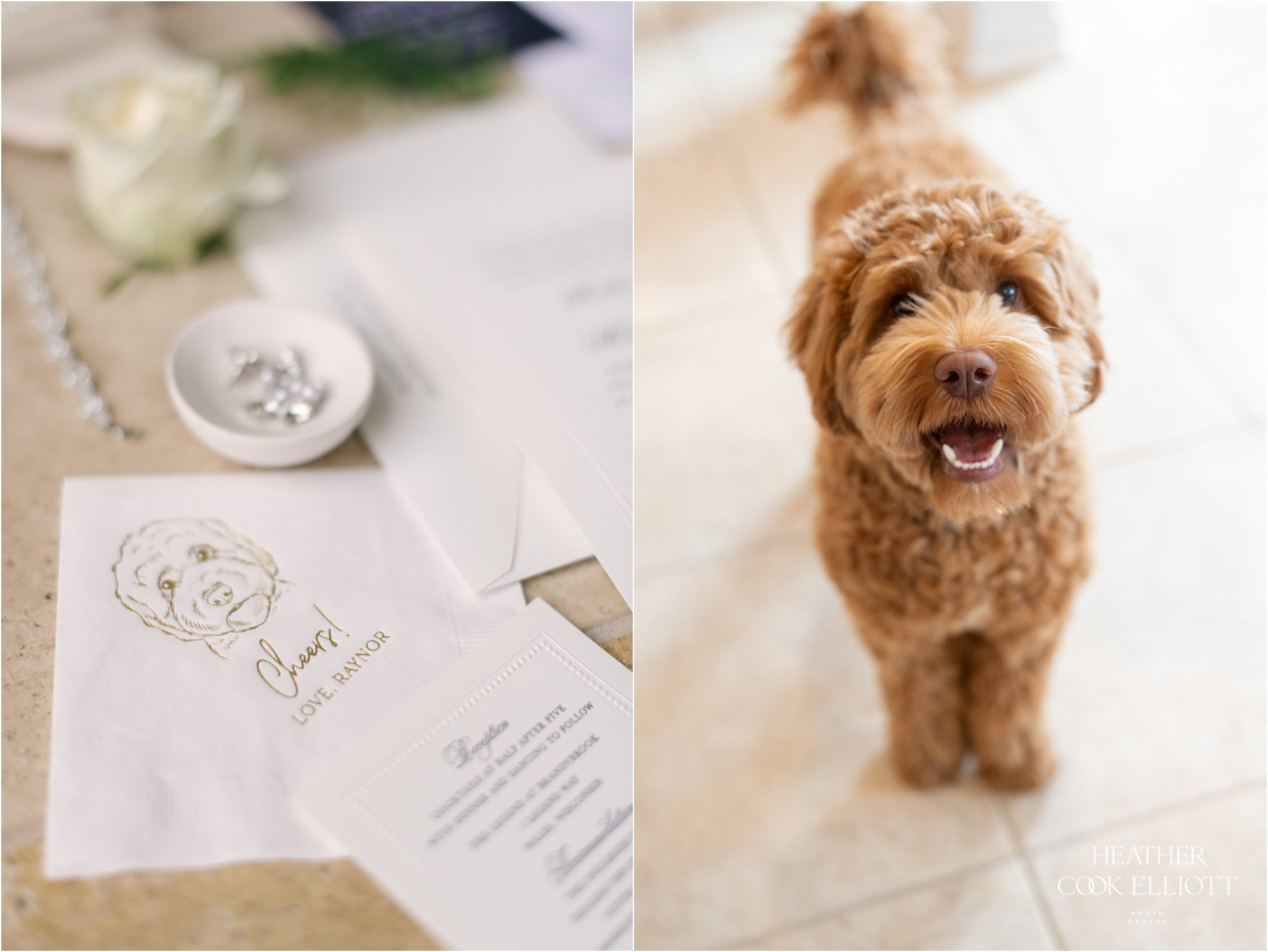 Katie & Max met at Marquette University and have built a sweet life together that revolves around family, friends and their pup Raynor. Named after the building where they first met on campus, Raynor wasn’t physically present at their ceremony or reception but Katie got to start her day with him in the room and his adorable fluffy mug adorned their cocktail napkins. I imagine that he heartily approved of his parents wedding day! That day was a summer dream with a traditional church ceremony and a reception designed to feel elegant and totally timeless. The rain came at the perfect time, letting up to allow for pictures on the course at Brandybrook and cocktails on the terrace, plus raindrops always add a little sparkle to the world in just the right way. We loved how Katie & Max kept the focus on each other, their love story and celebrating their families, the ones they come from and the one they made by saying I Do.
