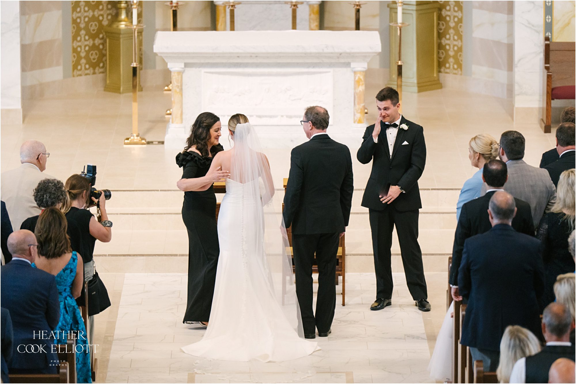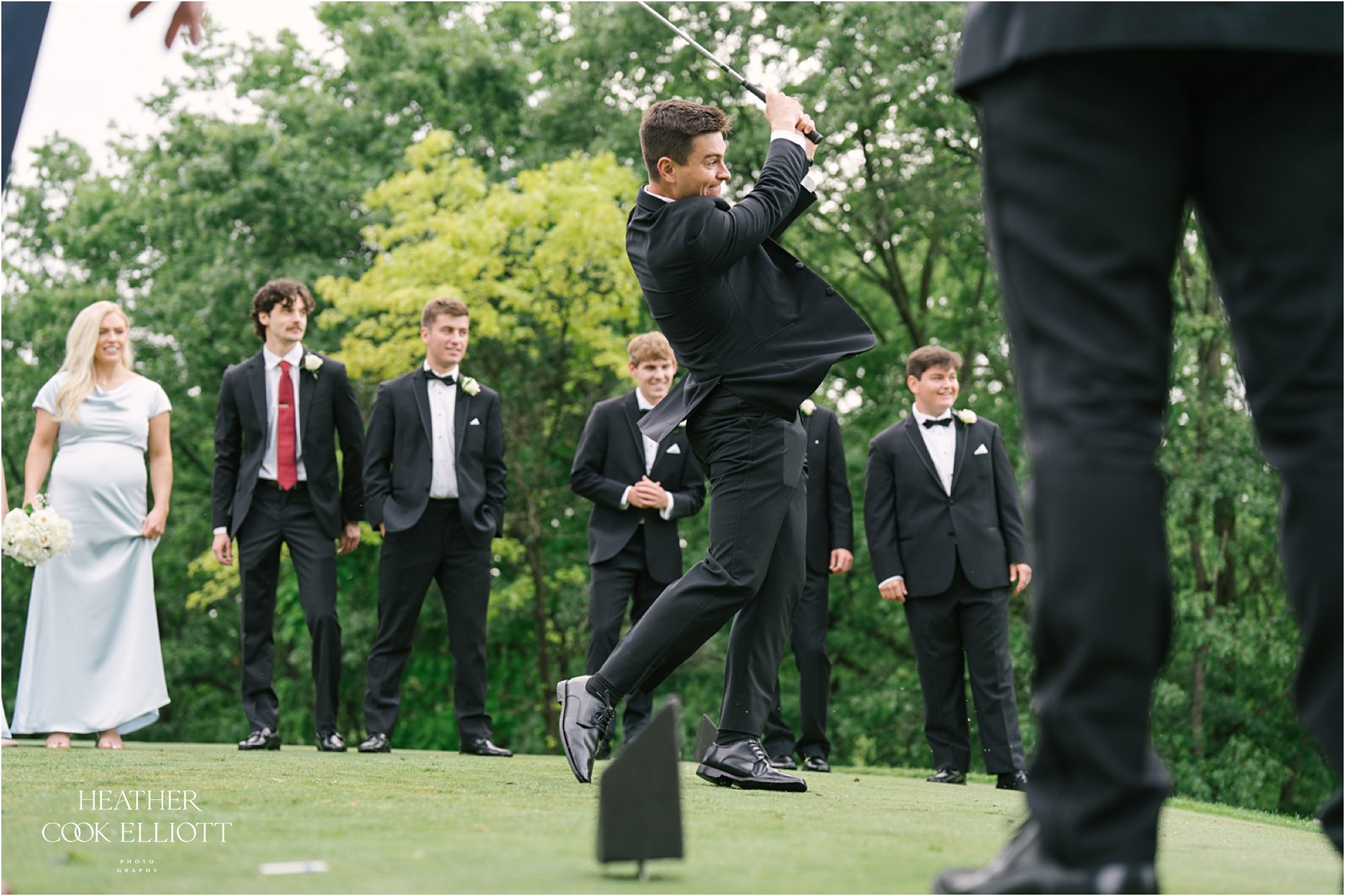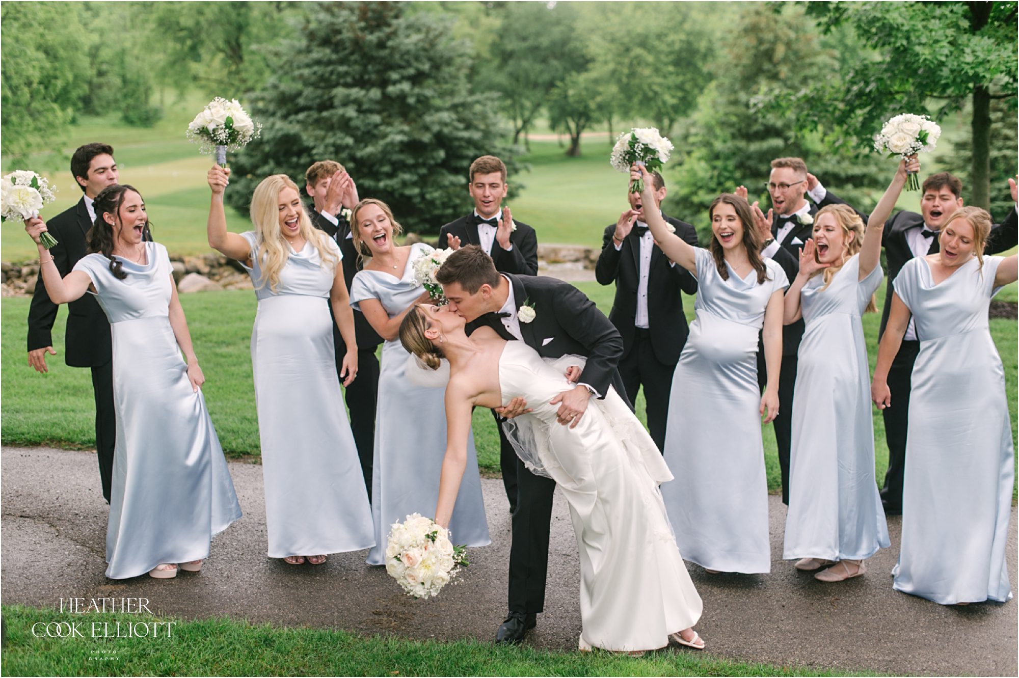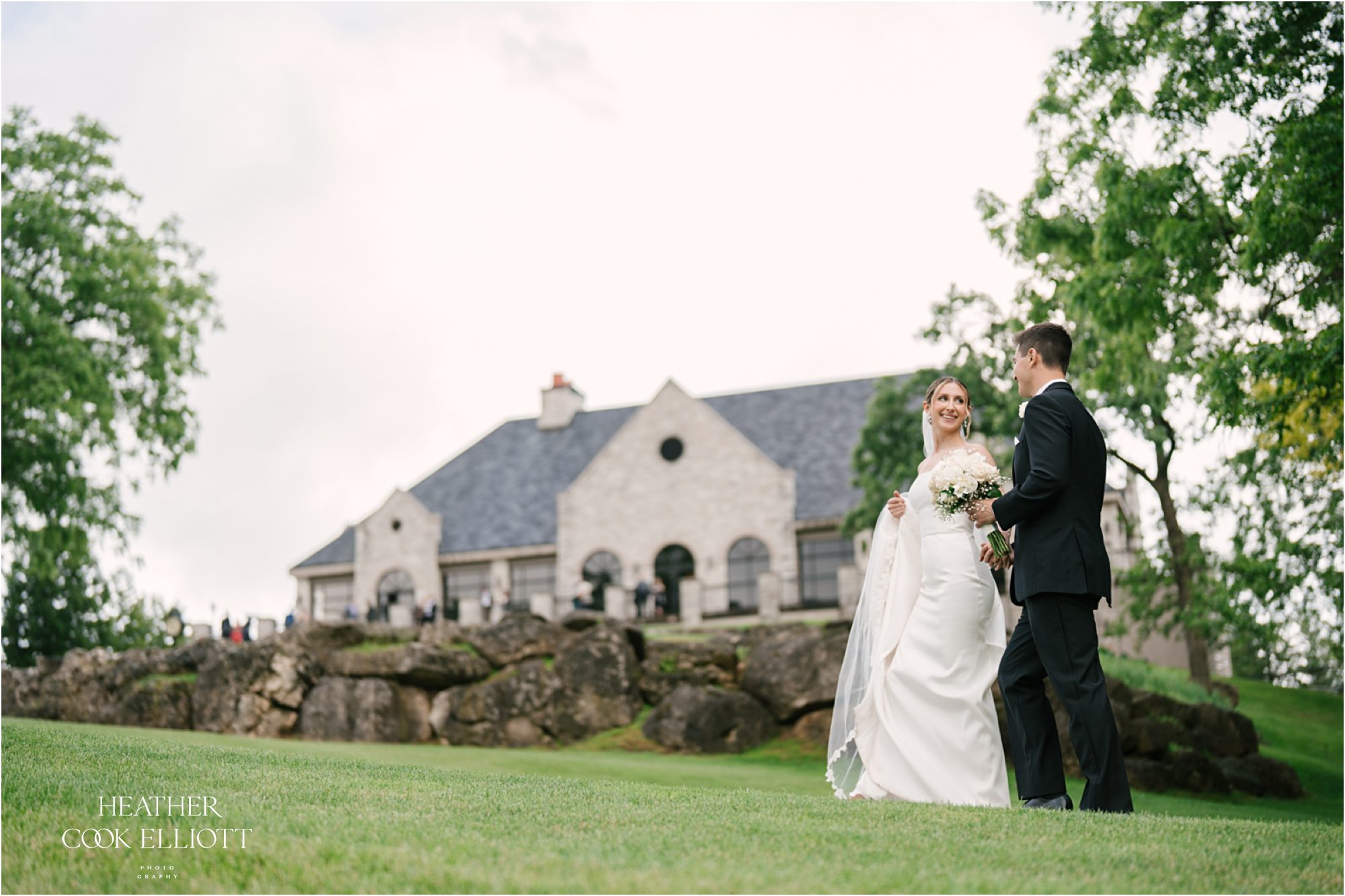 Katie & Max met at Marquette University and have built a sweet life together that revolves around family, friends and their pup Raynor. Named after the building where they first met on campus, Raynor wasn’t physically present at their ceremony or reception but Katie got to start her day with him in the room and his adorable fluffy mug adorned their cocktail napkins. I imagine that he heartily approved of his parents wedding day! That day was a summer dream with a traditional church ceremony and a reception designed to feel elegant and totally timeless. The rain came at the perfect time, letting up to allow for pictures on the course at Brandybrook and cocktails on the terrace, plus raindrops always add a little sparkle to the world in just the right way. We loved how Katie & Max kept the focus on each other, their love story and celebrating their families, the ones they come from and the one they made by saying I Do.