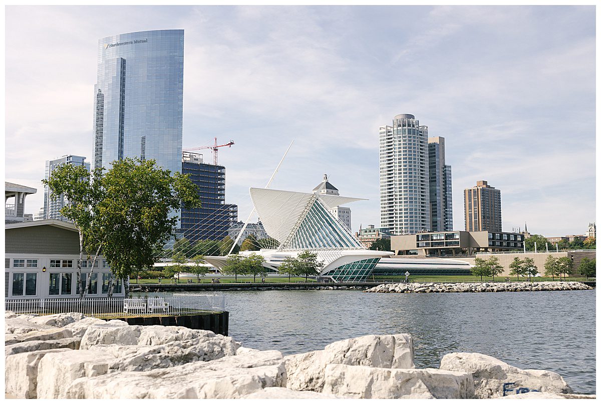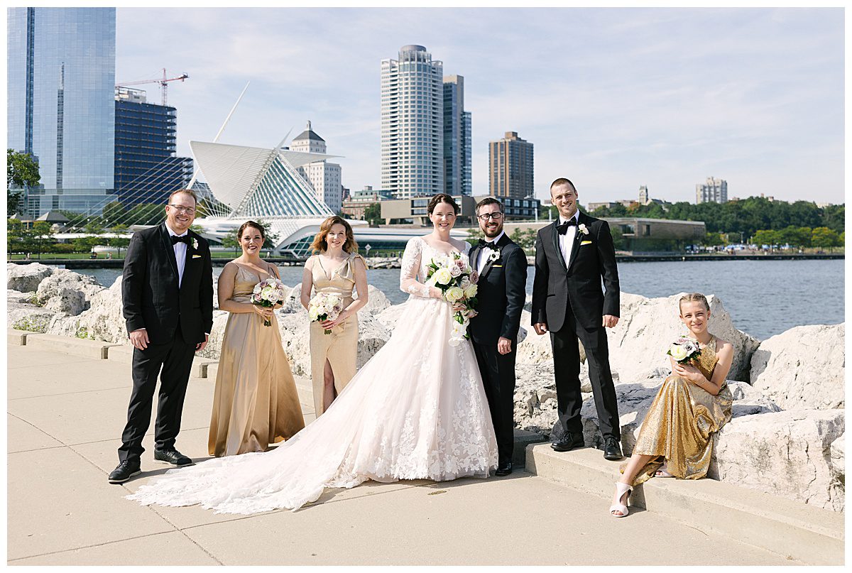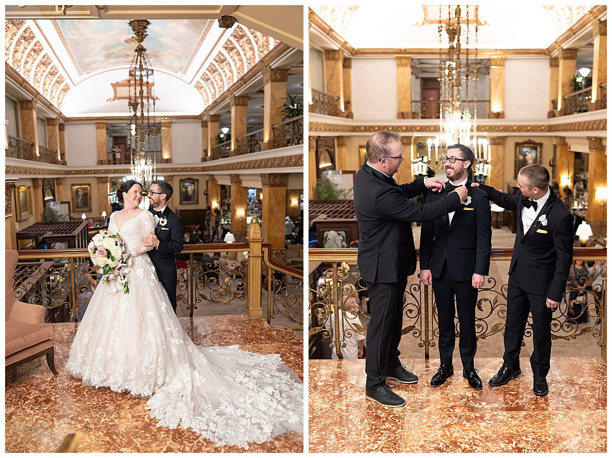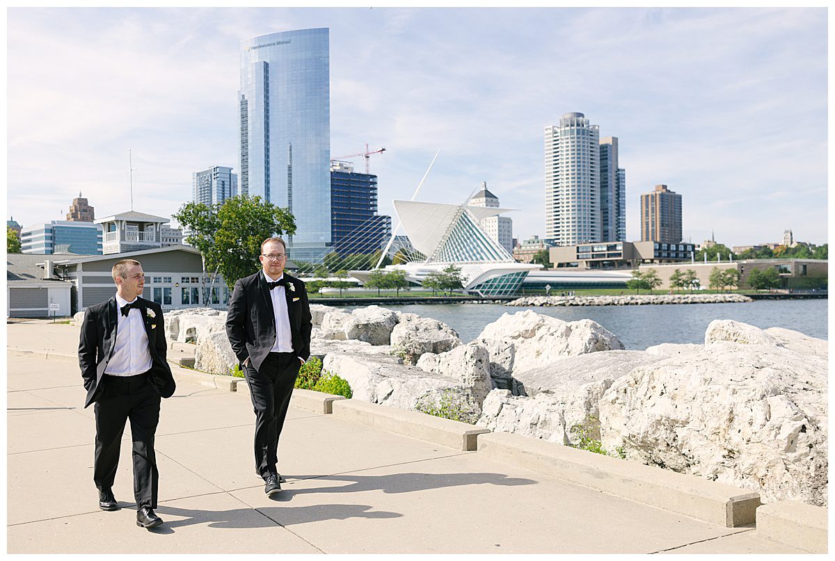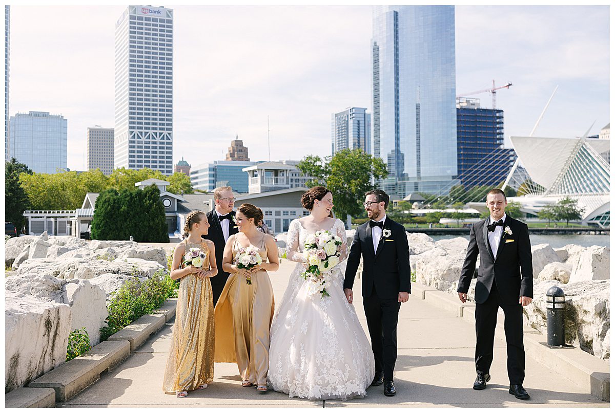 Laura & Jay were married on the kind of blue sky Milwaukee day that Wisconsinites dream of in winter. It was nearly fall so Laura wore gorgeous sleeves and Jay’s classic tuxedo (with a playful pop of color on the pocket square) fit in perfectly at the Historic Pfister Hotel where they hosted their ceremony & reception. But those style details also managed to contrast delightfully with a bridal party stop at Jay’s favorite place in Milwaukee, his home away from, The Nomad. The two of them kept the bridal party small which meant they could keep their connections and conversation deep and we loved how their people where 100% there for them all day and night. Very little of their day was scripted, but instead it unfolded with laughter and tears and remembrances, with tributes, twirls and heartfelt toasts. Ready to smile? Okay then, let’s jump into Laura & Jay’s sweetest day ~