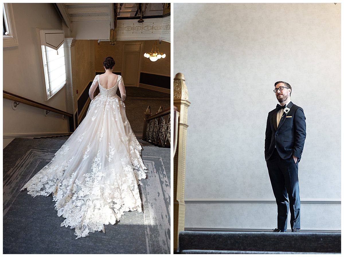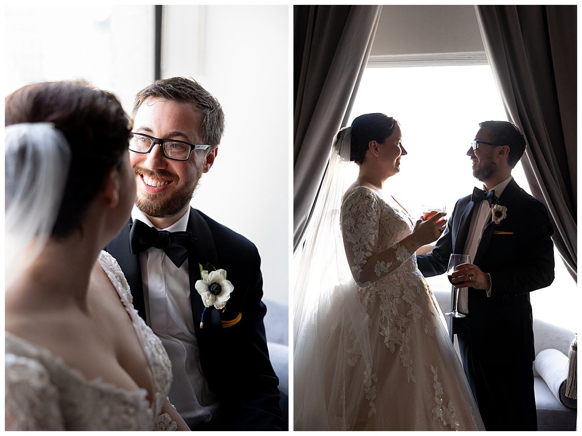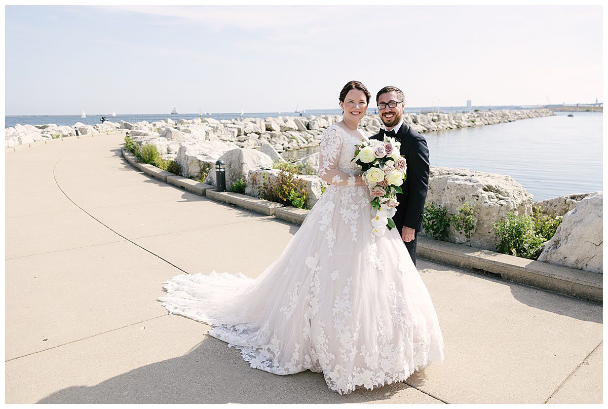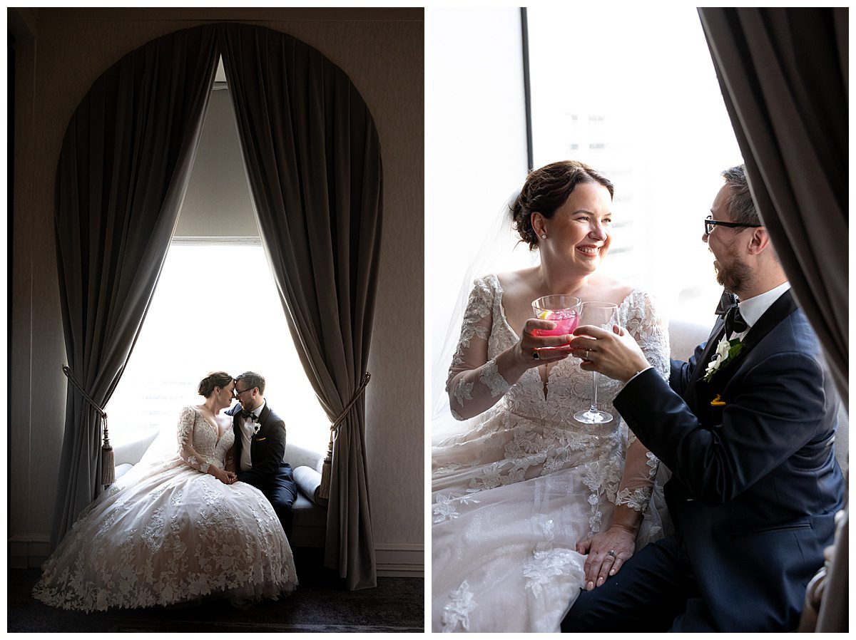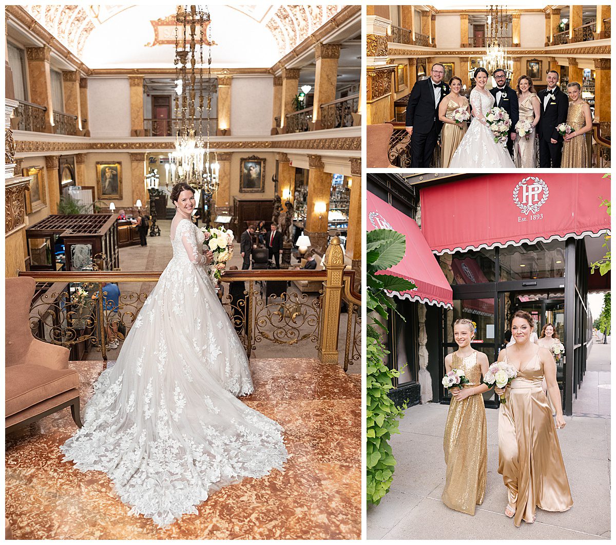 Laura & Jay were married on the kind of blue sky Milwaukee day that Wisconsinites dream of in winter. It was nearly fall so Laura wore gorgeous sleeves and Jay’s classic tuxedo (with a playful pop of color on the pocket square) fit in perfectly at the Historic Pfister Hotel where they hosted their ceremony & reception. But those style details also managed to contrast delightfully with a bridal party stop at Jay’s favorite place in Milwaukee, his home away from, The Nomad. The two of them kept the bridal party small which meant they could keep their connections and conversation deep and we loved how their people where 100% there for them all day and night. Very little of their day was scripted, but instead it unfolded with laughter and tears and remembrances, with tributes, twirls and heartfelt toasts. Ready to smile? Okay then, let’s jump into Laura & Jay’s sweetest day ~