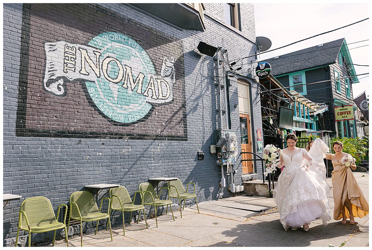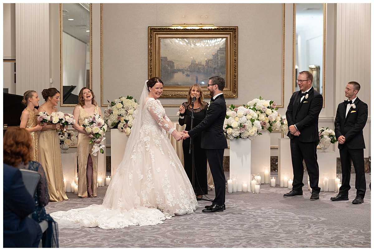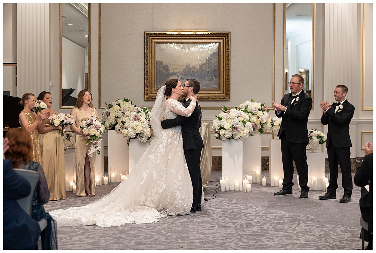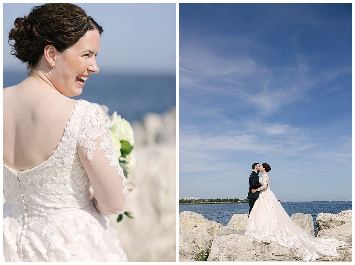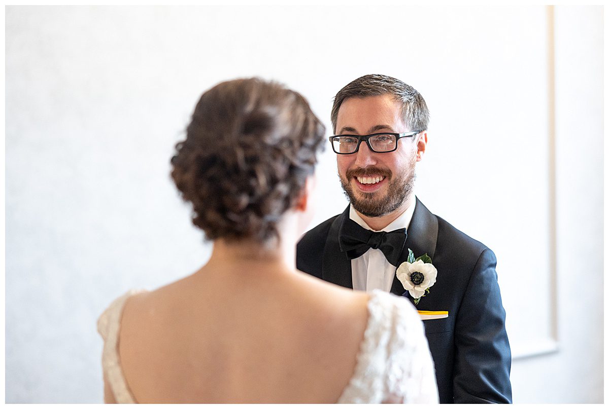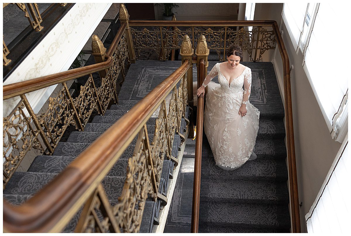 Laura & Jay were married on the kind of blue sky Milwaukee day that Wisconsinites dream of in winter. It was nearly fall so Laura wore gorgeous sleeves and Jay’s classic tuxedo (with a playful pop of color on the pocket square) fit in perfectly at the Historic Pfister Hotel where they hosted their ceremony & reception. But those style details also managed to contrast delightfully with a bridal party stop at Jay’s favorite place in Milwaukee, his home away from, The Nomad. The two of them kept the bridal party small which meant they could keep their connections and conversation deep and we loved how their people where 100% there for them all day and night. Very little of their day was scripted, but instead it unfolded with laughter and tears and remembrances, with tributes, twirls and heartfelt toasts. Ready to smile? Okay then, let’s jump into Laura & Jay’s sweetest day ~
