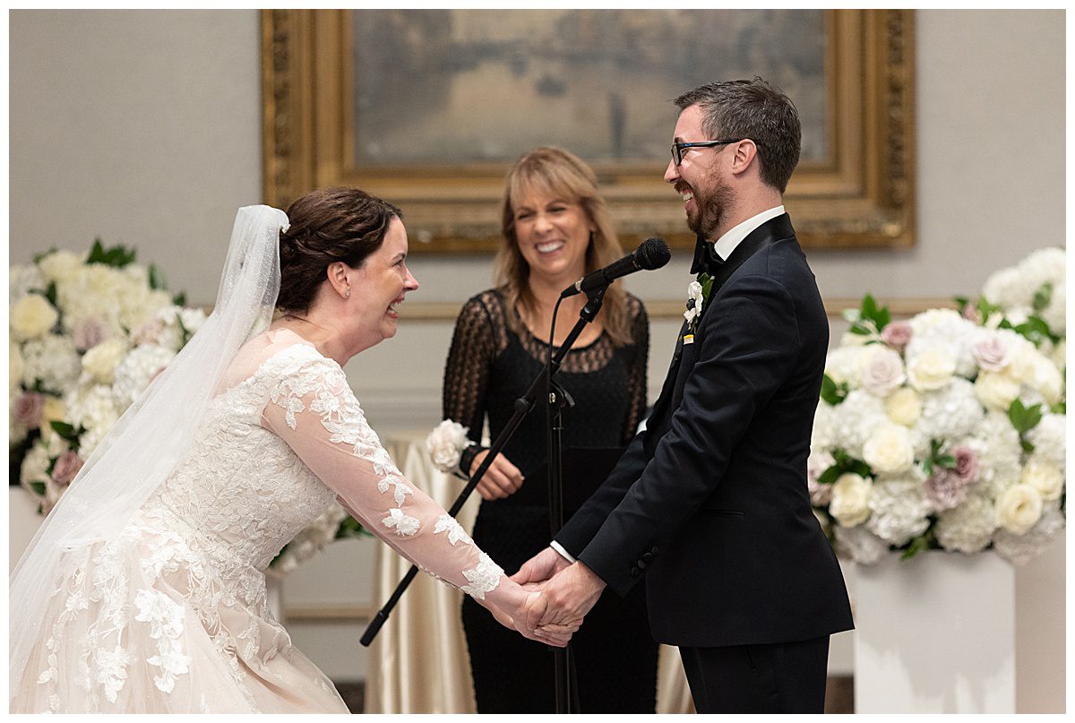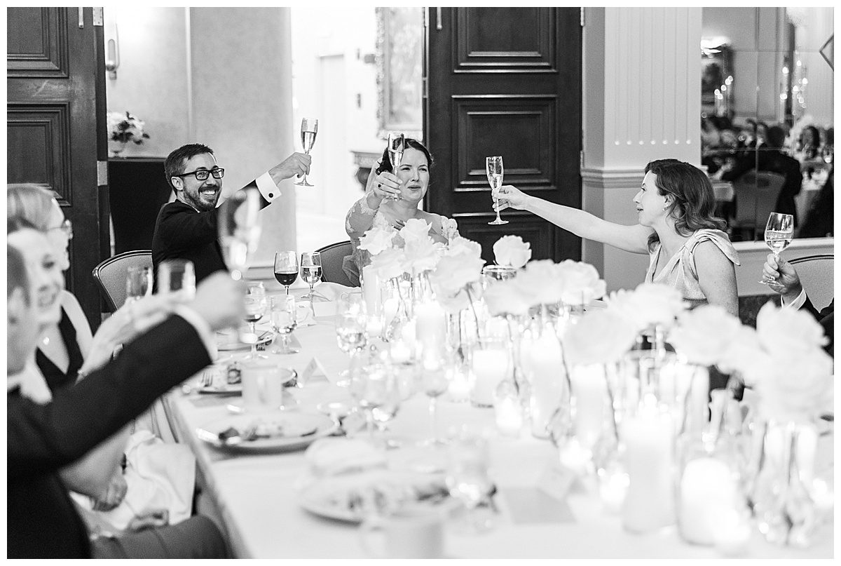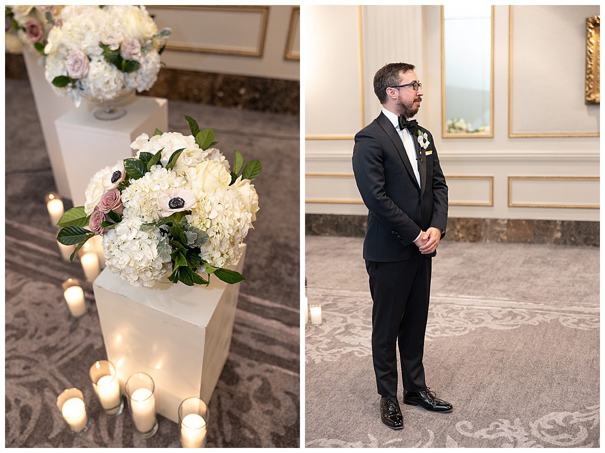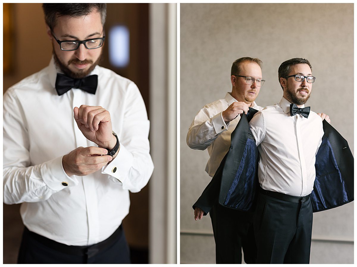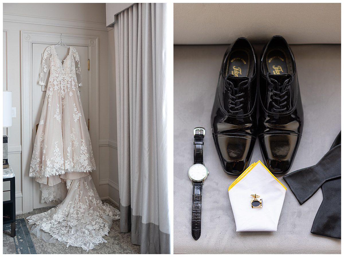 Laura & Jay were married on the kind of blue sky Milwaukee day that Wisconsinites dream of in winter. It was nearly fall so Laura wore gorgeous sleeves and Jay’s classic tuxedo (with a playful pop of color on the pocket square) fit in perfectly at the Historic Pfister Hotel where they hosted their ceremony & reception. But those style details also managed to contrast delightfully with a bridal party stop at Jay’s favorite place in Milwaukee, his home away from, The Nomad. The two of them kept the bridal party small which meant they could keep their connections and conversation deep and we loved how their people where 100% there for them all day and night. Very little of their day was scripted, but instead it unfolded with laughter and tears and remembrances, with tributes, twirls and heartfelt toasts. Ready to smile? Okay then, let’s jump into Laura & Jay’s sweetest day ~