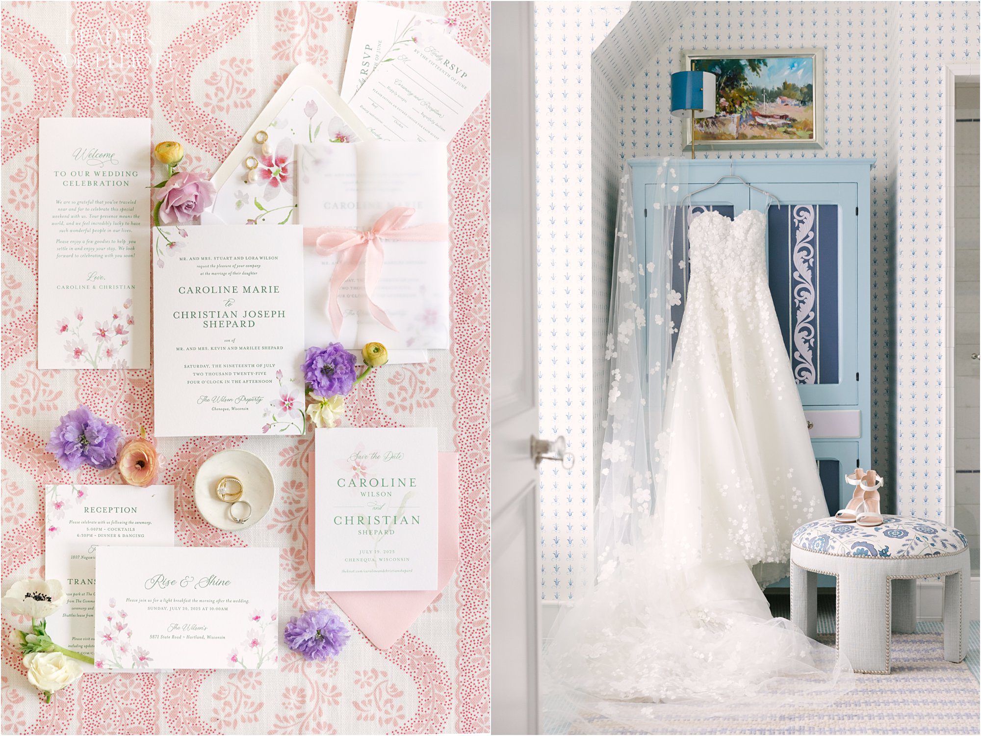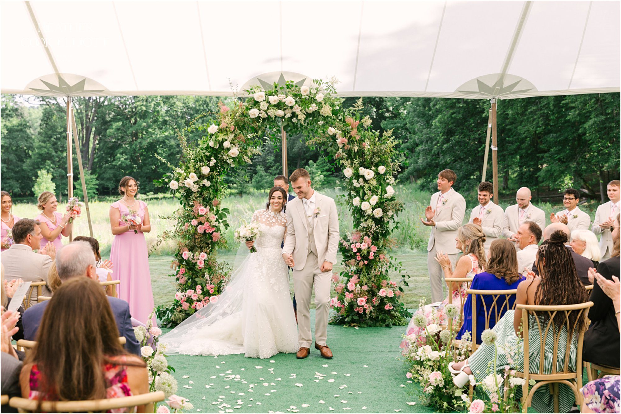 Caroline & Christian have been a part of each other’s lives, families and stories since they were practically kids. This is a fact that made their wedding weekend even sweeter because every moment could have unfolded with an inevitability edging on ennui, but instead the impossible happened. Their love for one another bubbled to the surface of every interaction and each sweet moment with family and friends became the stuff of new core memories. They fell even more in love with one another with every step towards the first look, with the meander to the tented ceremony aisle, with every toast, with every dance, with every big hearted smile. And yes, the flowers were unreal and the dress was incredible, the food was delish, and that Mother Son dance to Footloose brought the house down, but really it was perfect for one single reason. Caroline & Christian became their own little family. And that, my friends, was the whole point.